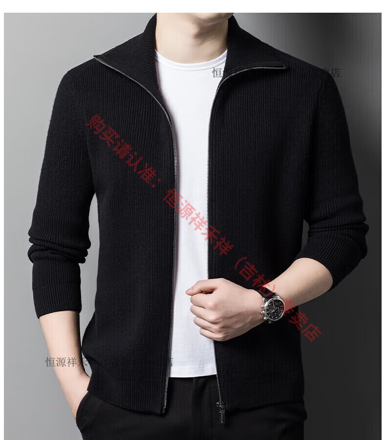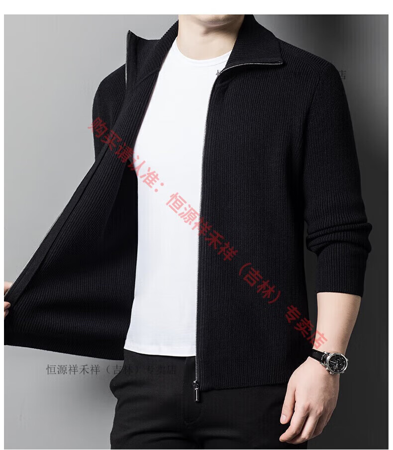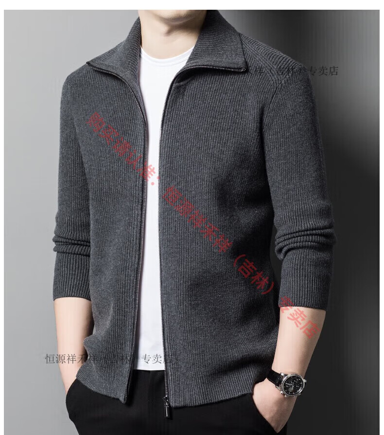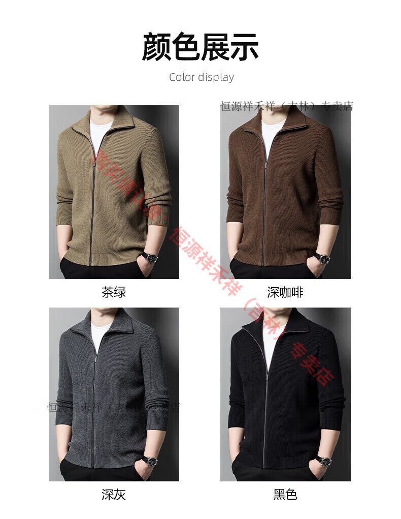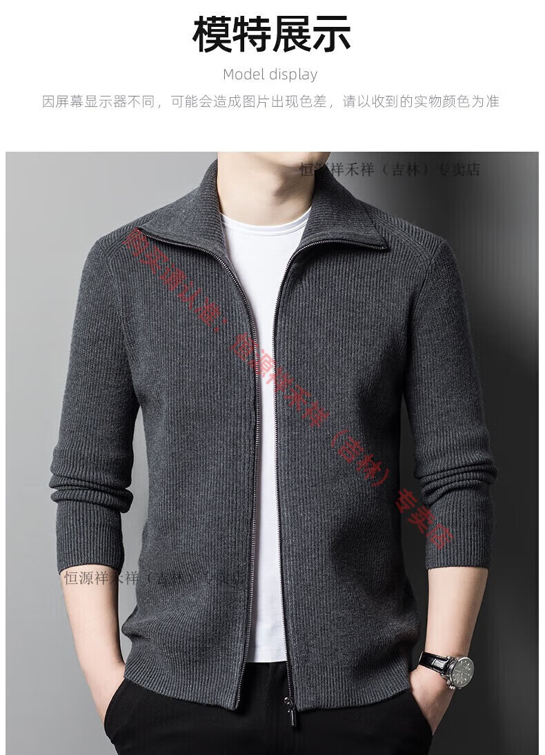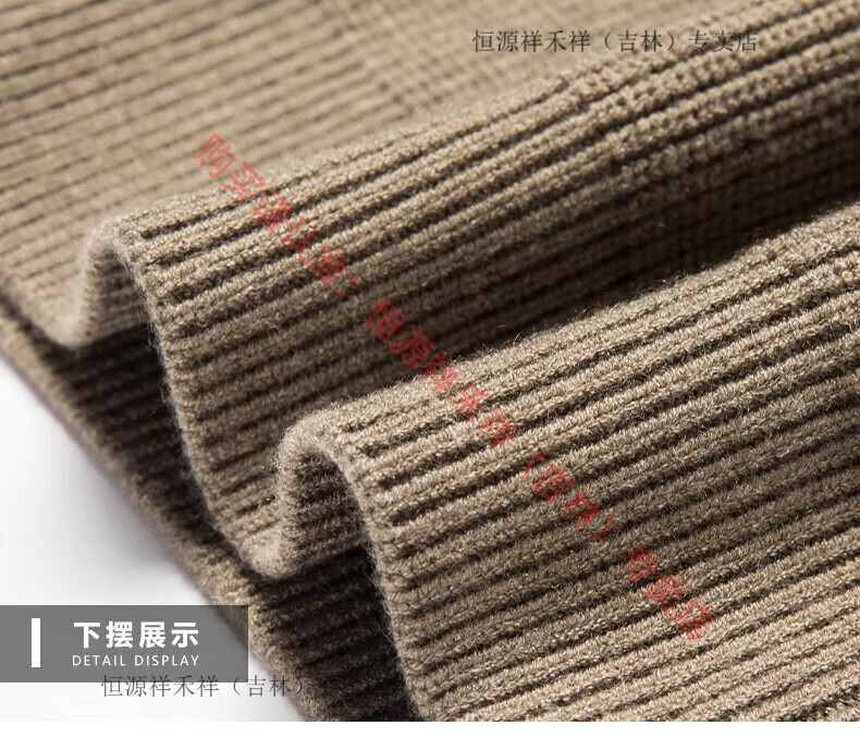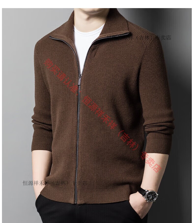 Hengyuanxiang Ordo pure wool cardigan men's autumn middle-aged plus thick lapel fashion sweater sweater zipper jacket tea green XL 175 size 140-160 Jin Jin equals 0.5 kg