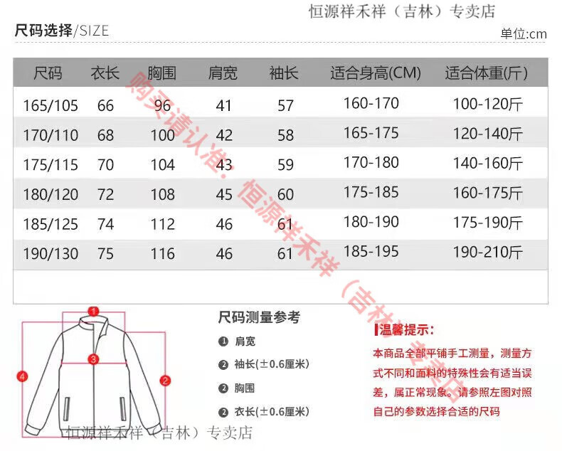China (cm) 165 / 88-90 170 / 96-98 175 / 108-110 180 / 118-122 185 / 126-130
