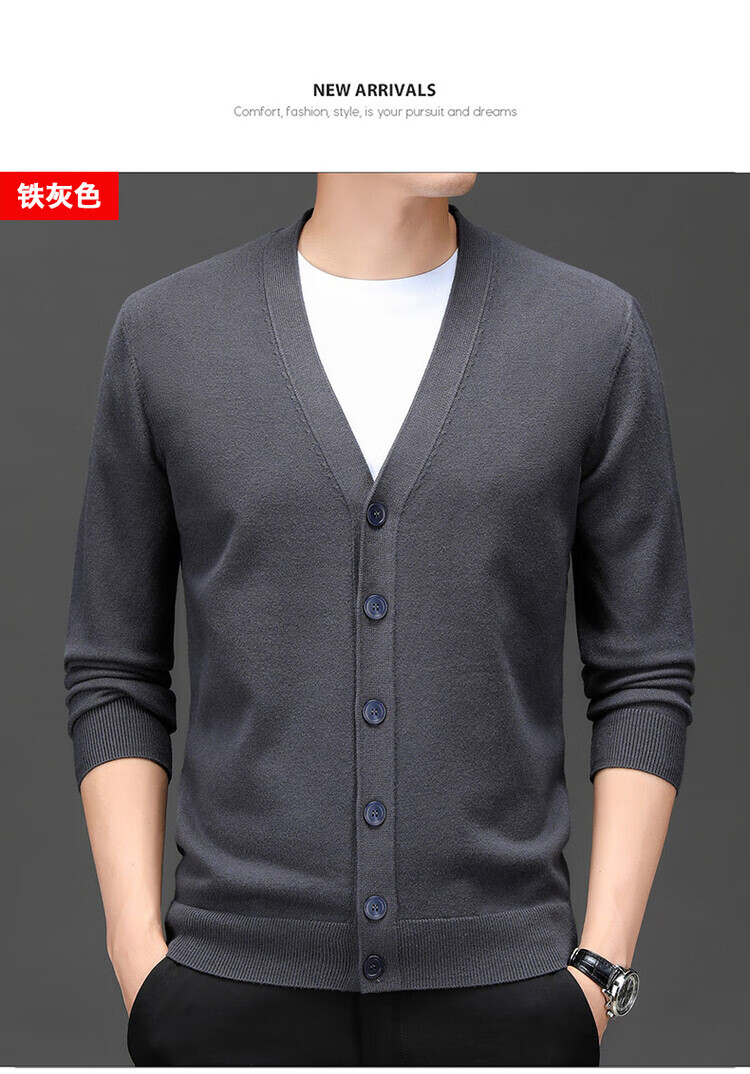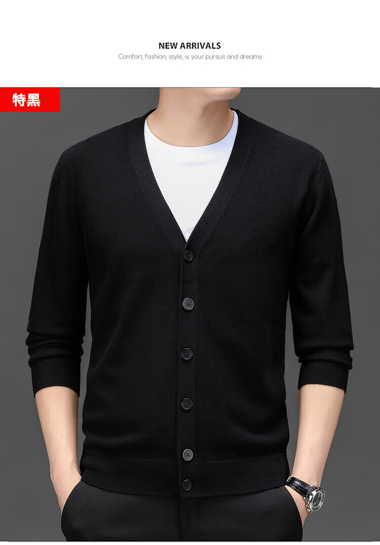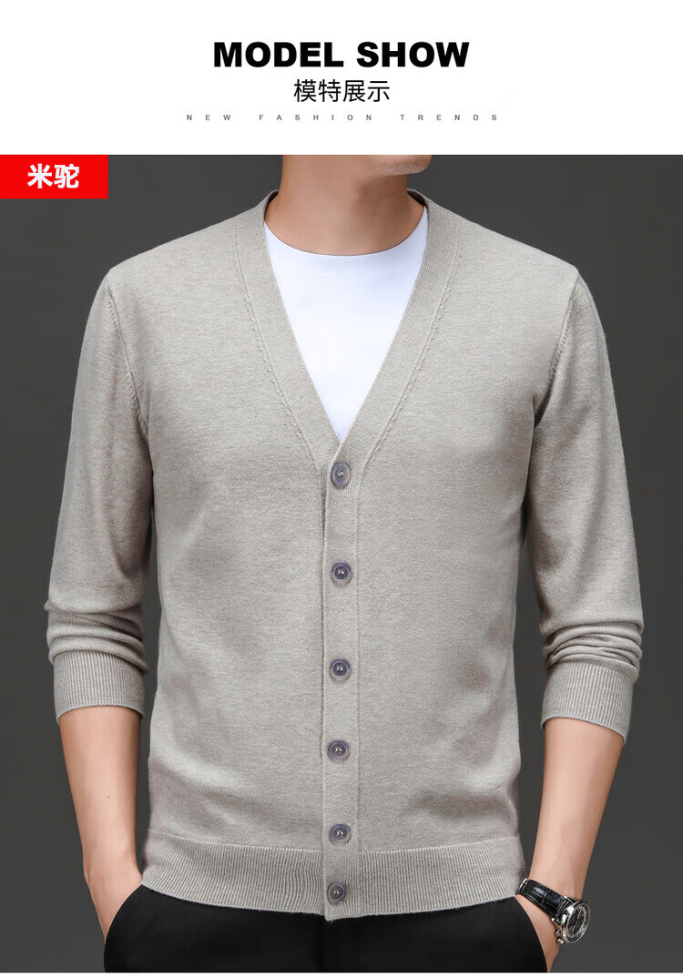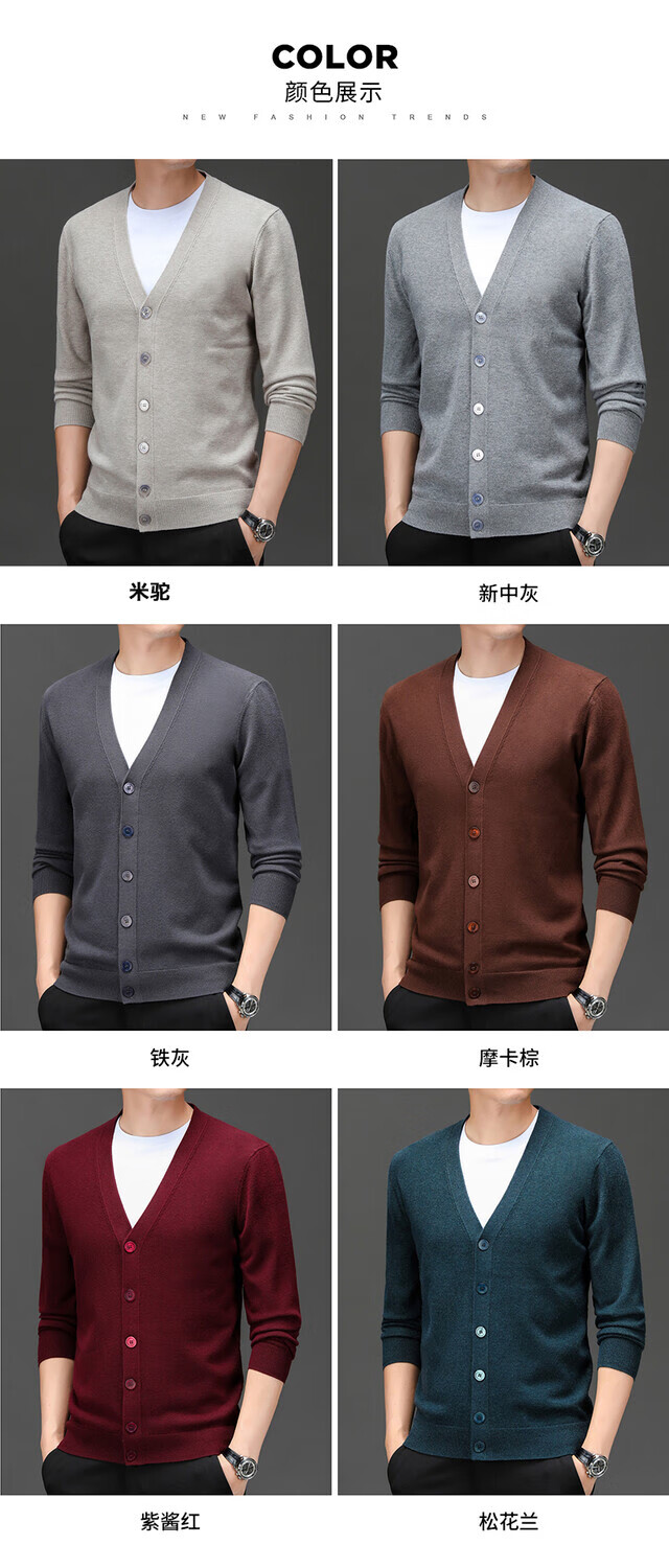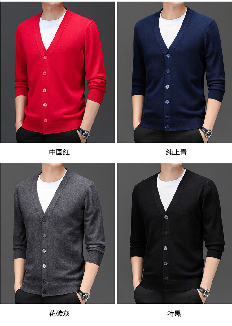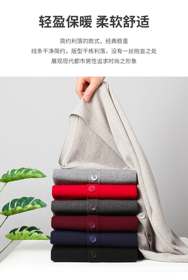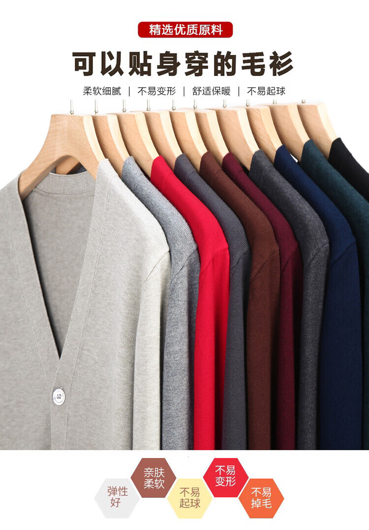 Hengyuanxiang (HYX) Sheep | Wool Knitted Cardigan Jacket Men's Autumn and Winter New Solid Color V-neck Loose Versatile Sweater for Middle-aged and Elderly People Chinese Red 165/80A