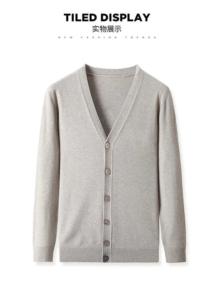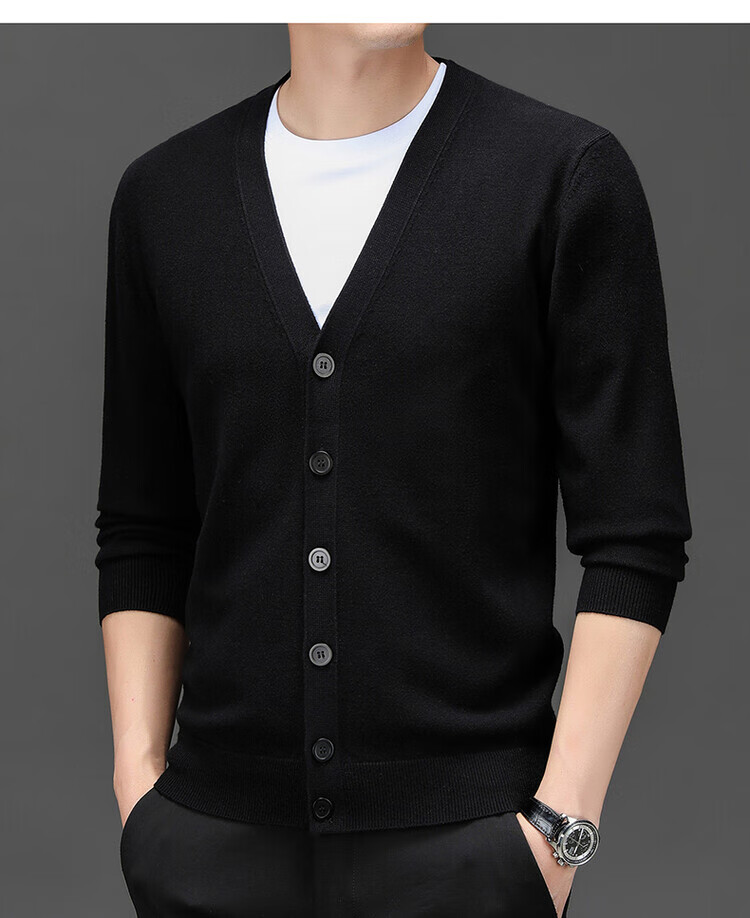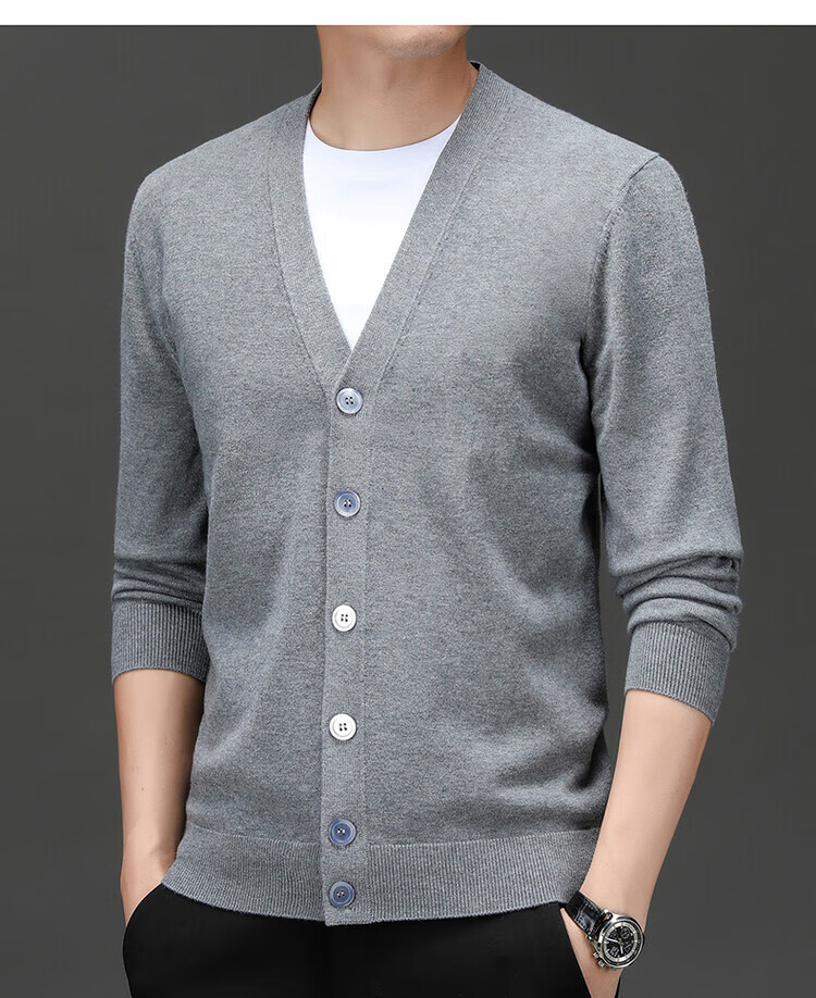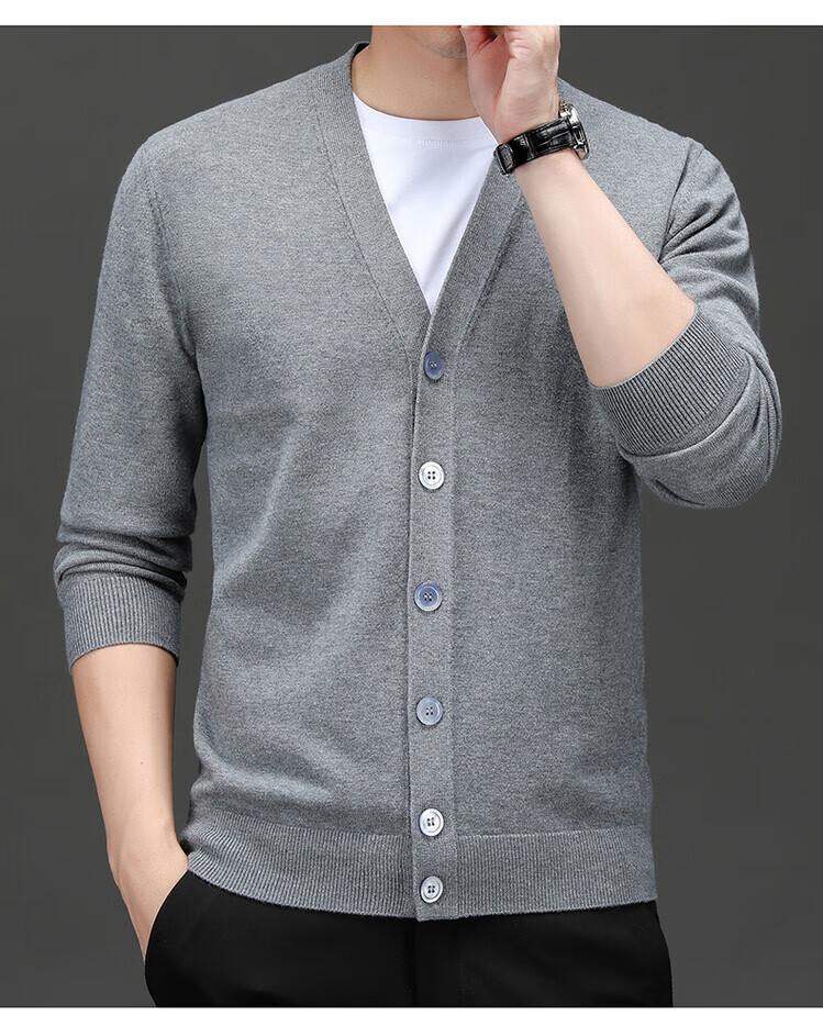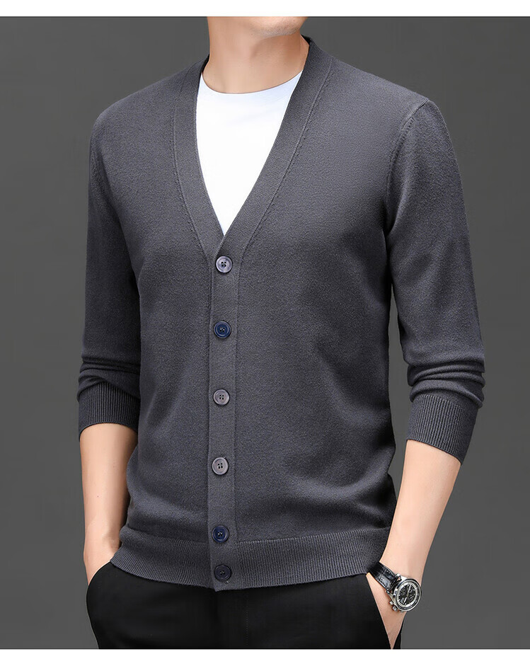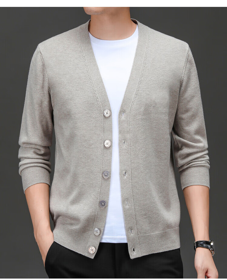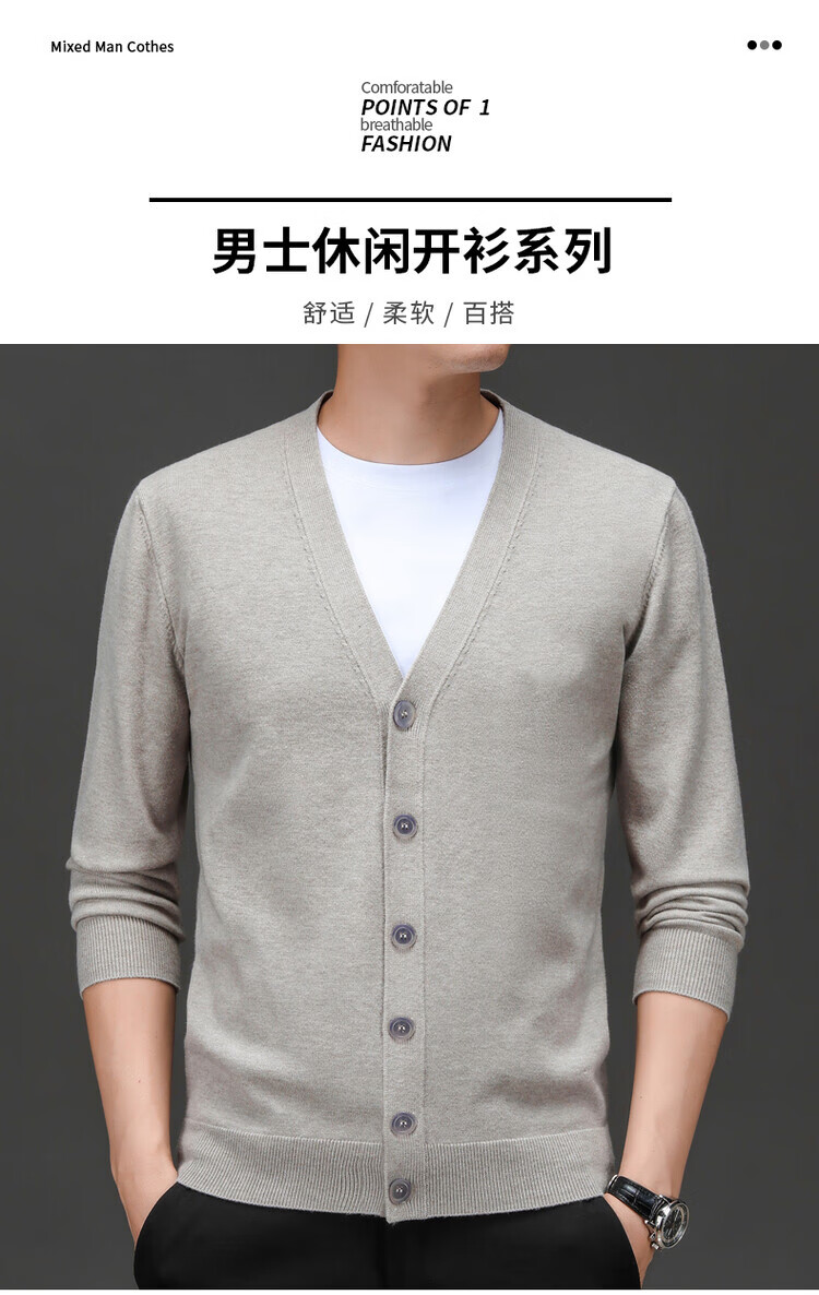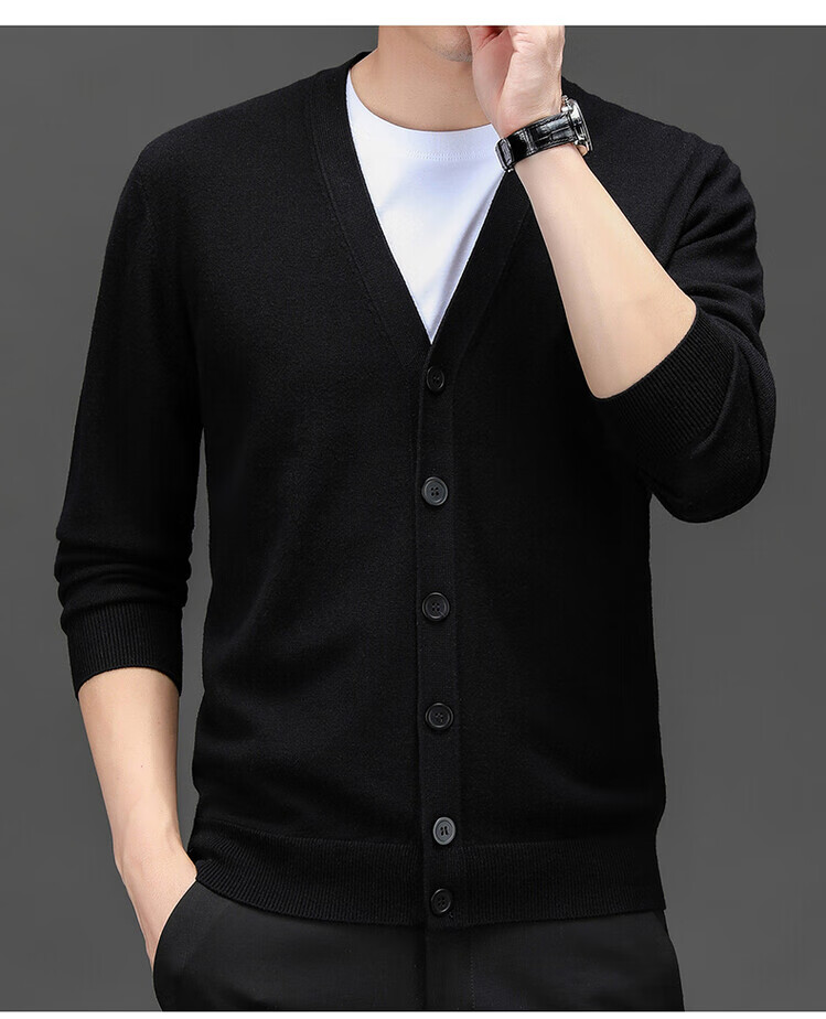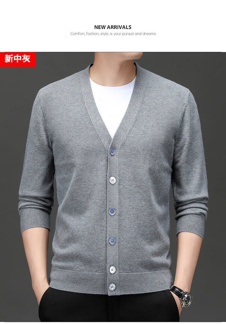 Hengyuanxiang (HYX) Sheep | Wool Knitted Cardigan Jacket Men's Autumn and Winter New Solid Color V-neck Loose Versatile Sweater for Middle-aged and Elderly People Chinese Red 165/80A