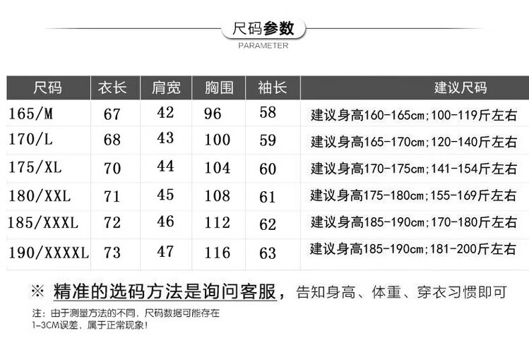 China (cm) 165 / 88-90 170 / 96-98 175 / 108-110 180 / 118-122 185 / 126-130