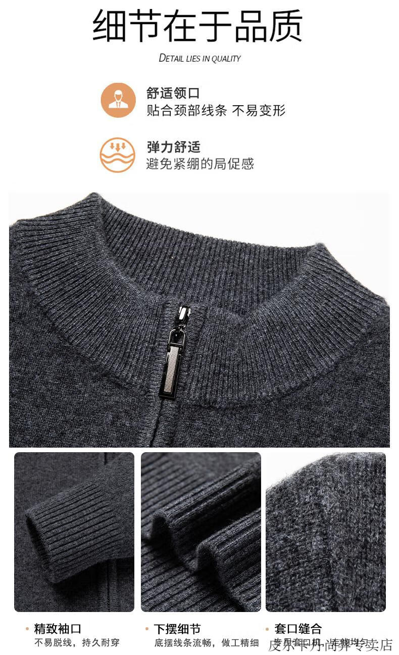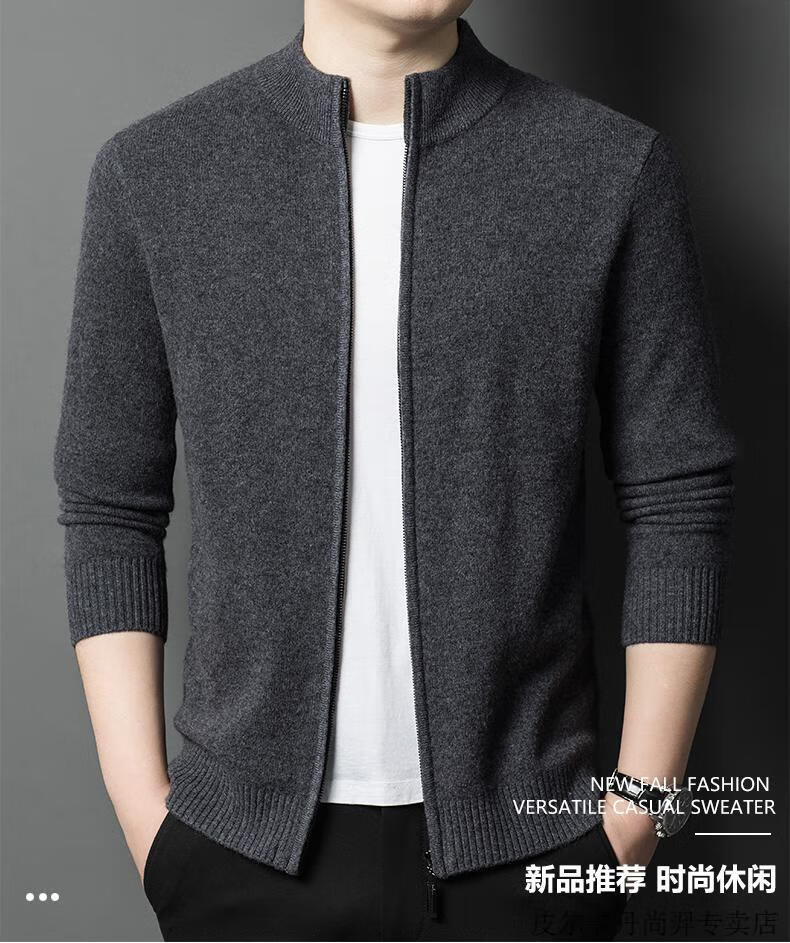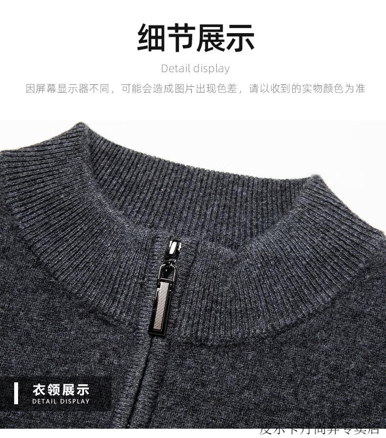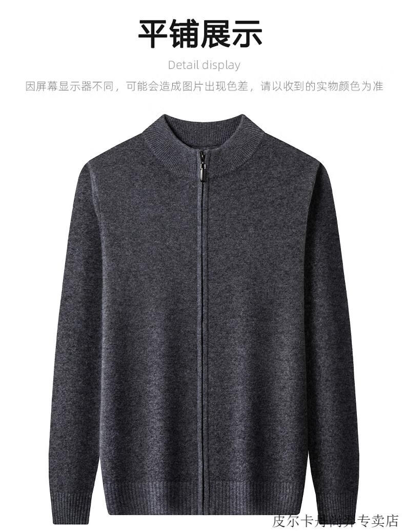 Pierre Cardin cardigan men's cardigan sweater jacket stand collar autumn and winter new sheep | cashmere sweater men's knitted dad outfit medium gray 3302 2XL 180 recommended weight 155-170Jin Jin equals 0.5 kg