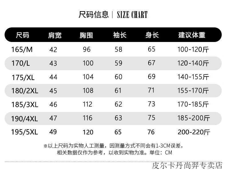 China (cm) 165 / 88-90 170 / 96-98 175 / 108-110 180 / 118-122 185 / 126-130