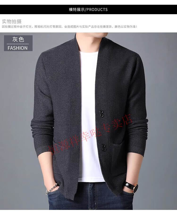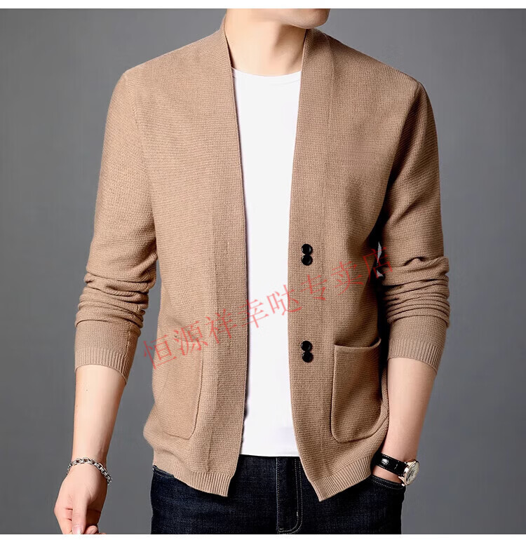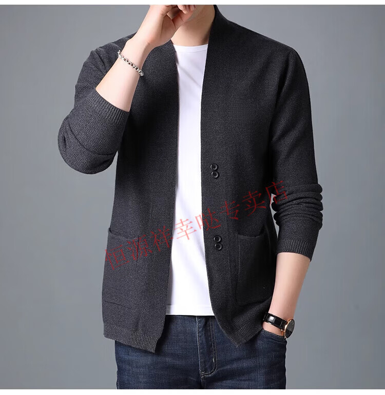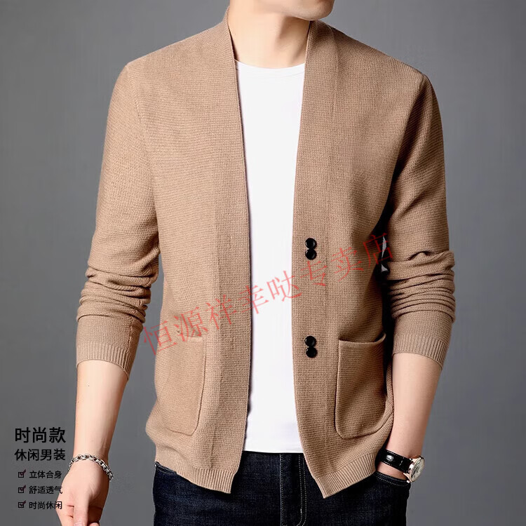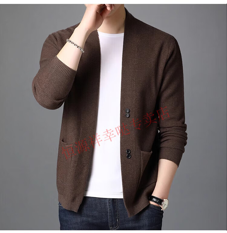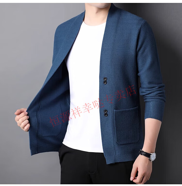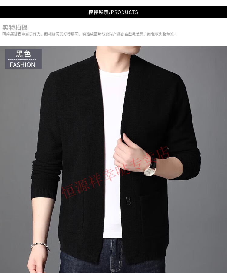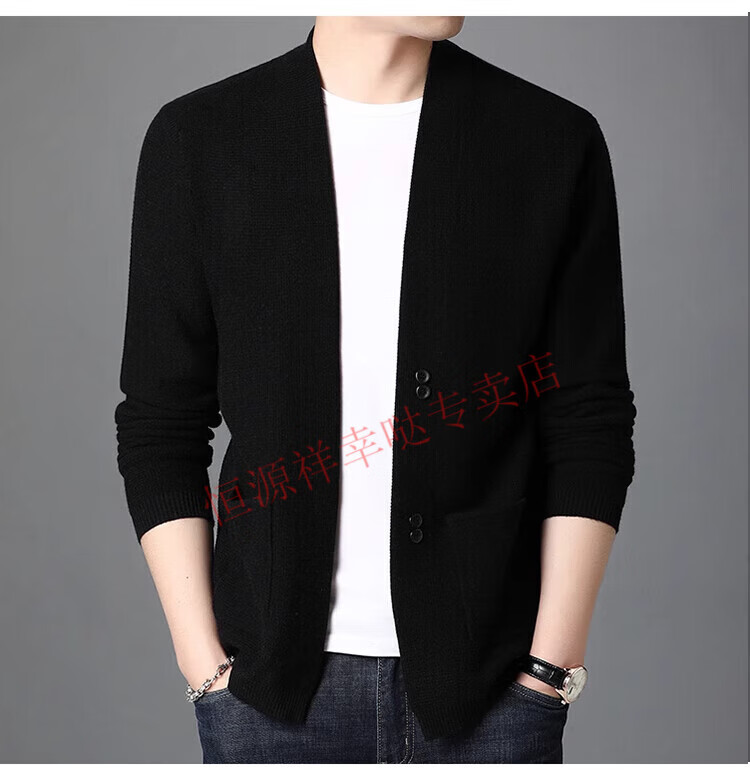 Hengyuanxiang pure wool cardigan men's autumn and winter casual loose coat middle-aged V-neck wool sweater sweater men's 7725 black pure new 100 M 170/110 recommended 130-150Jin Jin equals 0.5 kg