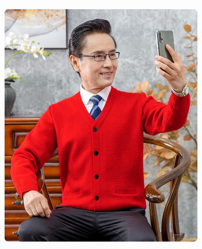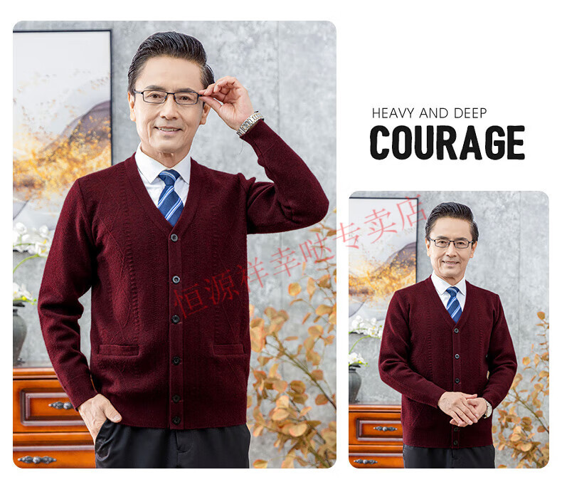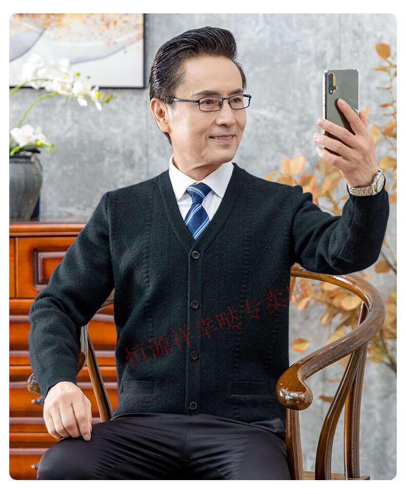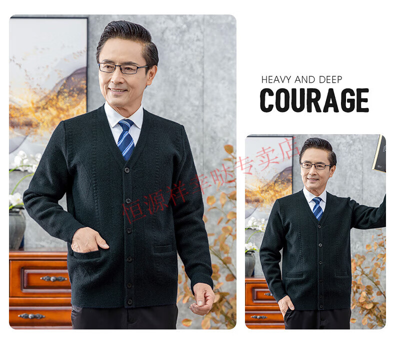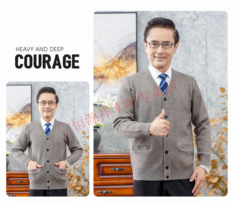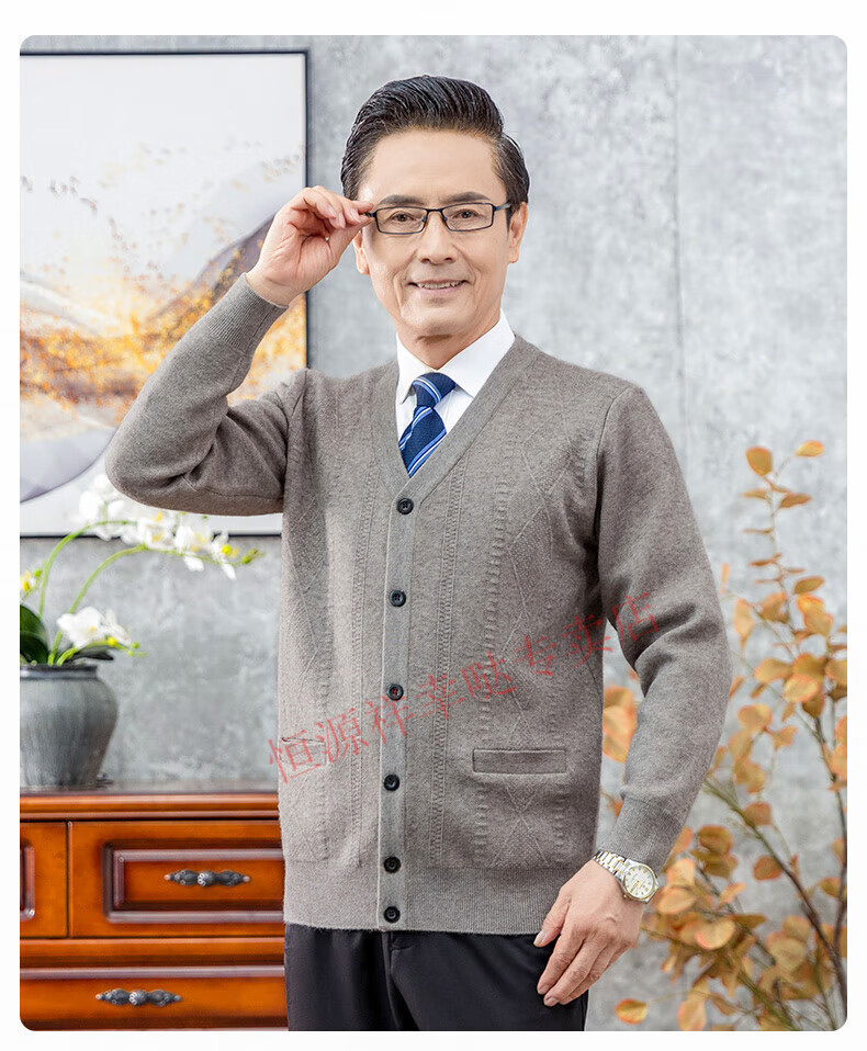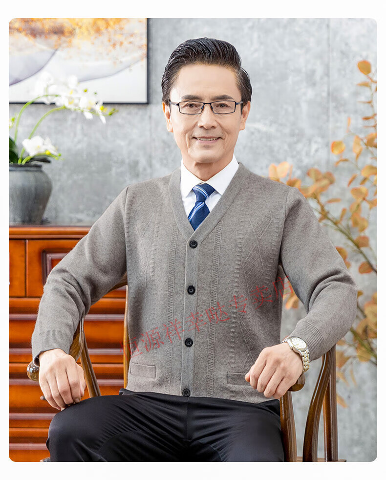 Hengyuanxiang Sweater Cardigan Men's Middle-aged and Elderly Spring, Autumn and Winter New Thick Knitted Wool Sweater Jacket Loose Men's Gray Pure Brand New 100 L 175/92 Recommended 135-150