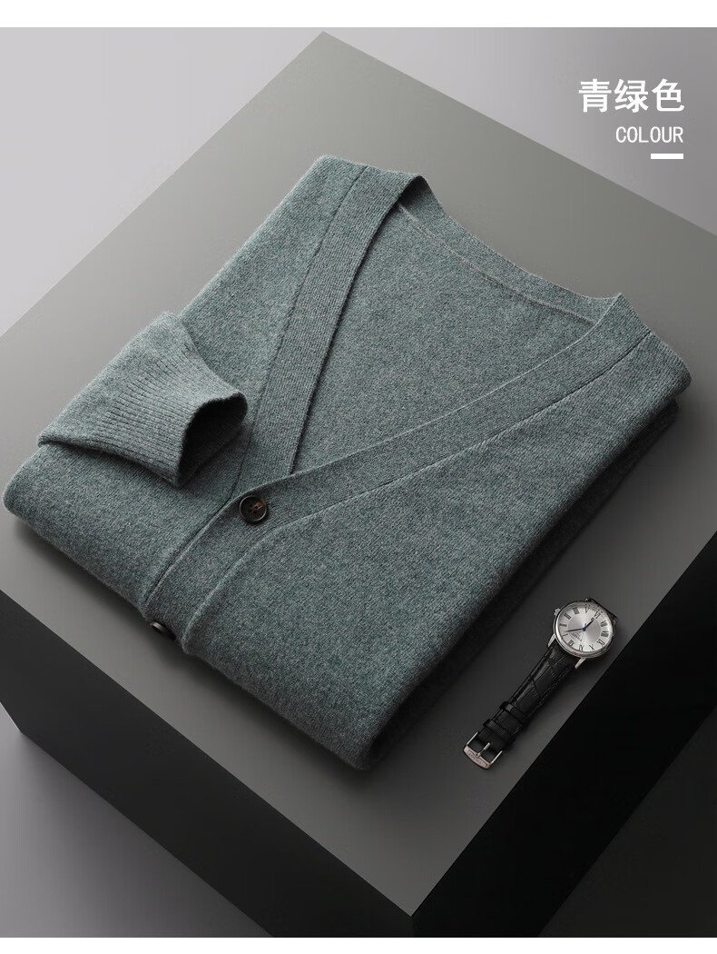 Pierre Cardin autumn and winter new pure wool sweater men's cardigan V-neck buttoned jacket loose casual knitted sweater men's light gray L