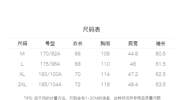 China (cm) 160-165/84-86 165-170 / 88-90 167-172 / 92-96 168-173 / 98-102 170-176 / 106-110