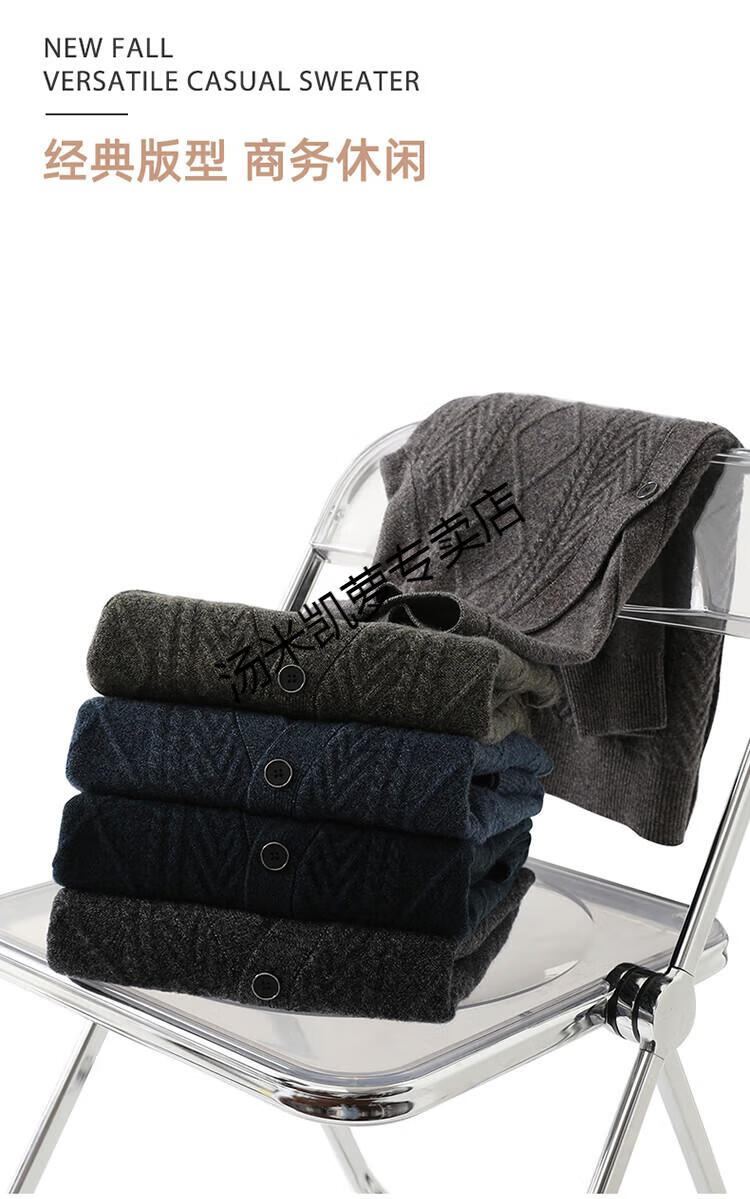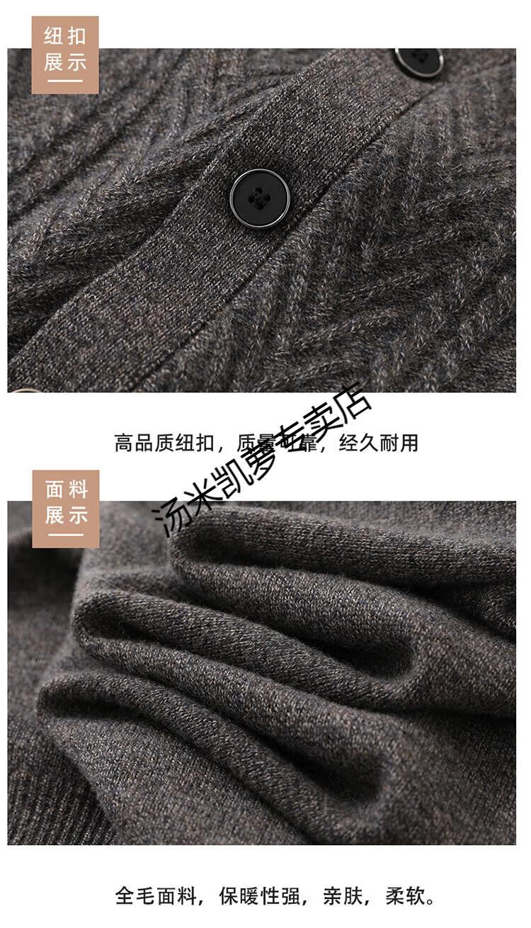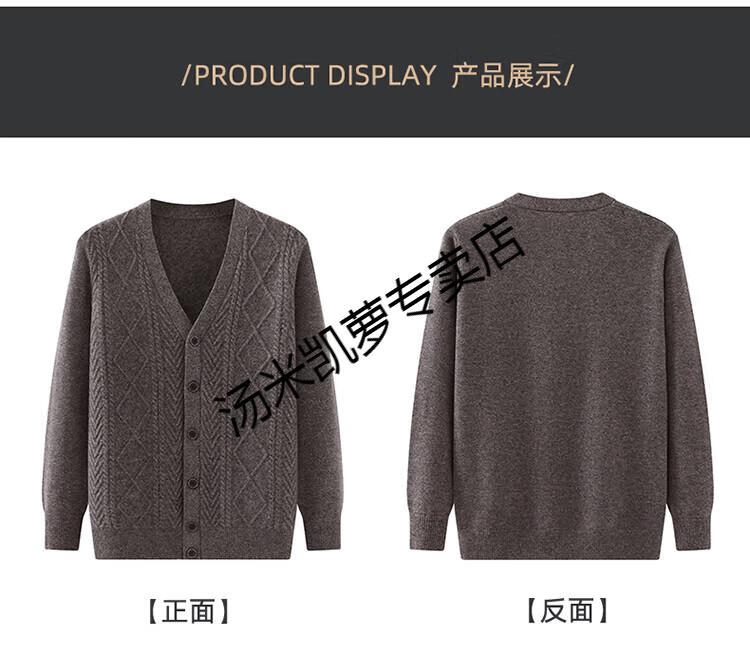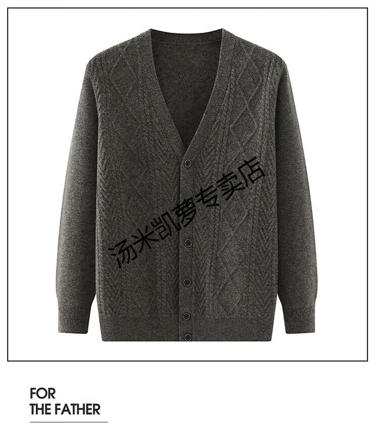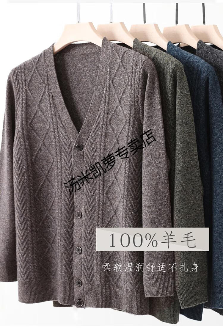 TOME BORNEK Dad's Wear Thickened 100% Cardigan Men's Sweater Knitted Cardigan Middle-aged and Old Men's Clothing Grandpa Spring Autumn Winter Solid Color V-Neck 8802 Mocha 170 Recommended 110-130Jin Jin is equal to 0.5 kg