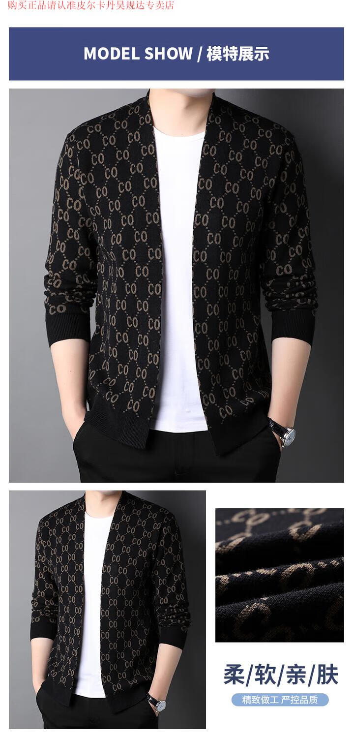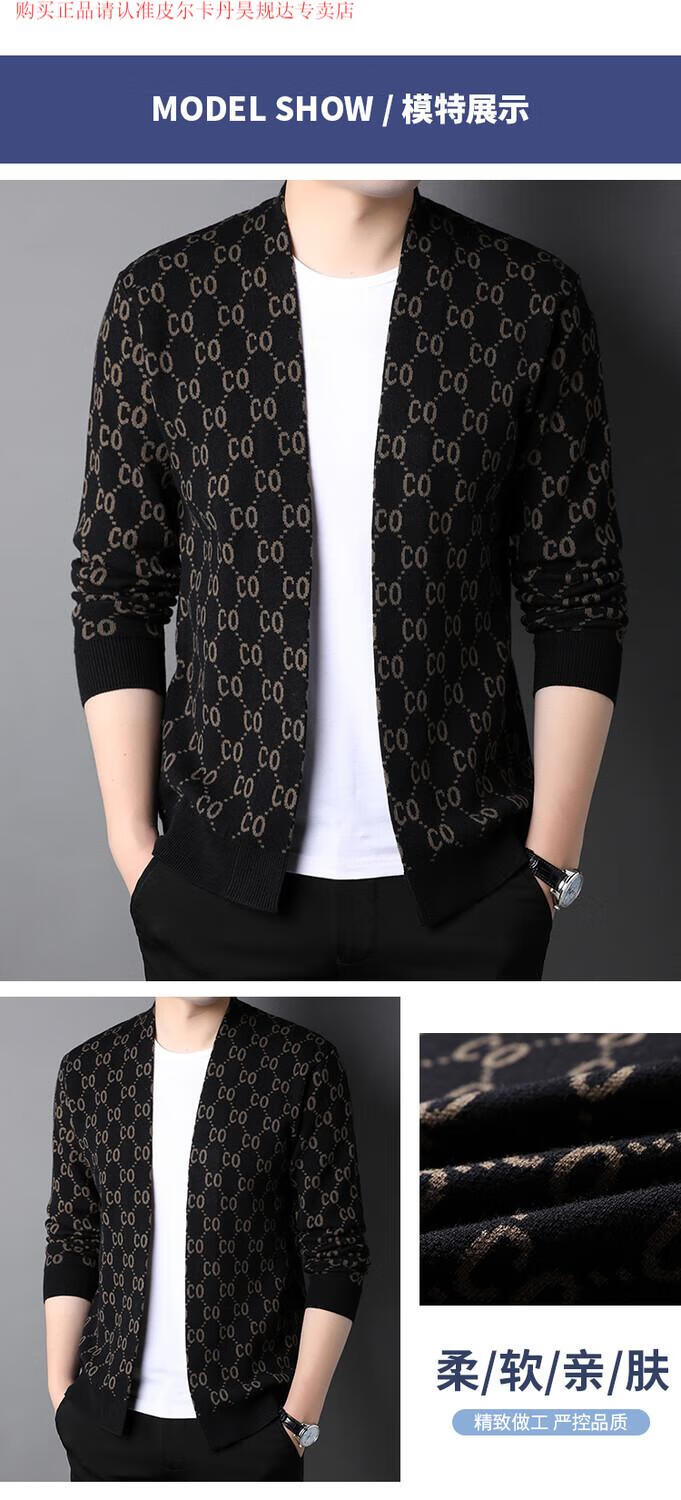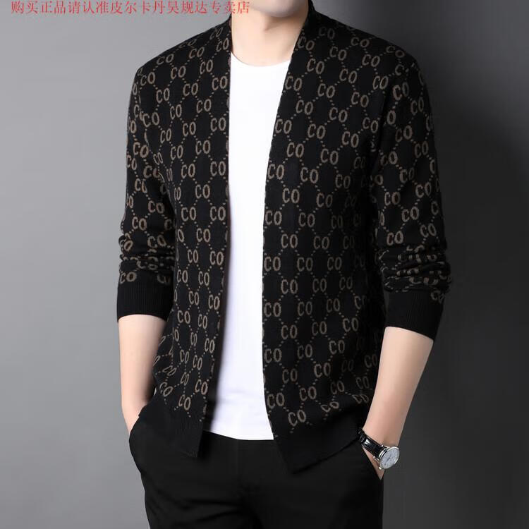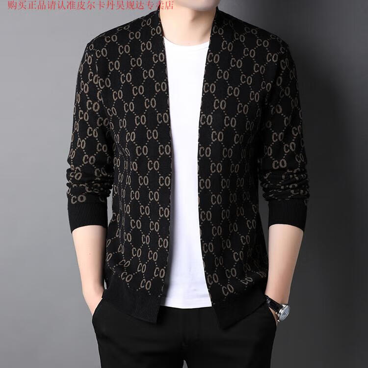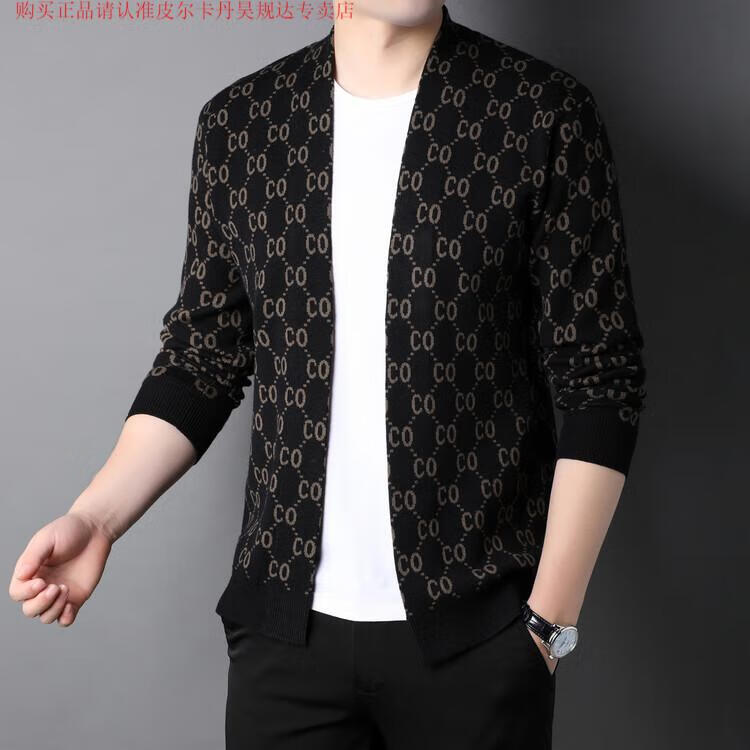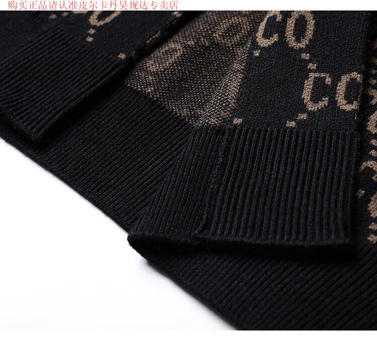 Pierre Cardin brand wool knitted cardigan men's young and middle-aged Korean style trendy fashion jacket casual handsome sweater jacket men black 2XL