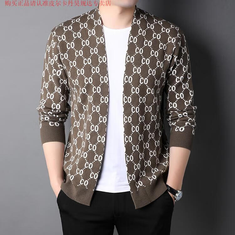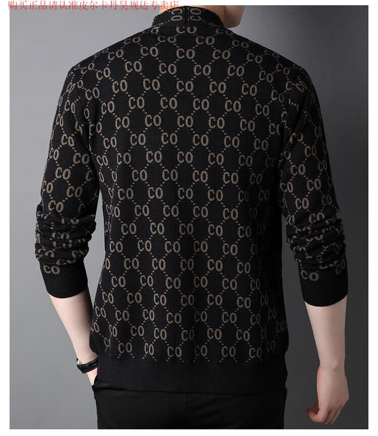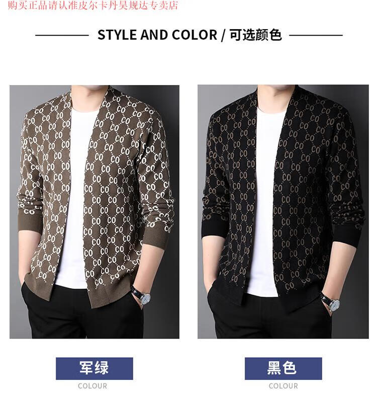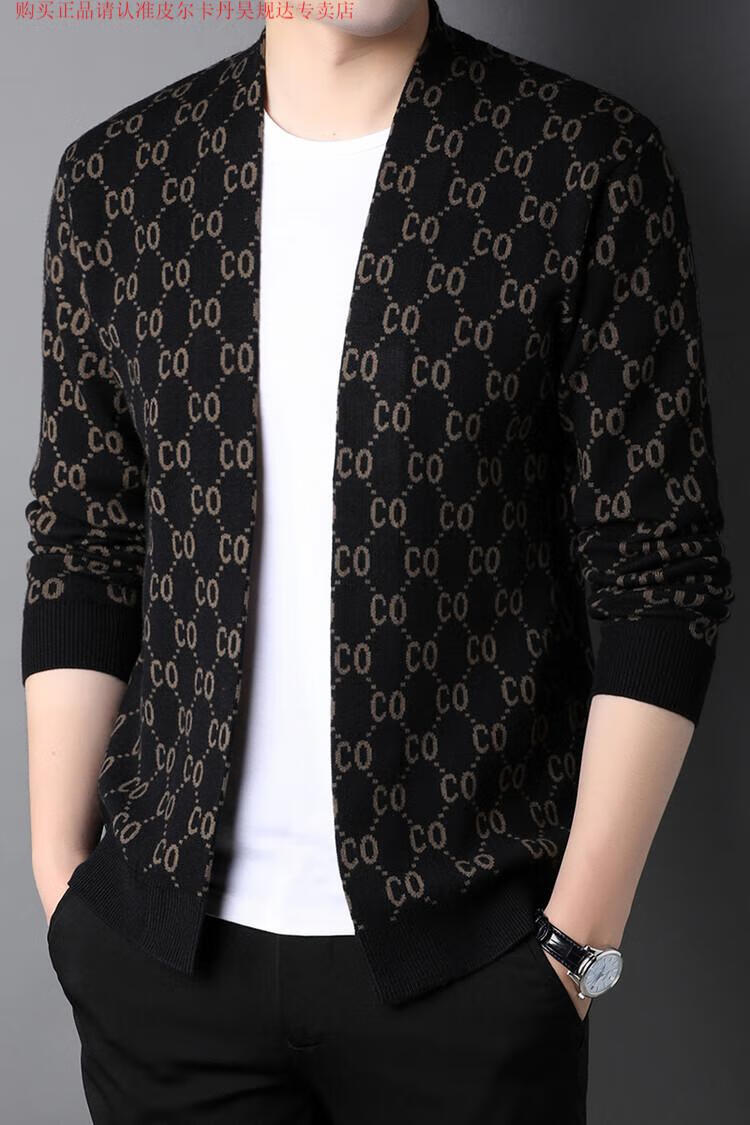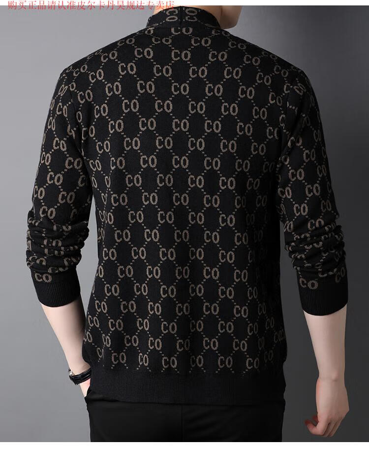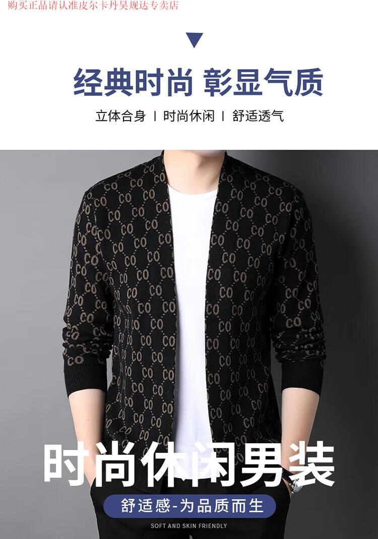 Pierre Cardin brand wool knitted cardigan men's young and middle-aged Korean style trendy fashion jacket casual handsome sweater jacket men black 2XL