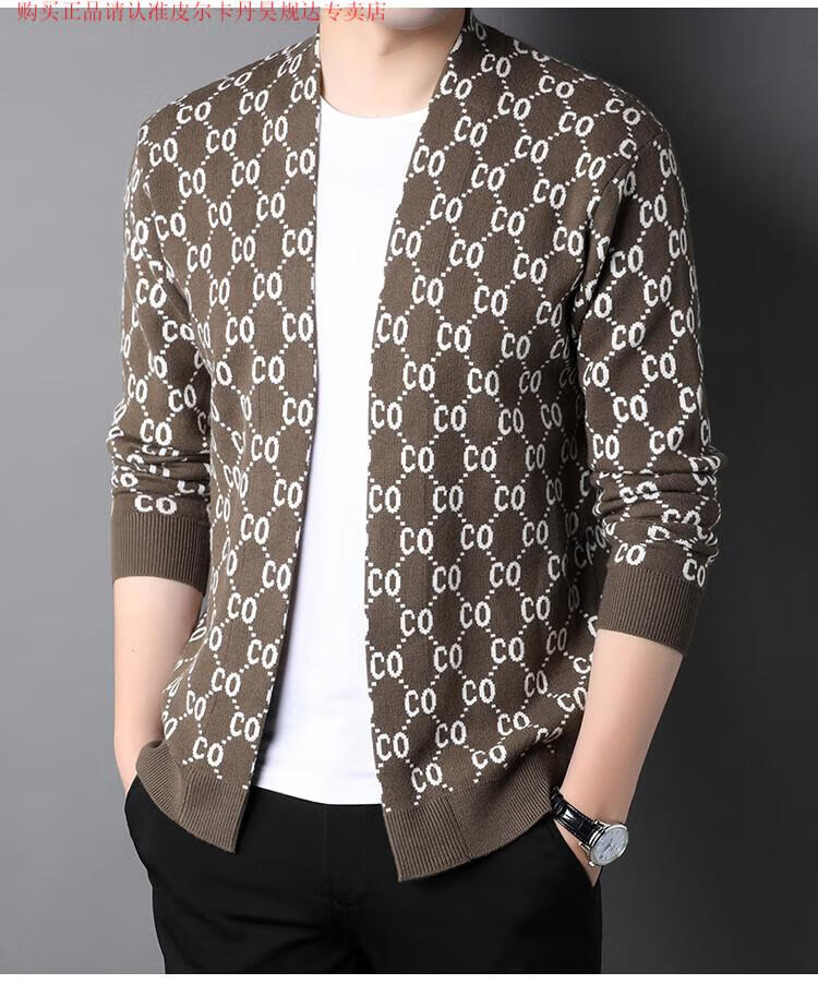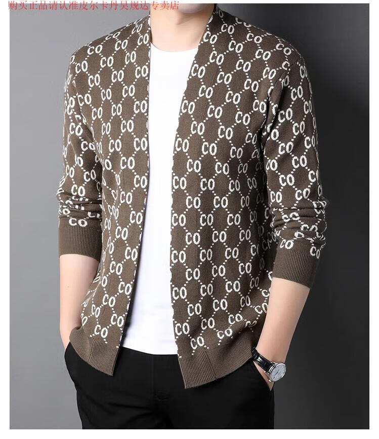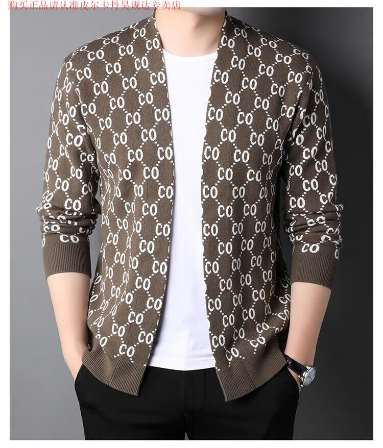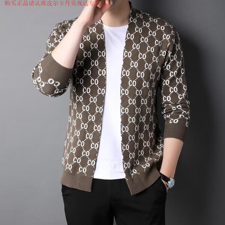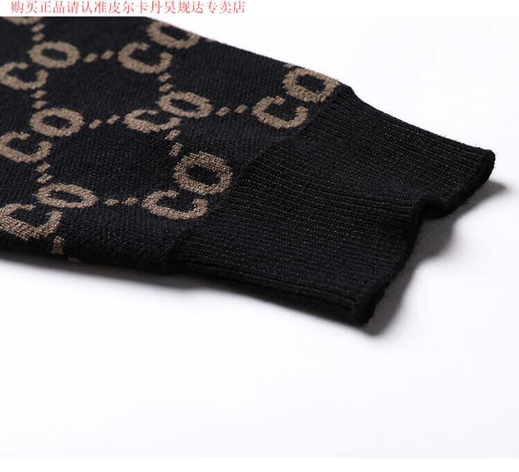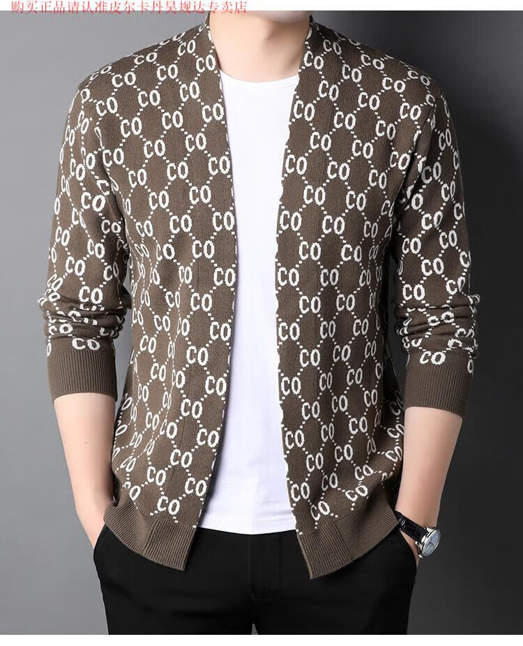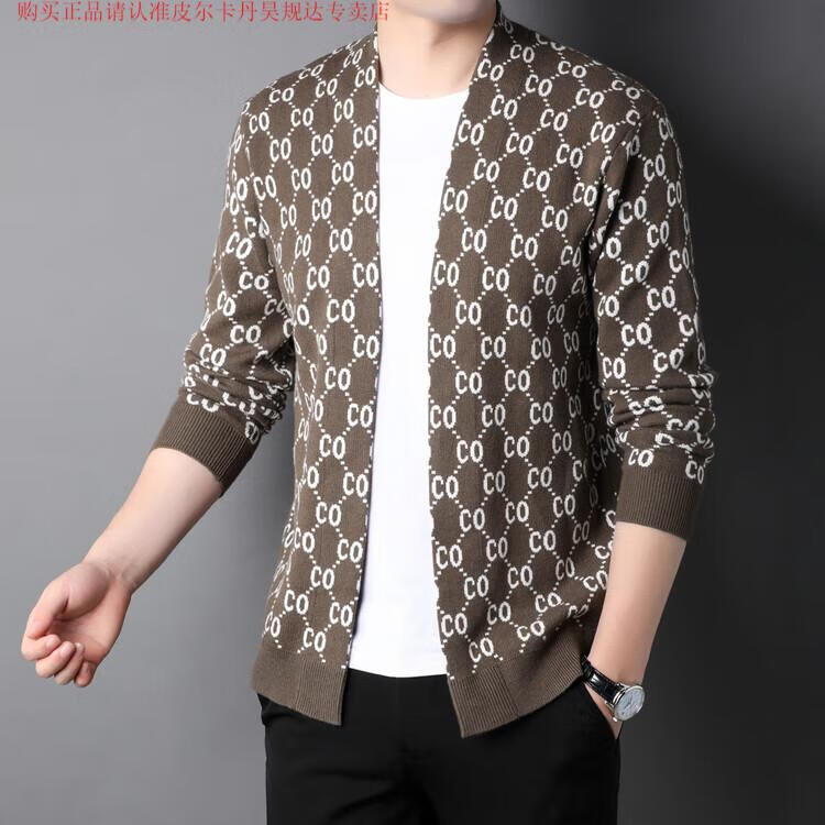 Pierre Cardin brand wool knitted cardigan men's young and middle-aged Korean style trendy fashion jacket casual handsome sweater jacket men black 2XL