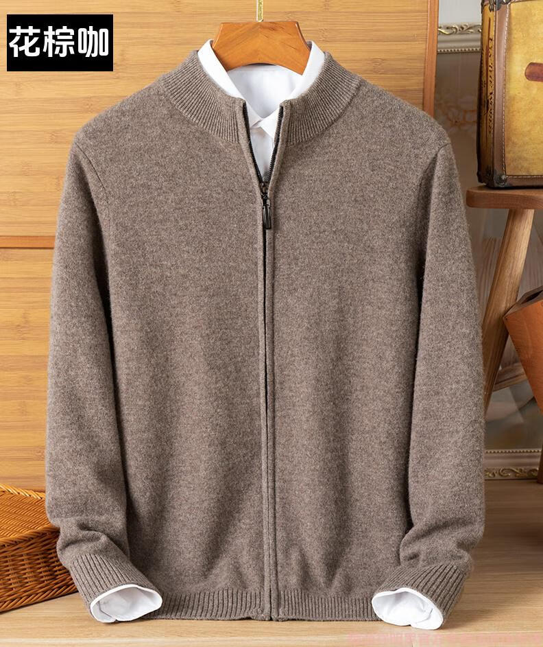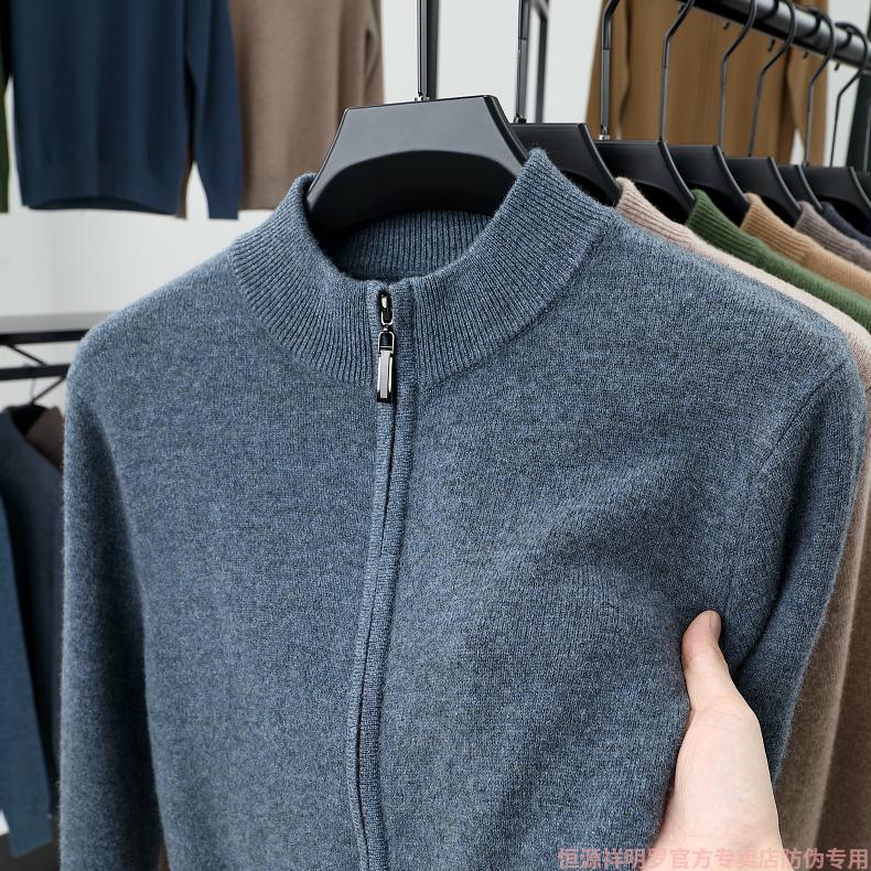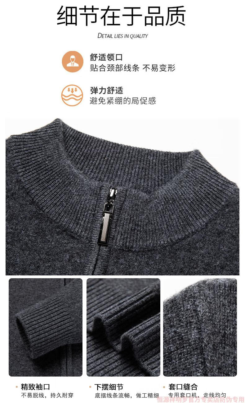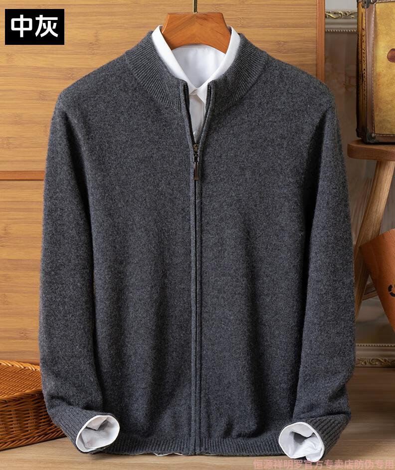 Hengyuan Xiangchunzhu Dad Autumn and Winter Solid Color Cashmere Cardigan Men's Thick Warm Jacket Loose Knitted Middle-aged Casual Sweater Medium Gray 170/88A Recommended 120-140Jin Jin equals 0.5 kg