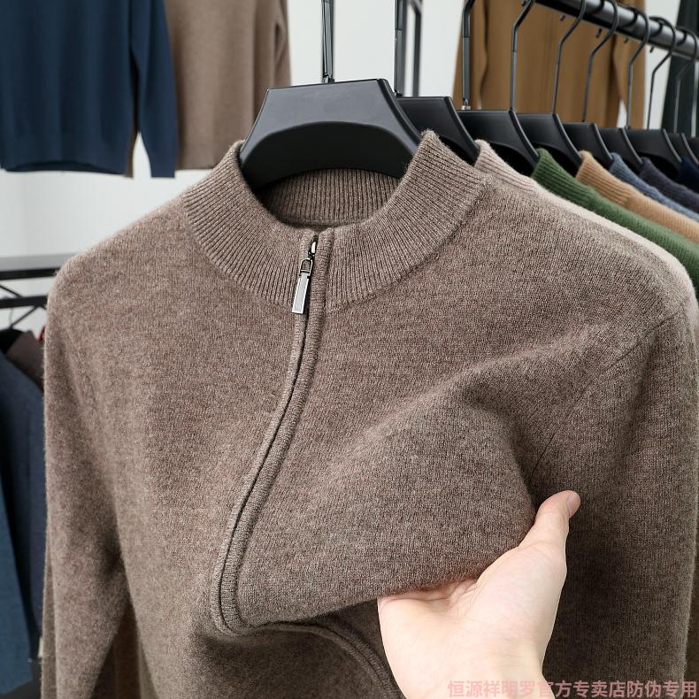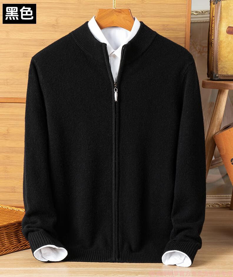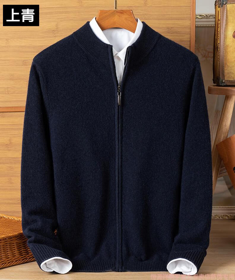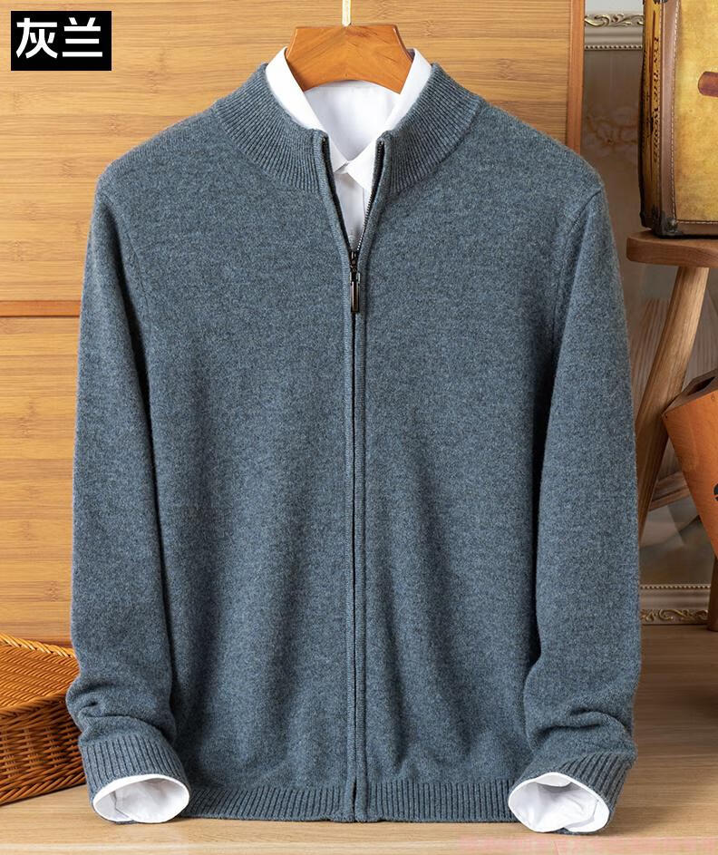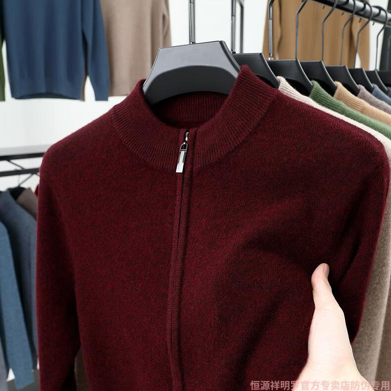 Hengyuan Xiangchunzhu Dad Autumn and Winter Solid Color Cashmere Cardigan Men's Thick Warm Jacket Loose Knitted Middle-aged Casual Sweater Medium Gray 170/88A Recommended 120-140Jin Jin equals 0.5 kg