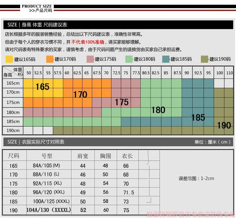 China (cm) 165 / 88-90 170 / 96-98 175 / 108-110 180 / 118-122 185 / 126-130