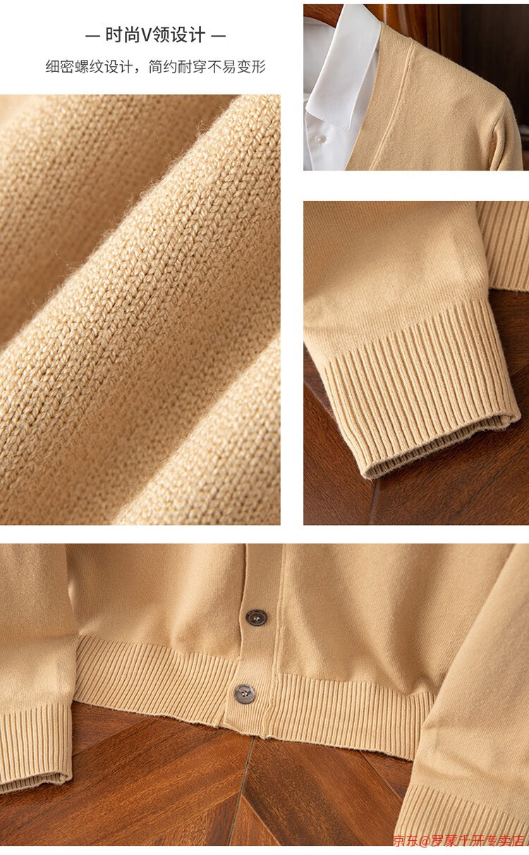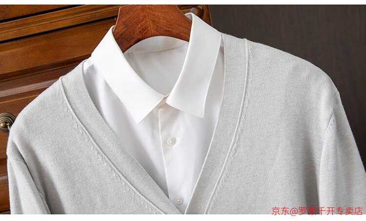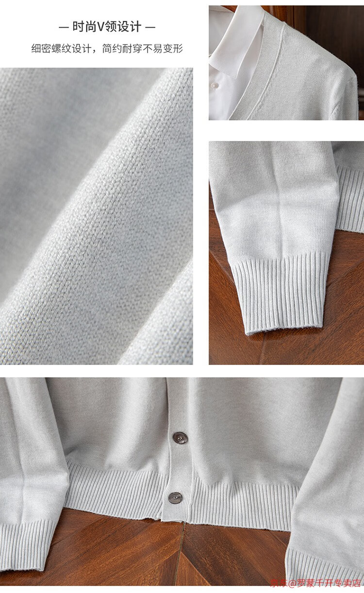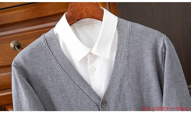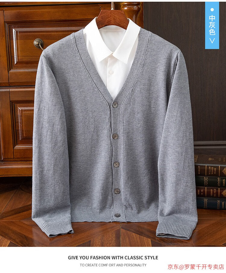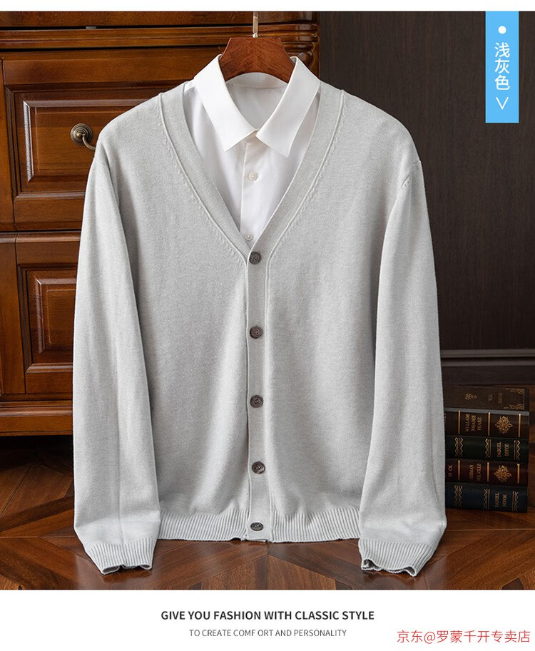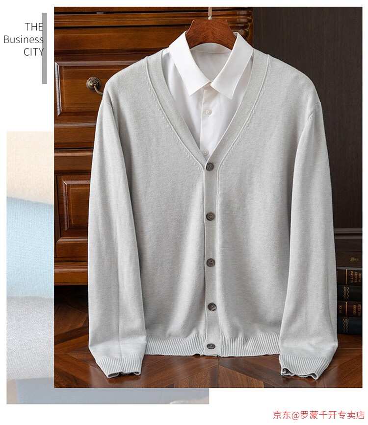 ROMON spring and autumn new style wool cardigan for men solid color knitted jacket loose V-neck sweater casual business top for men light gray without shirt 3XL 190-210Jin Jin equals 0.5 kg