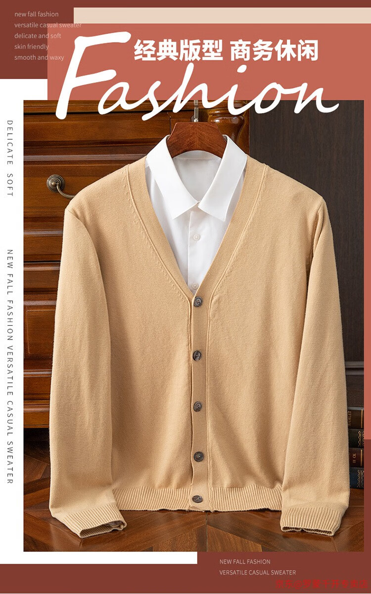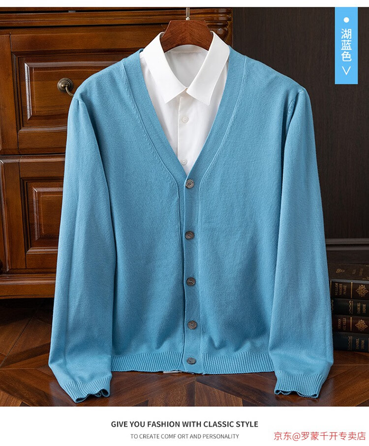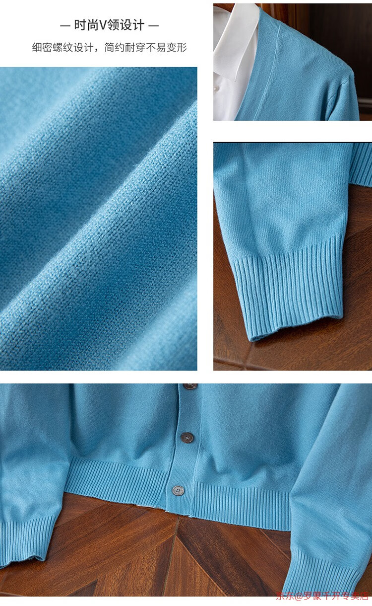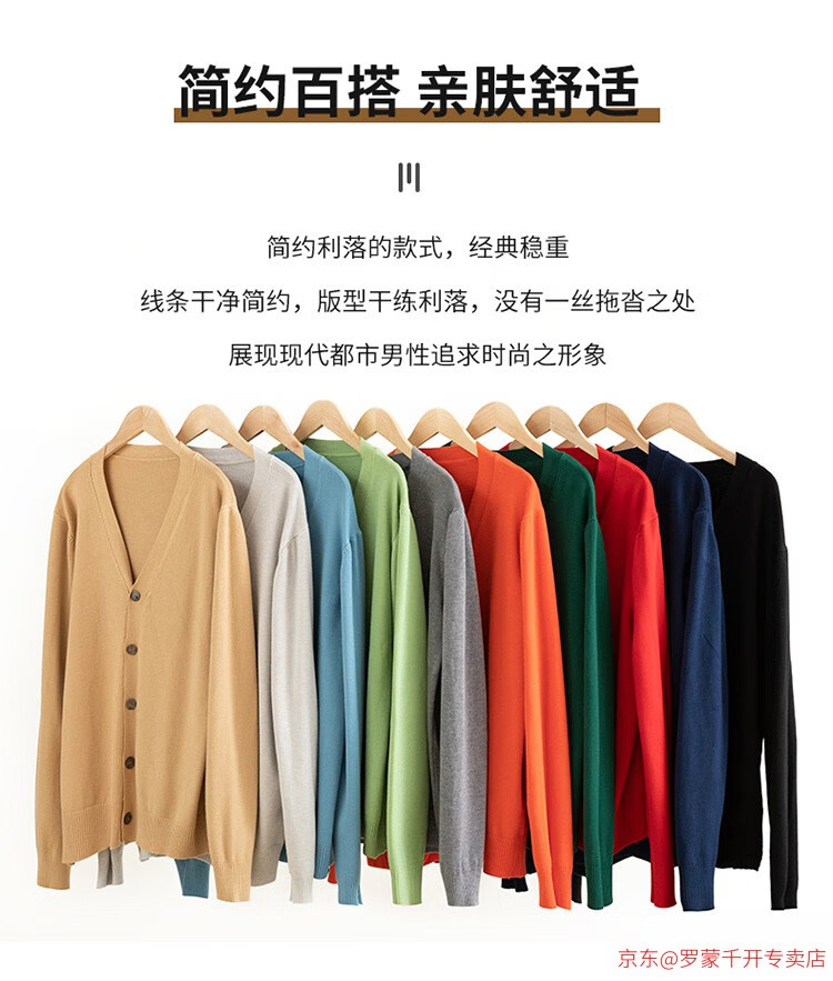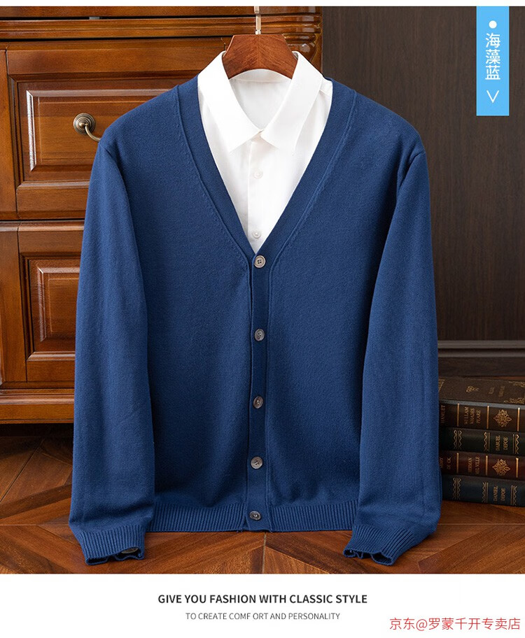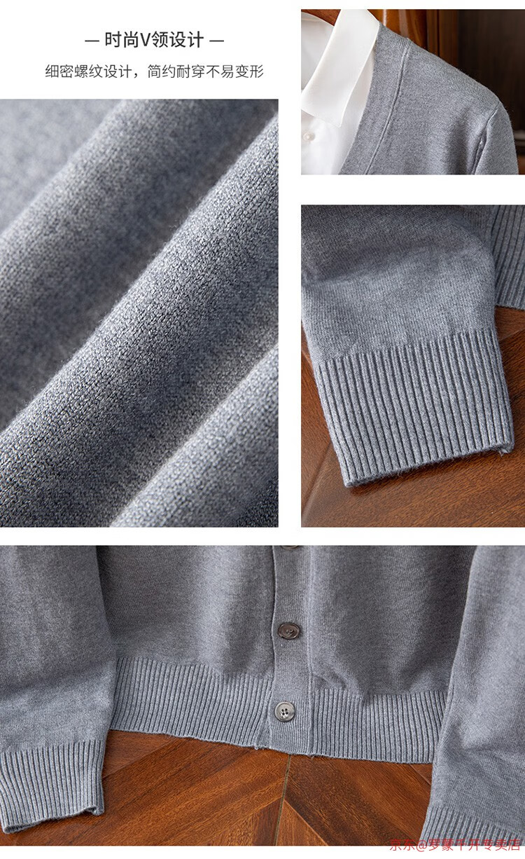 ROMON spring and autumn new style wool cardigan for men solid color knitted jacket loose V-neck sweater casual business top for men light gray without shirt 3XL 190-210Jin Jin equals 0.5 kg