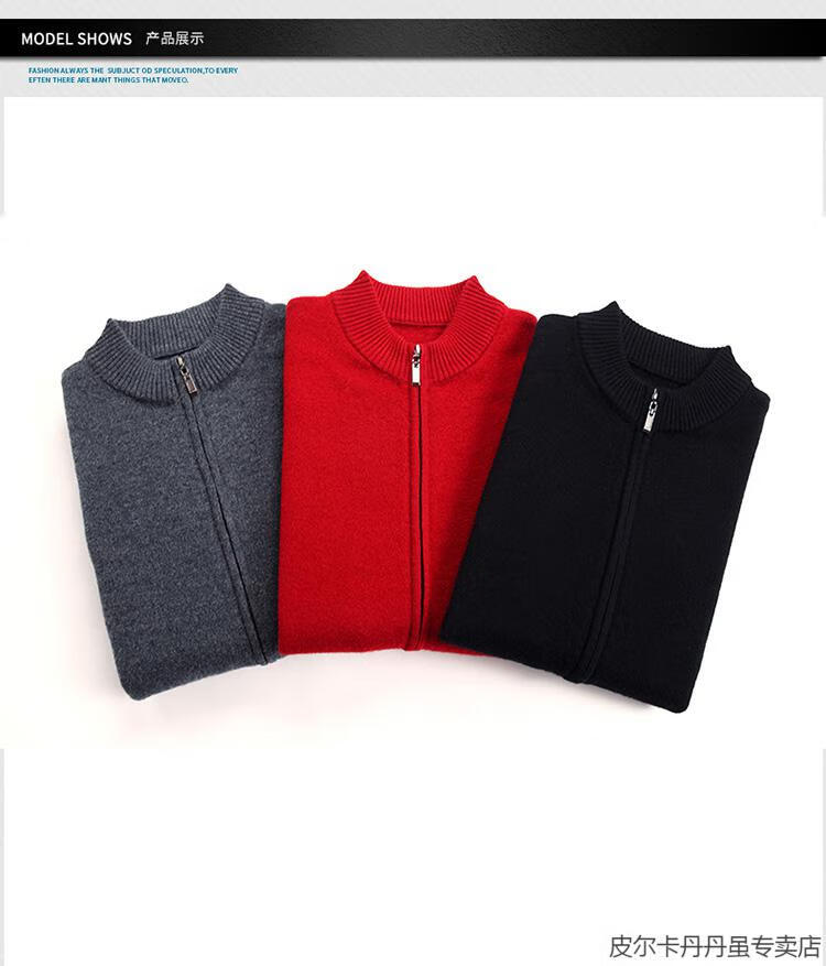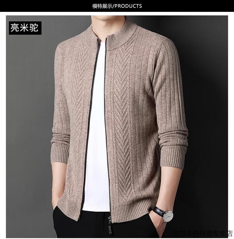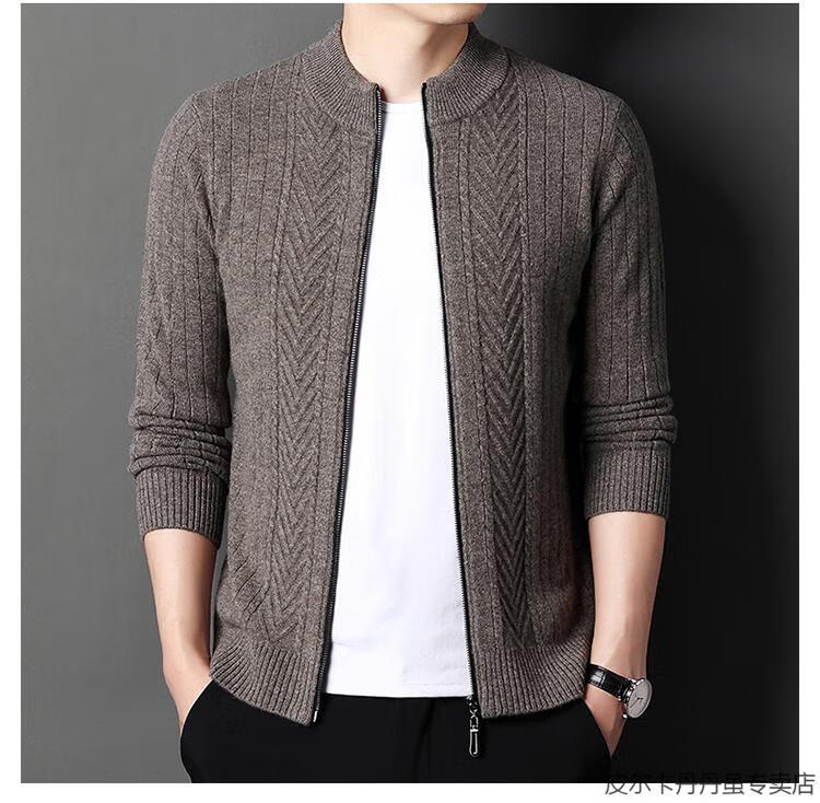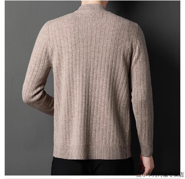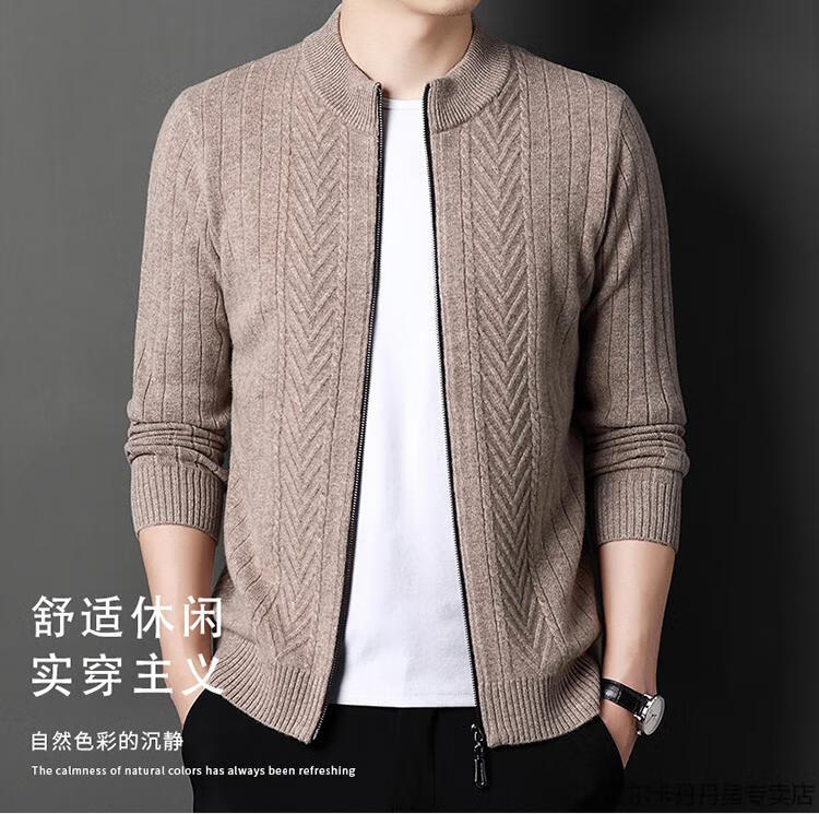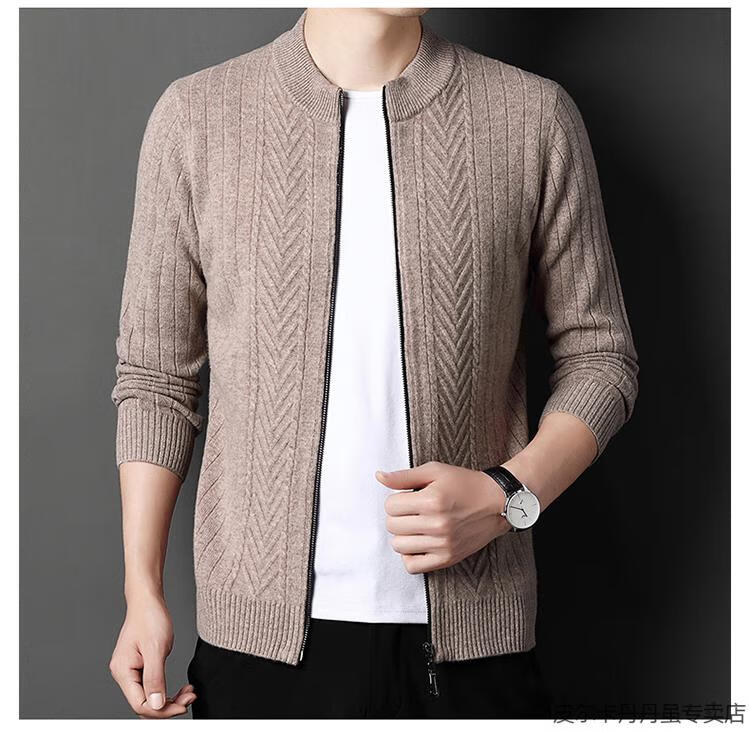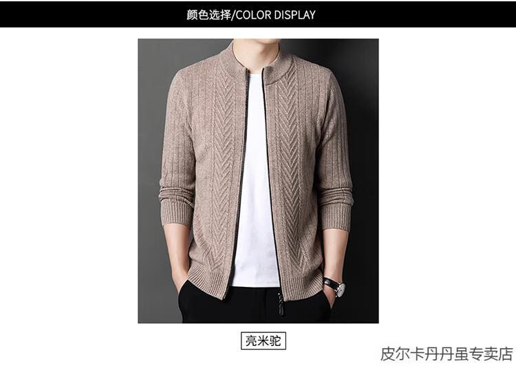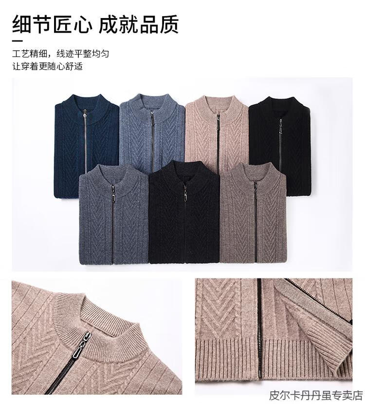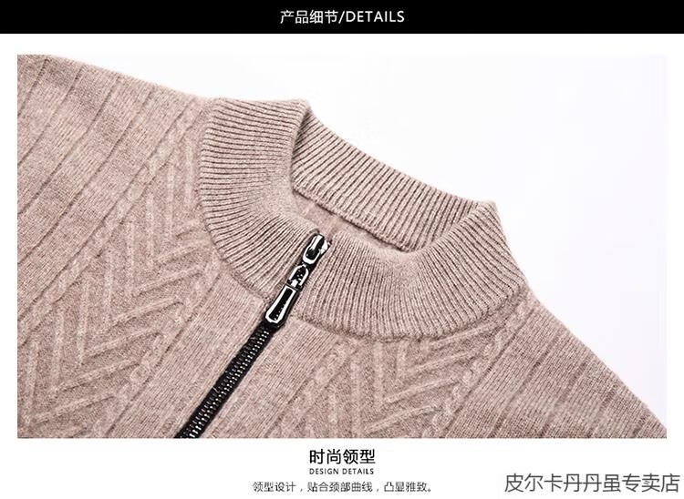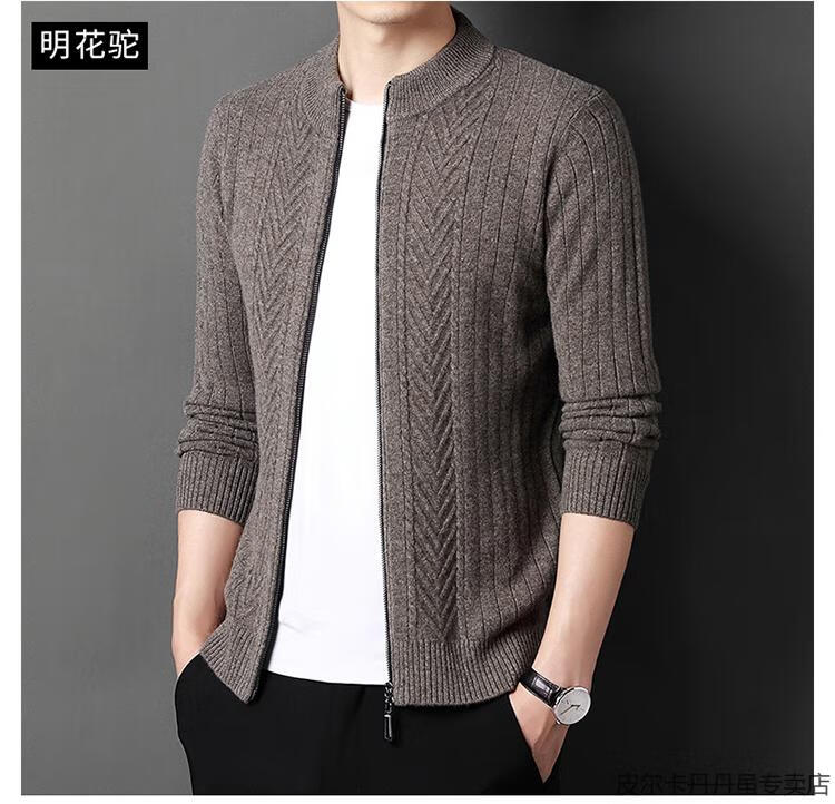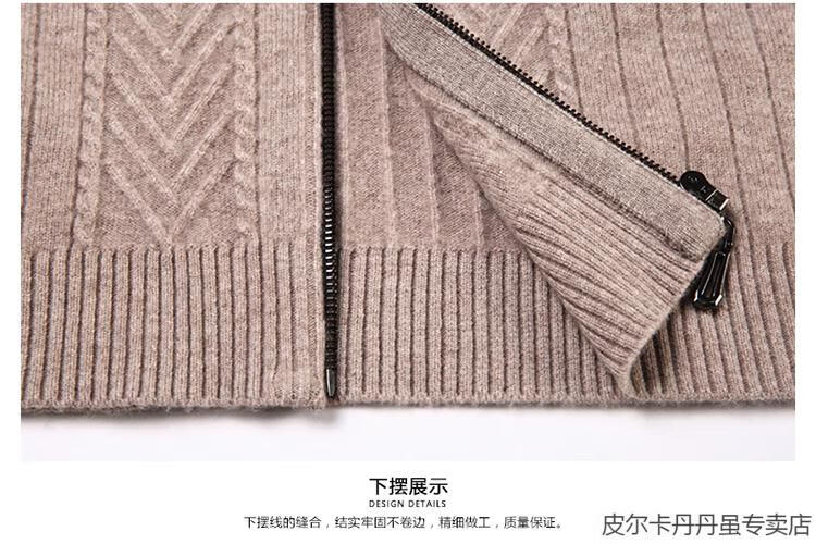 Pierre Cardin half-high zipper collar men's pure cashmere cardigan thickened jacquard middle-aged knitted cardigan casual knitted jacket 15212 floral camel S 165 suitable 90-120Jin Jin equals 0.5 kg