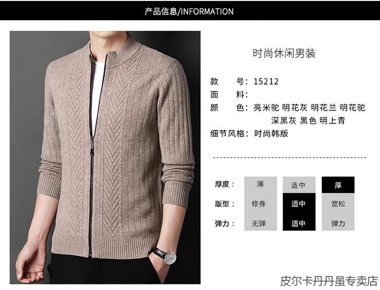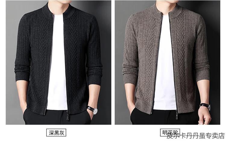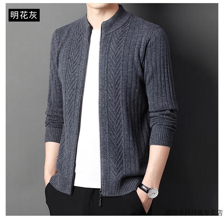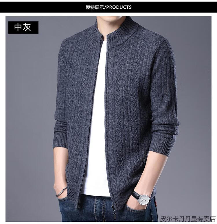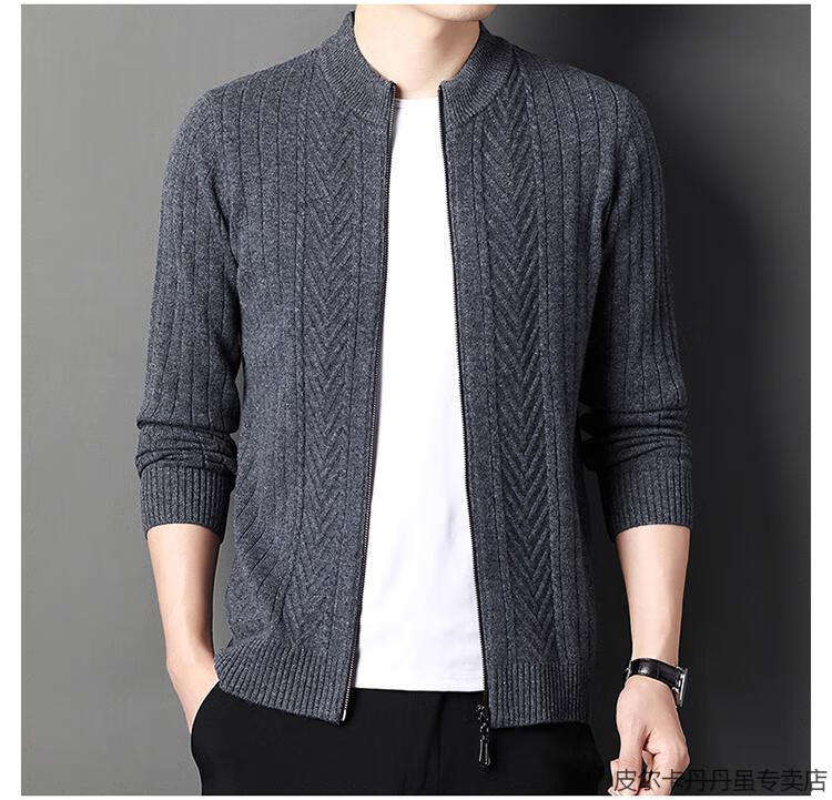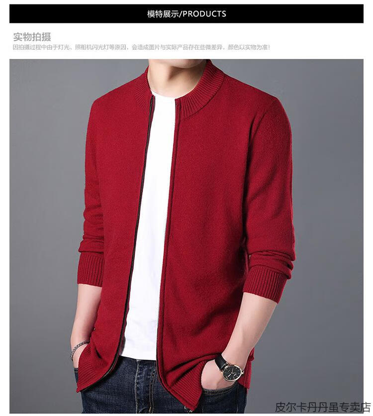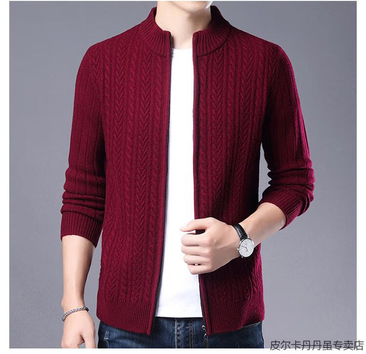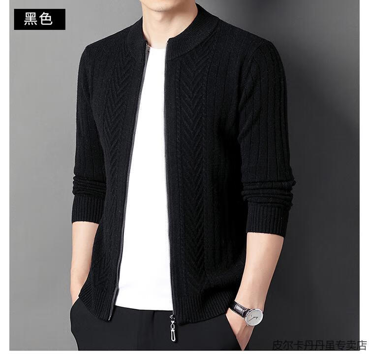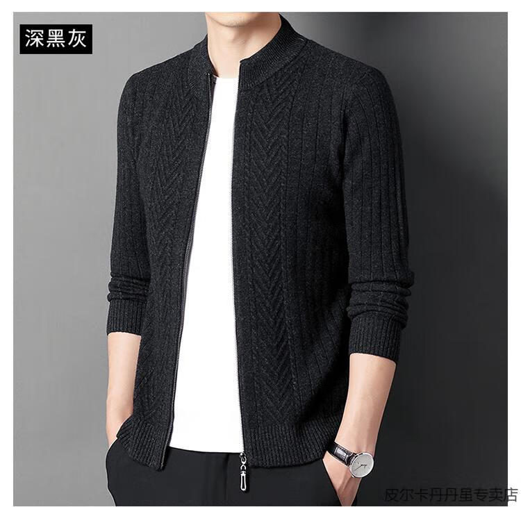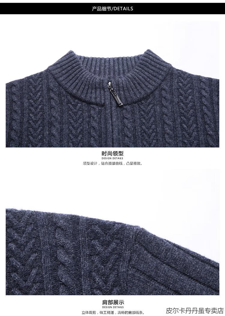 Pierre Cardin half-high zipper collar men's pure cashmere cardigan thickened jacquard middle-aged knitted cardigan casual knitted jacket 15212 floral camel S 165 suitable 90-120Jin Jin equals 0.5 kg