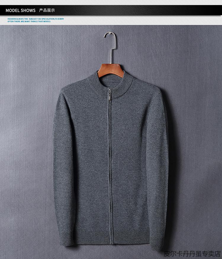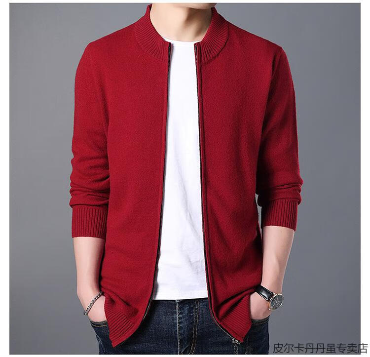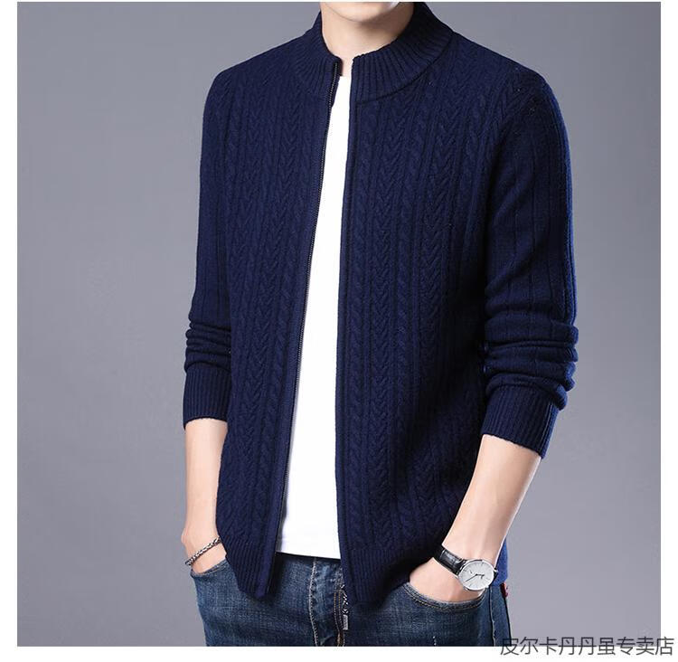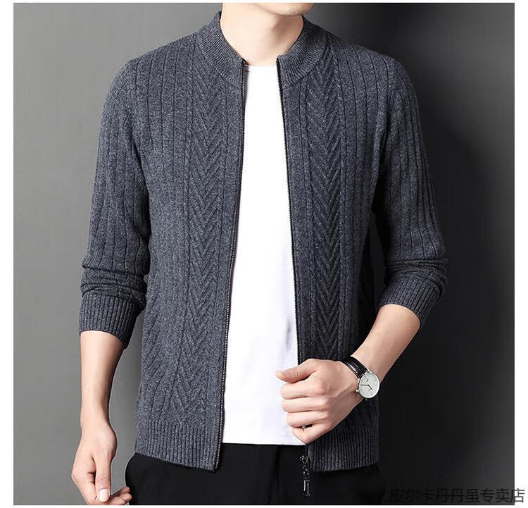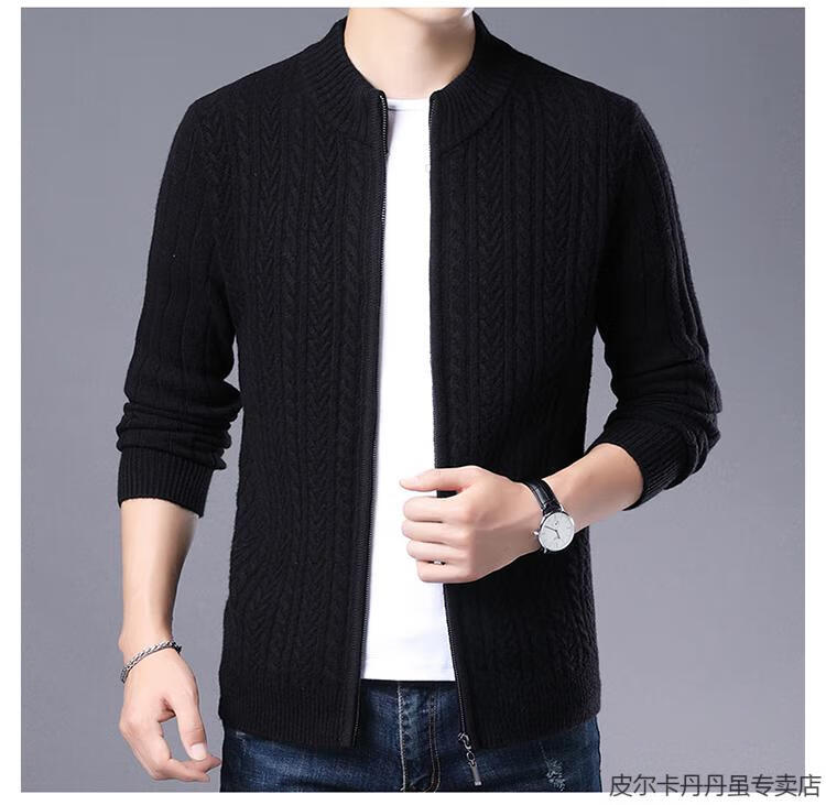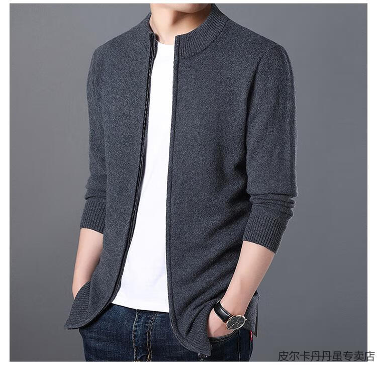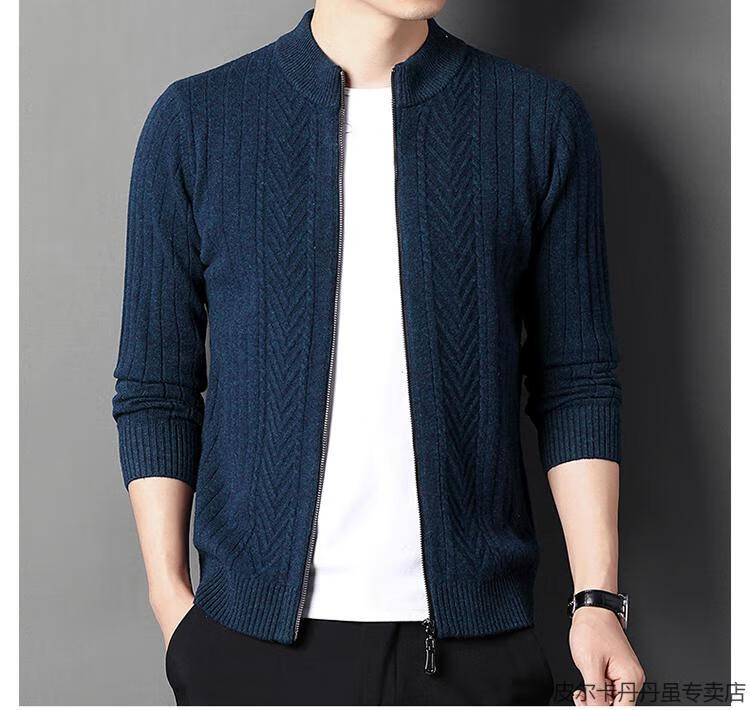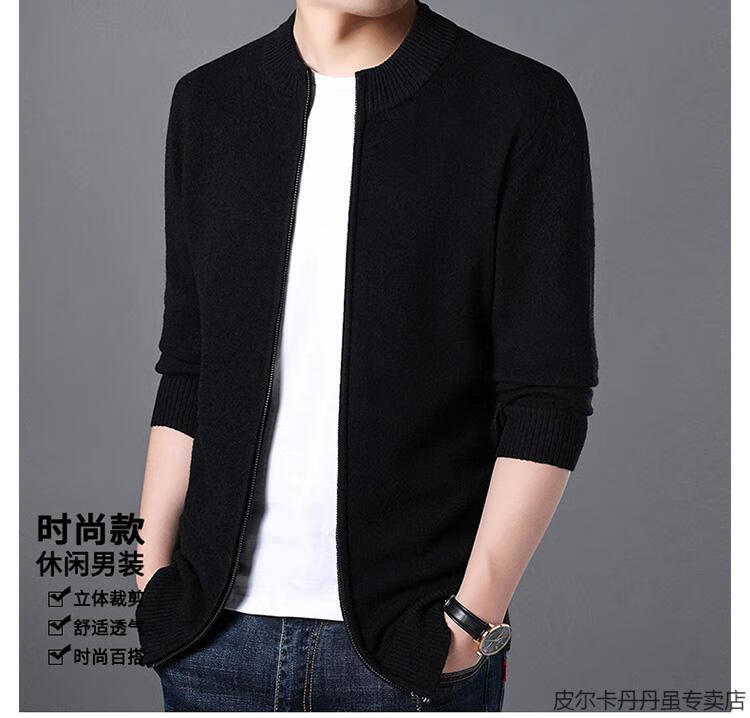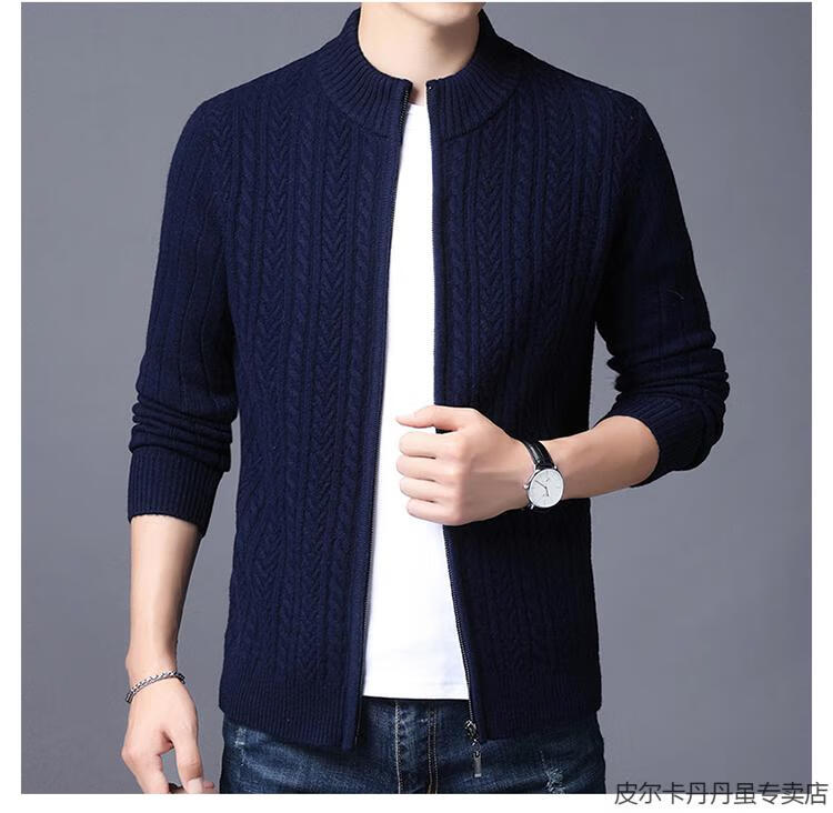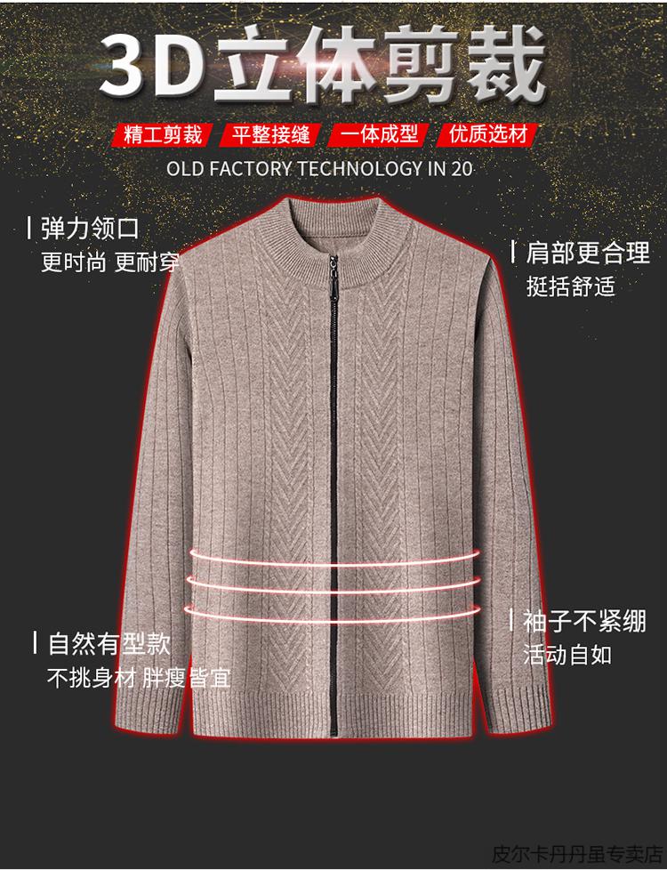 Pierre Cardin half-high zipper collar men's pure cashmere cardigan thickened jacquard middle-aged knitted cardigan casual knitted jacket 15212 floral camel S 165 suitable 90-120Jin Jin equals 0.5 kg