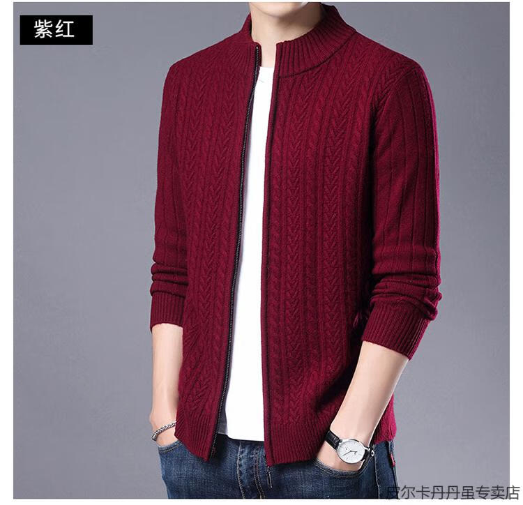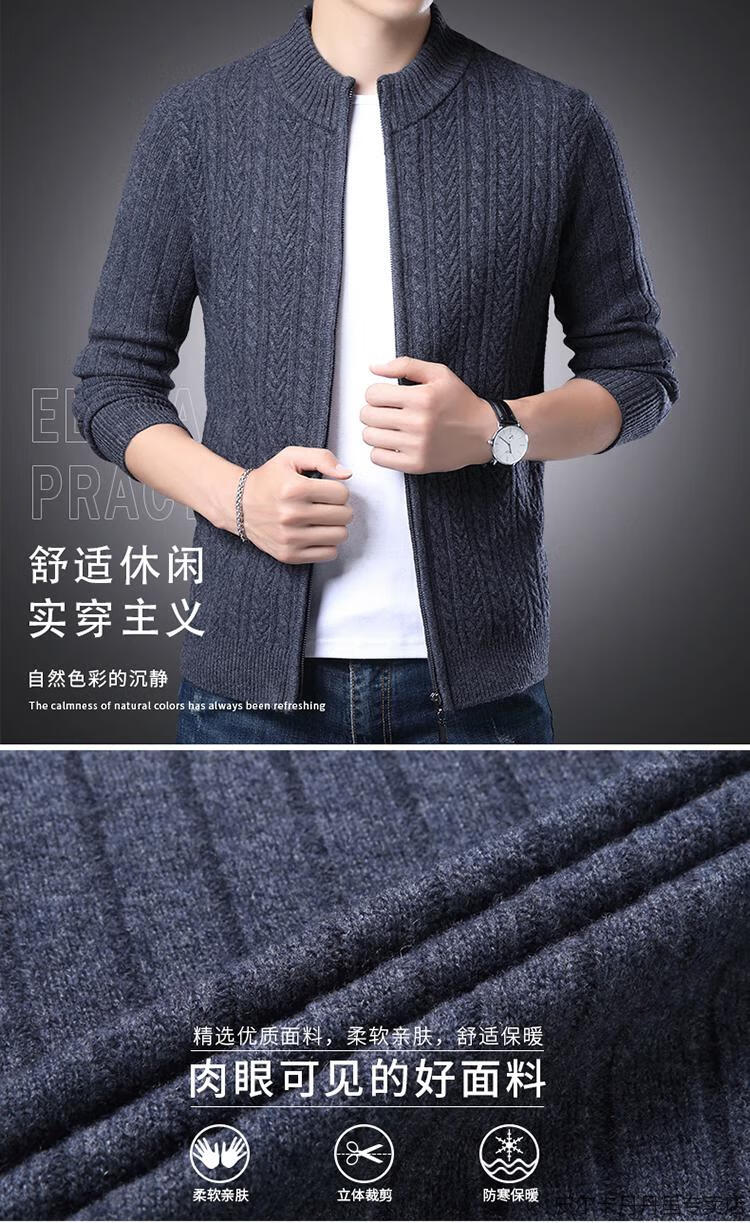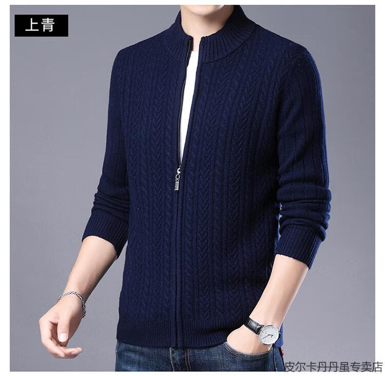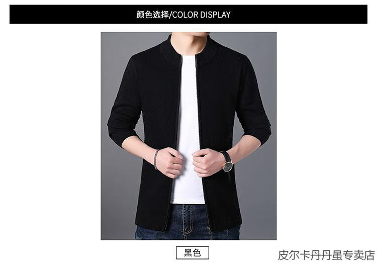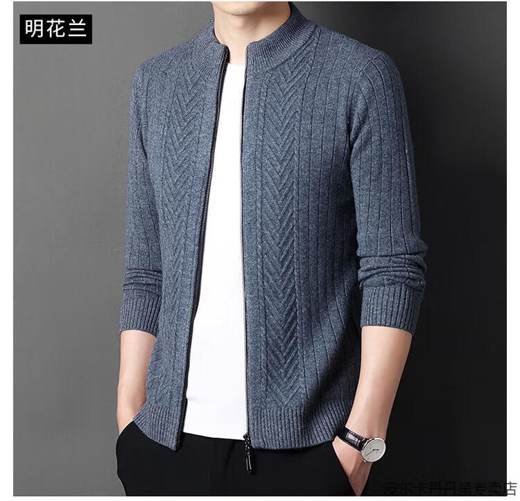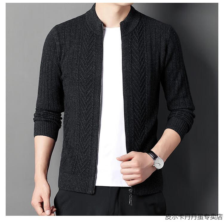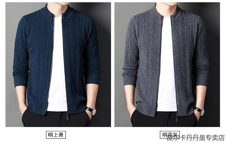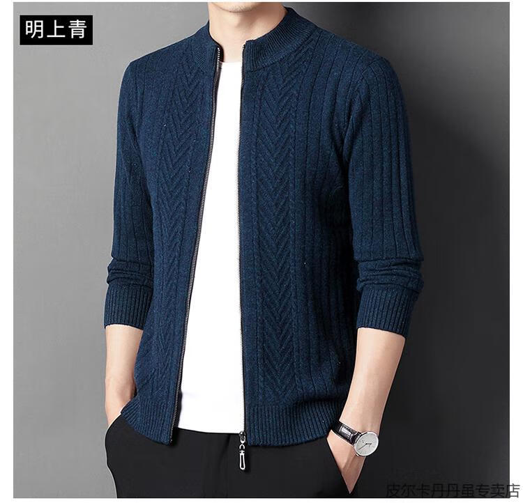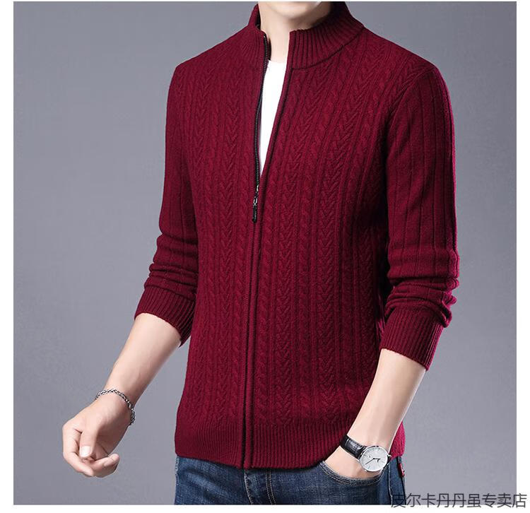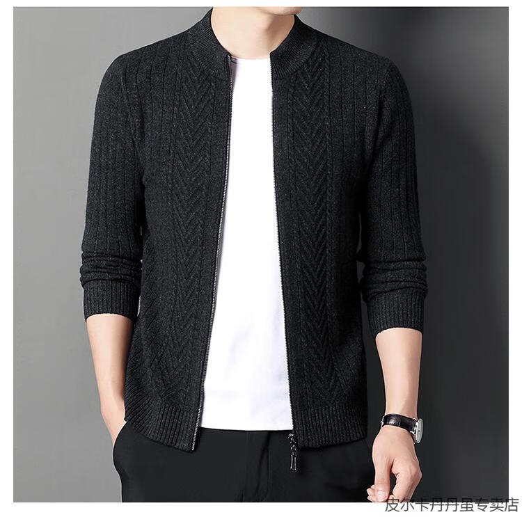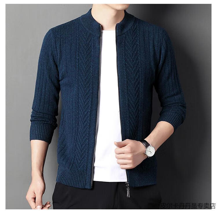 Pierre Cardin half-high zipper collar men's pure cashmere cardigan thickened jacquard middle-aged knitted cardigan casual knitted jacket 15212 floral camel S 165 suitable 90-120Jin Jin equals 0.5 kg