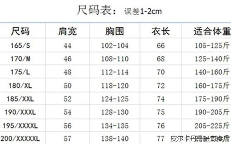 China (cm) 165 / 88-90 170 / 96-98 175 / 108-110 180 / 118-122 185 / 126-130