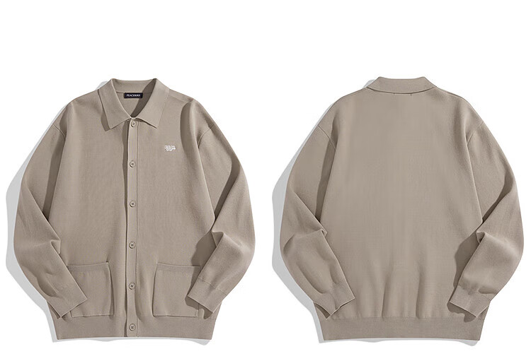 PEACEBIRD Men's Wool Cardigan Spring Fashion Brand Men's Cardigan B1EAE1318 Khaki 1 (Loose) S