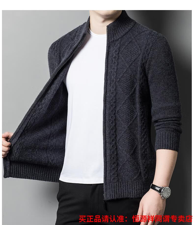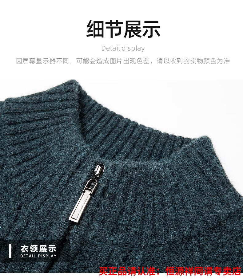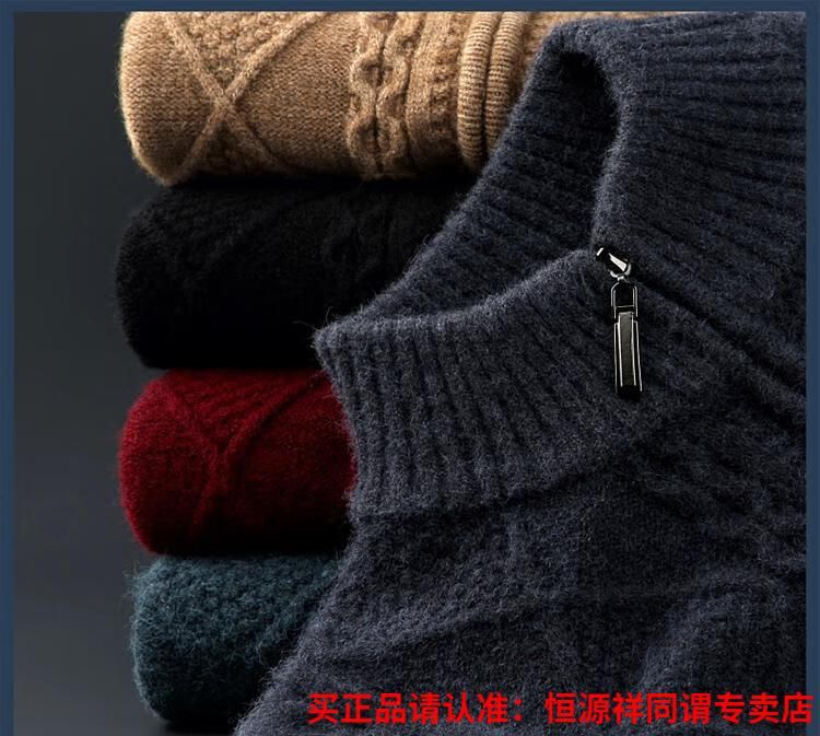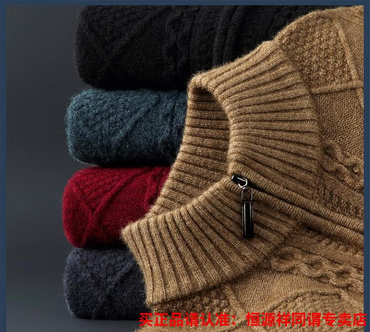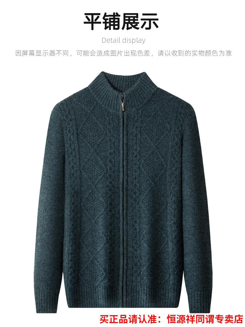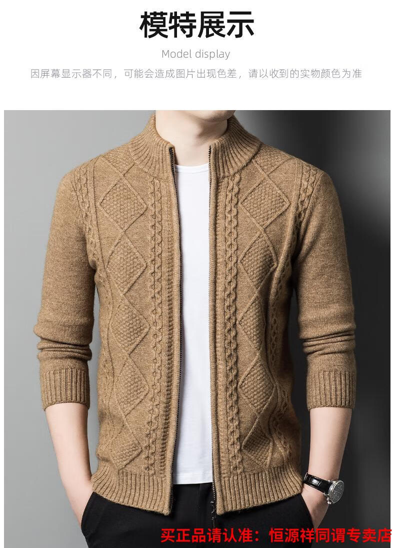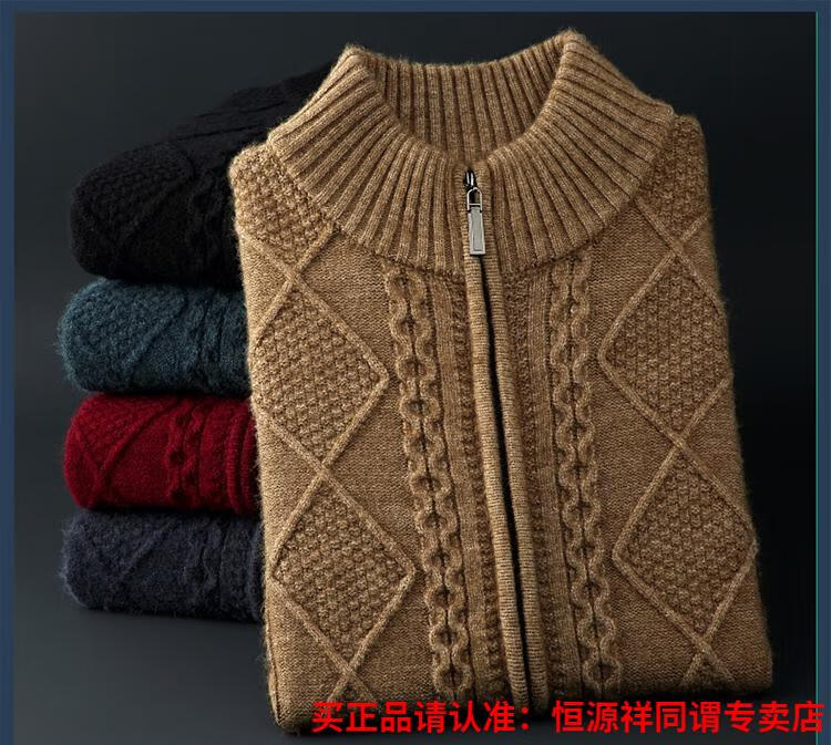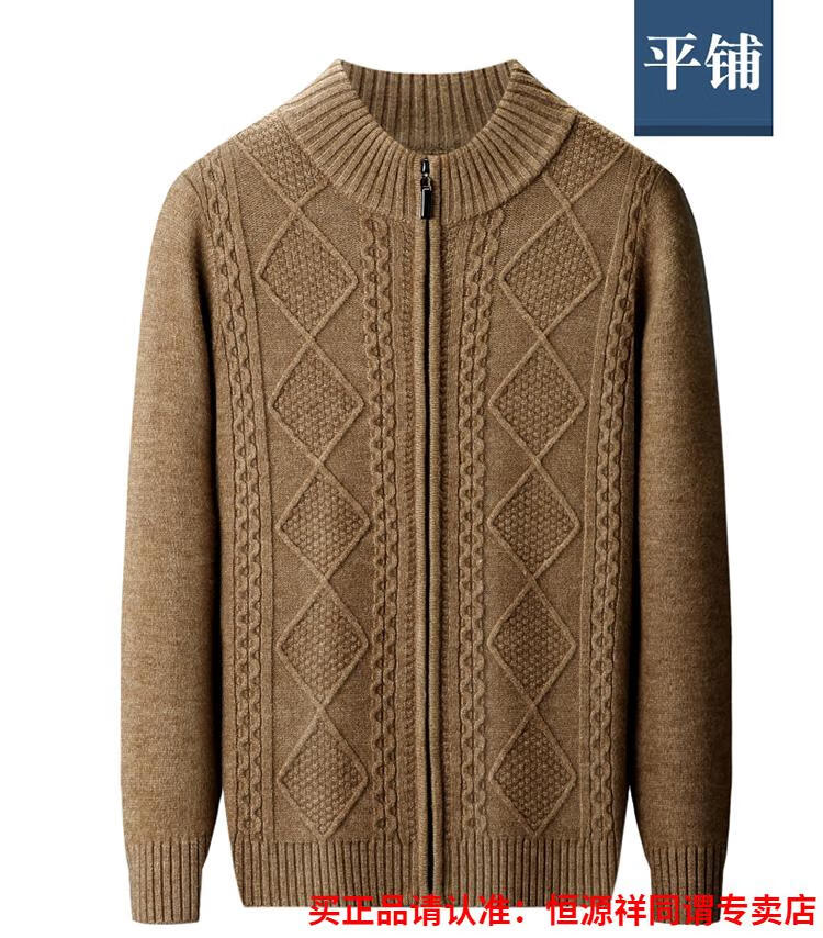 Hengyuanxiang wool sweater for men in autumn and winter new thickened knitted cardigan coat sweater zipper large size wool sweater for men camel M