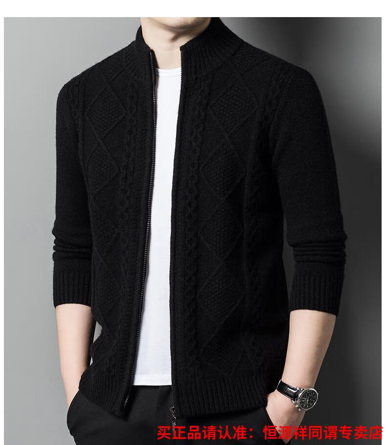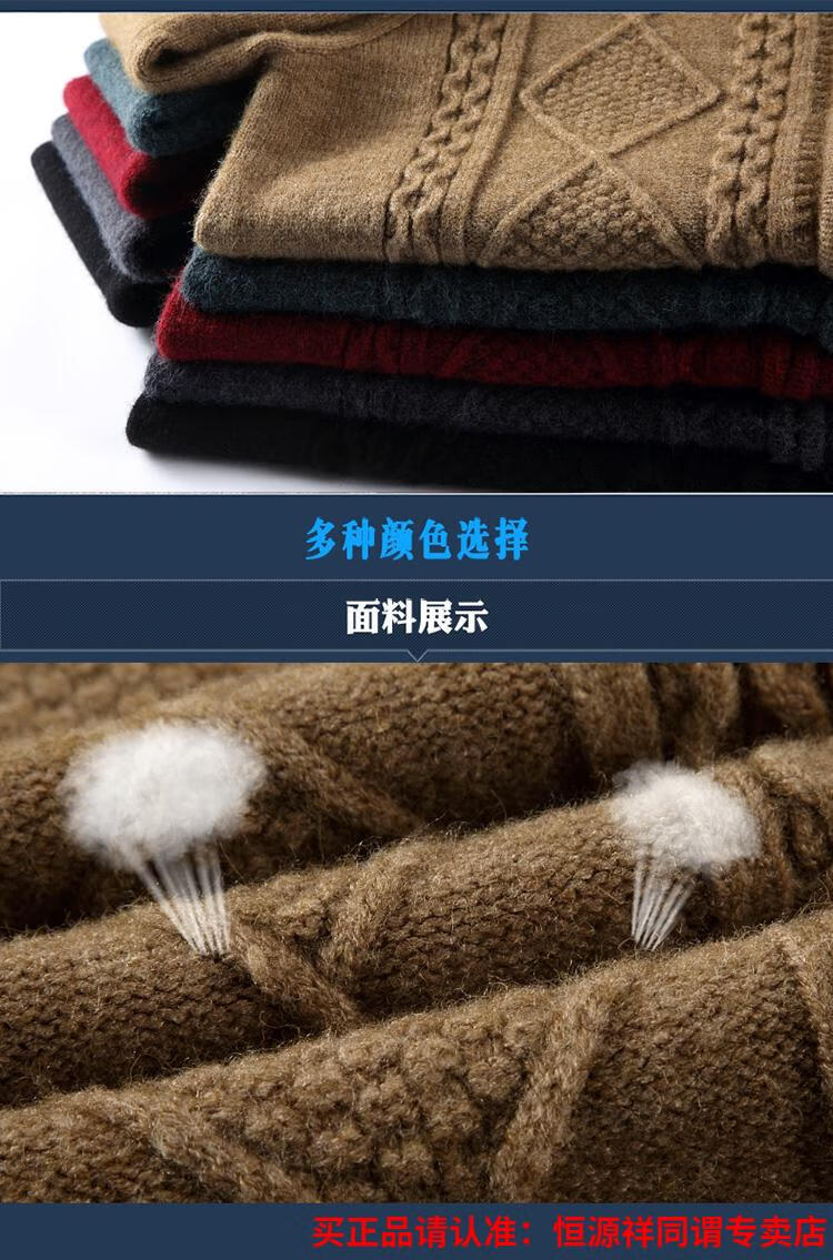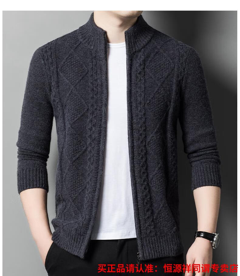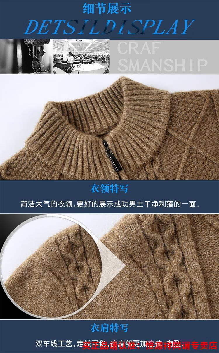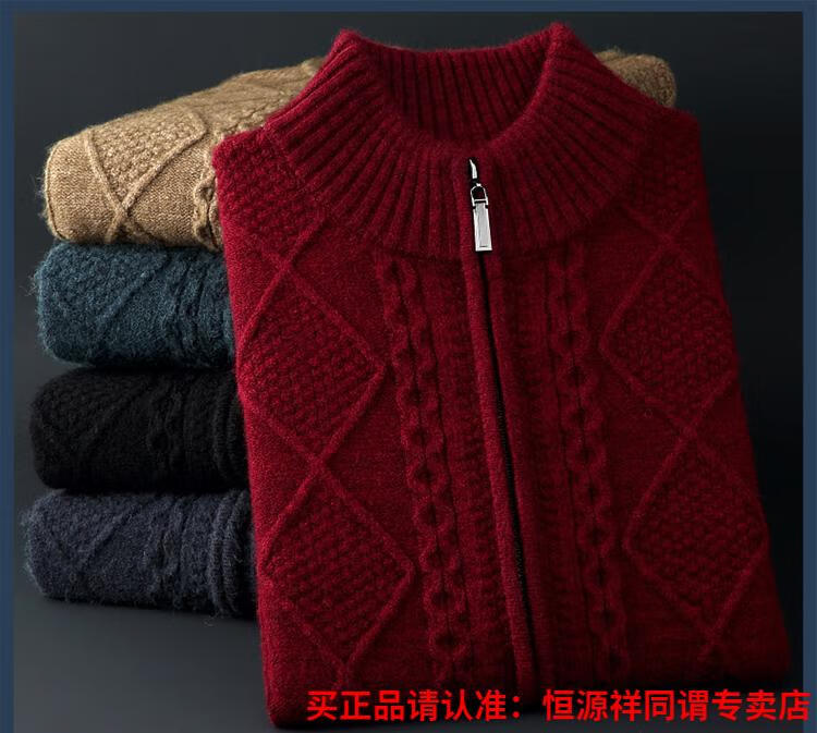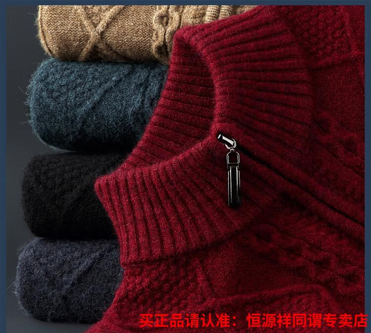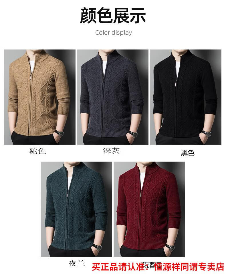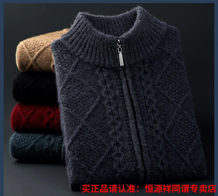 Hengyuanxiang wool sweater for men in autumn and winter new thickened knitted cardigan coat sweater zipper large size wool sweater for men camel M