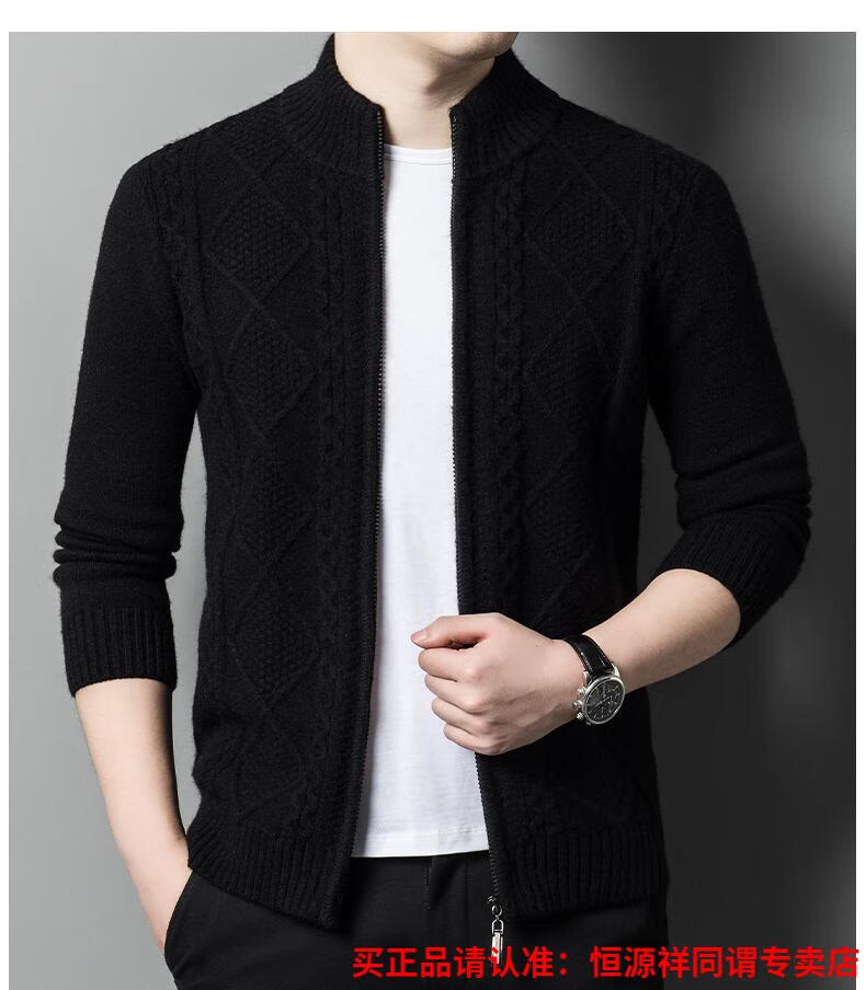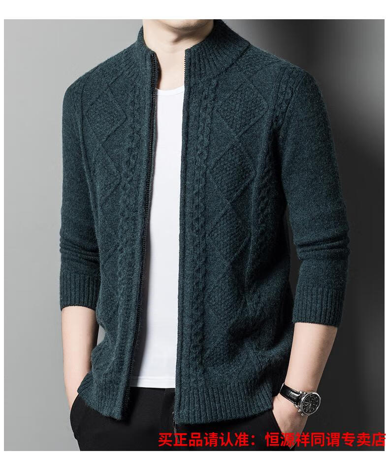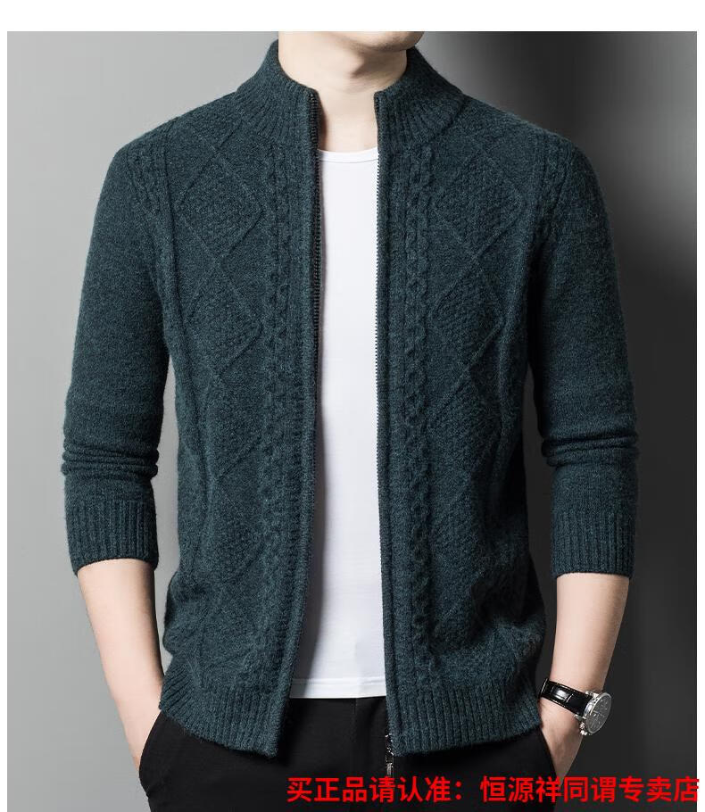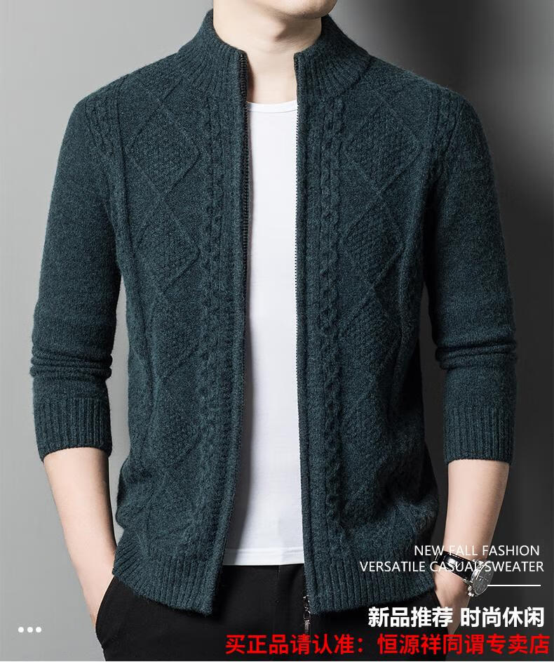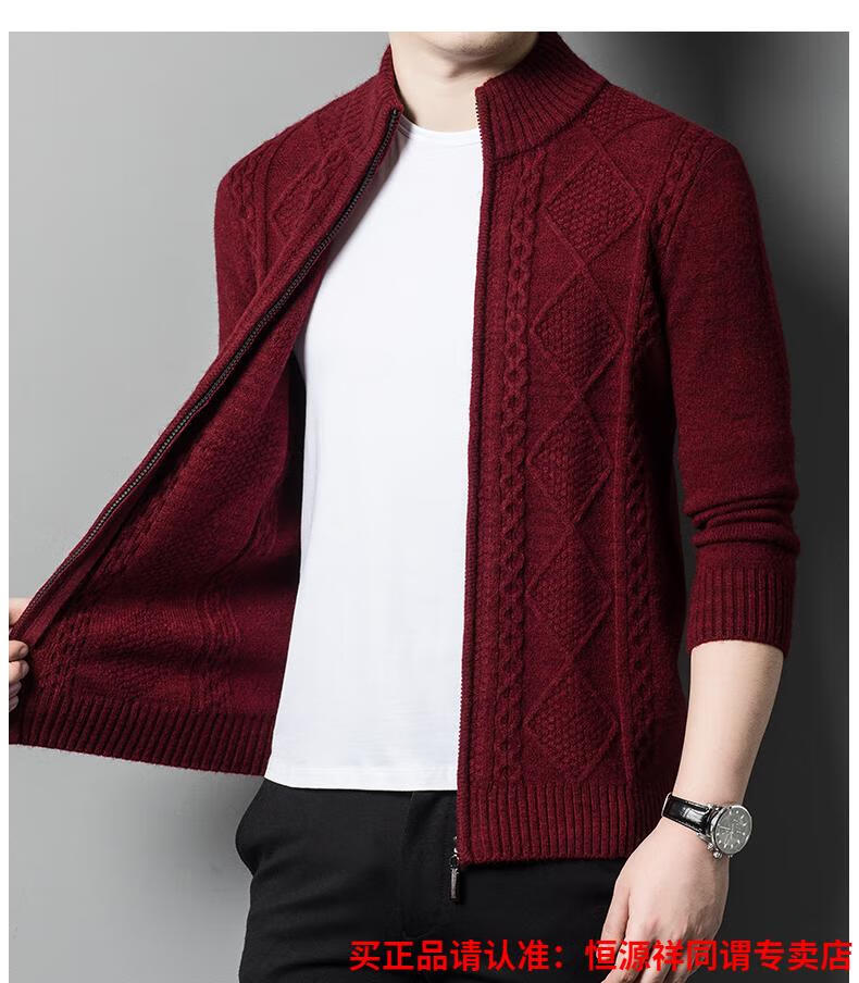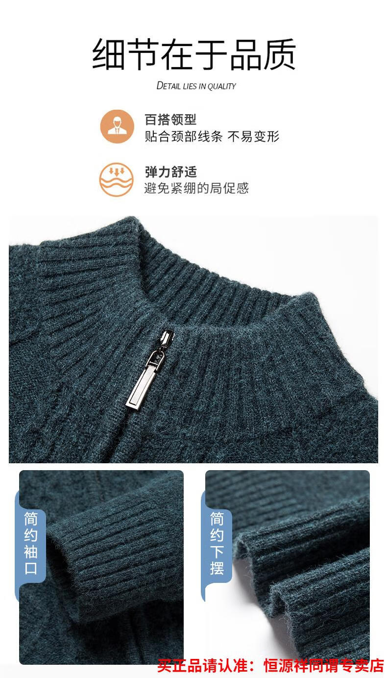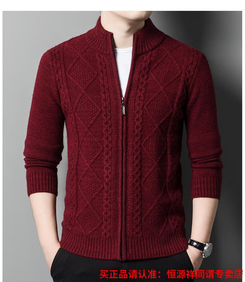 Hengyuanxiang wool sweater for men in autumn and winter new thickened knitted cardigan coat sweater zipper large size wool sweater for men camel M