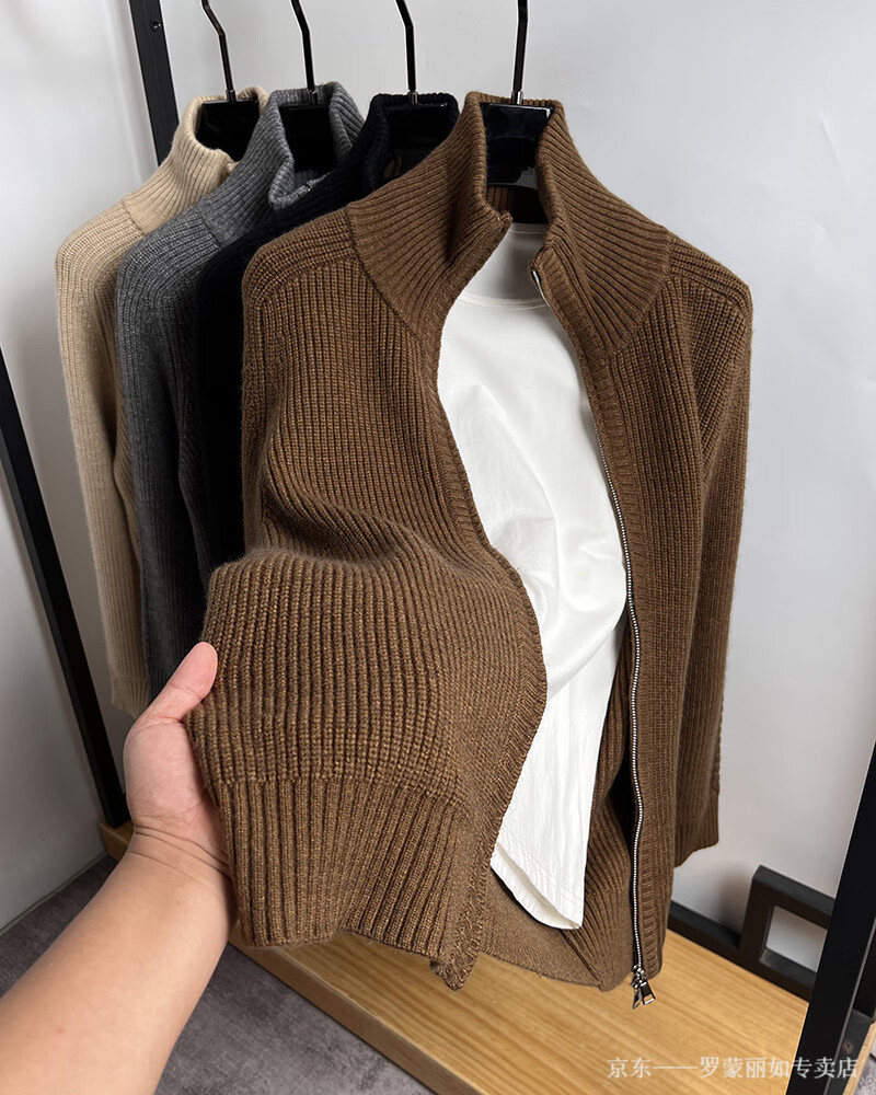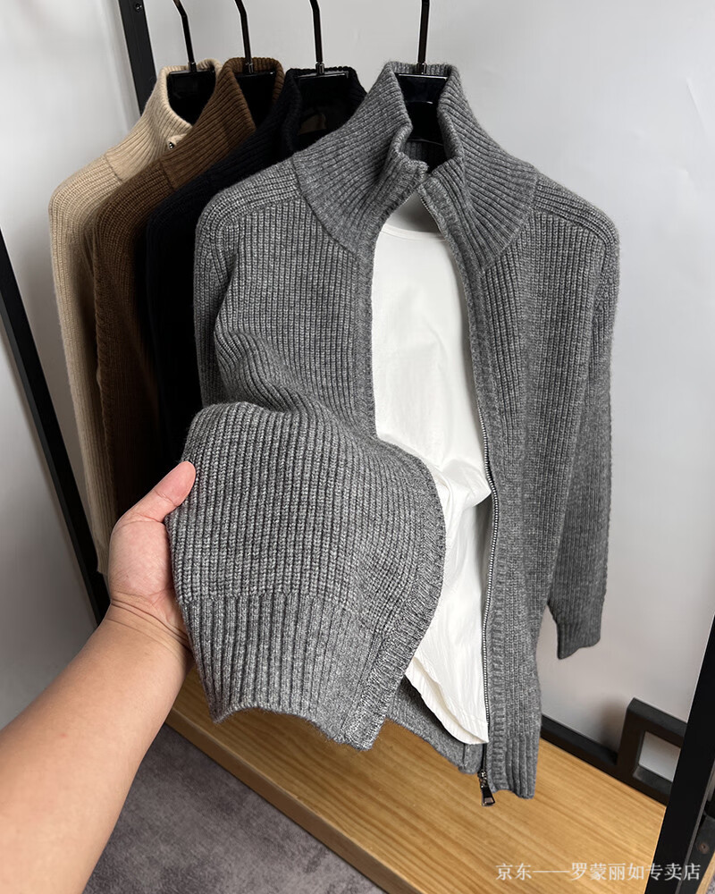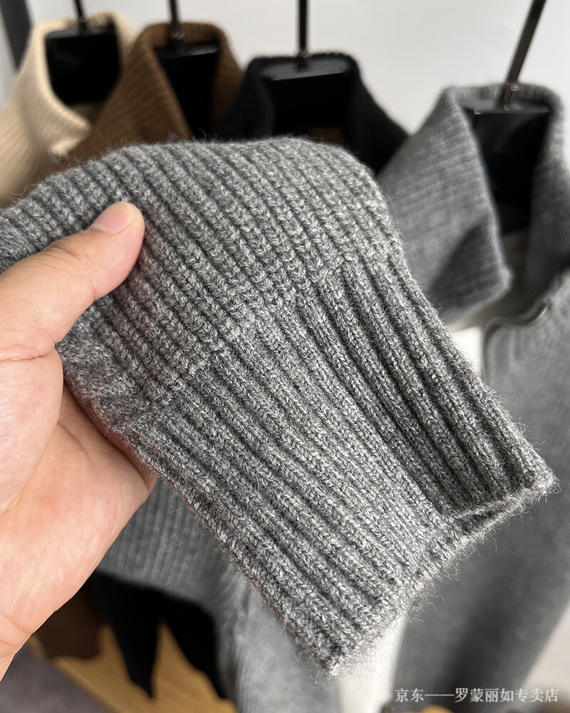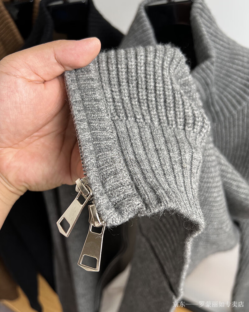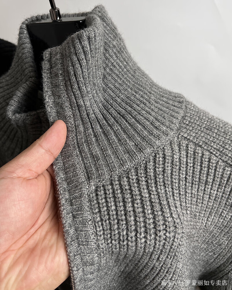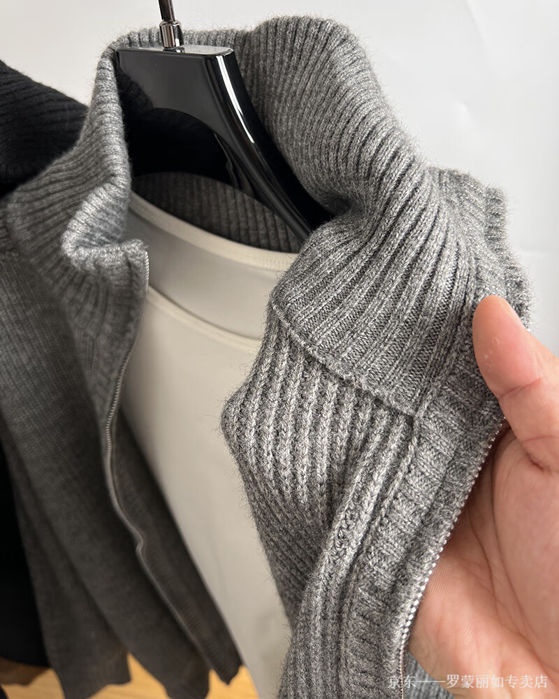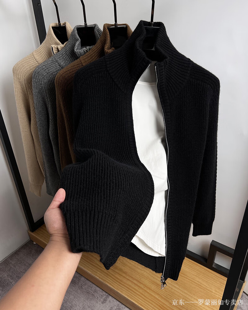 ROMON double zipper turtleneck cardigan men's sweater autumn and winter thick sweater jacket men's solid color thick sweater men's black XL 175