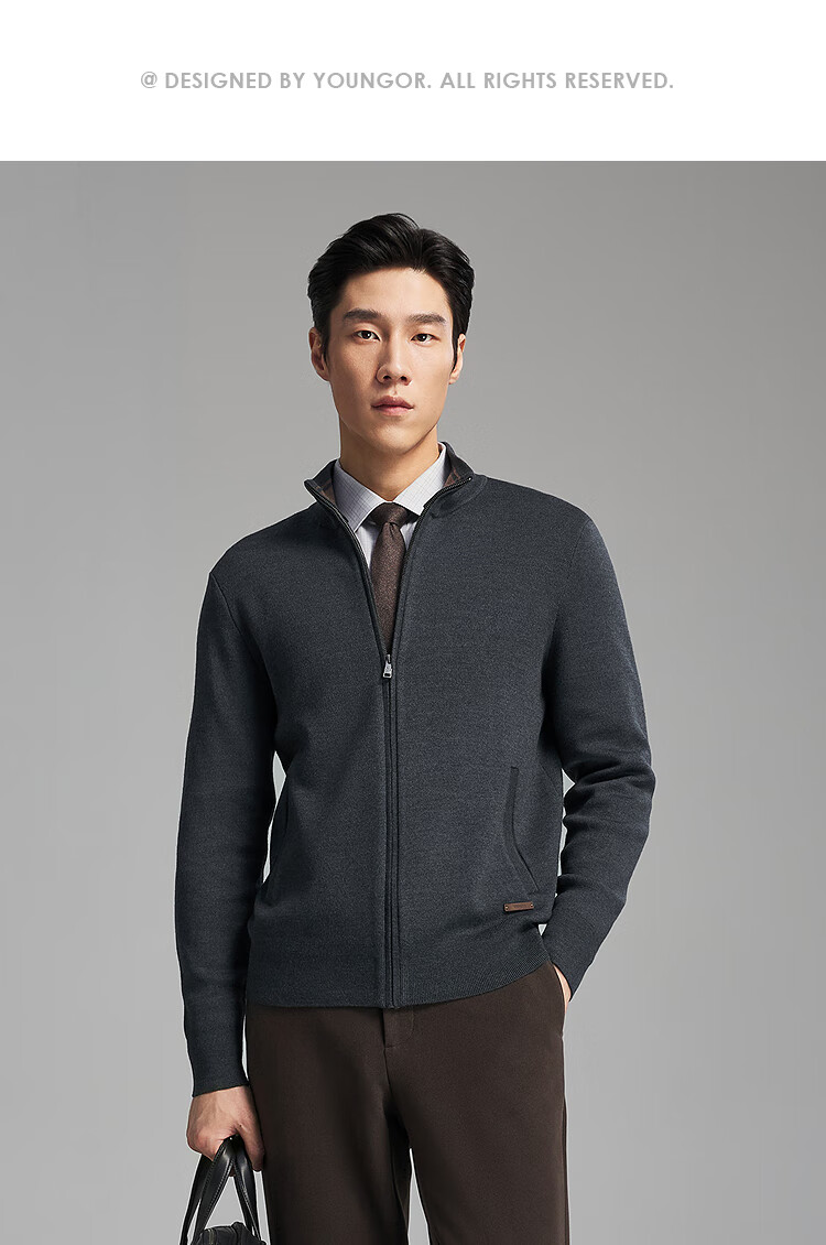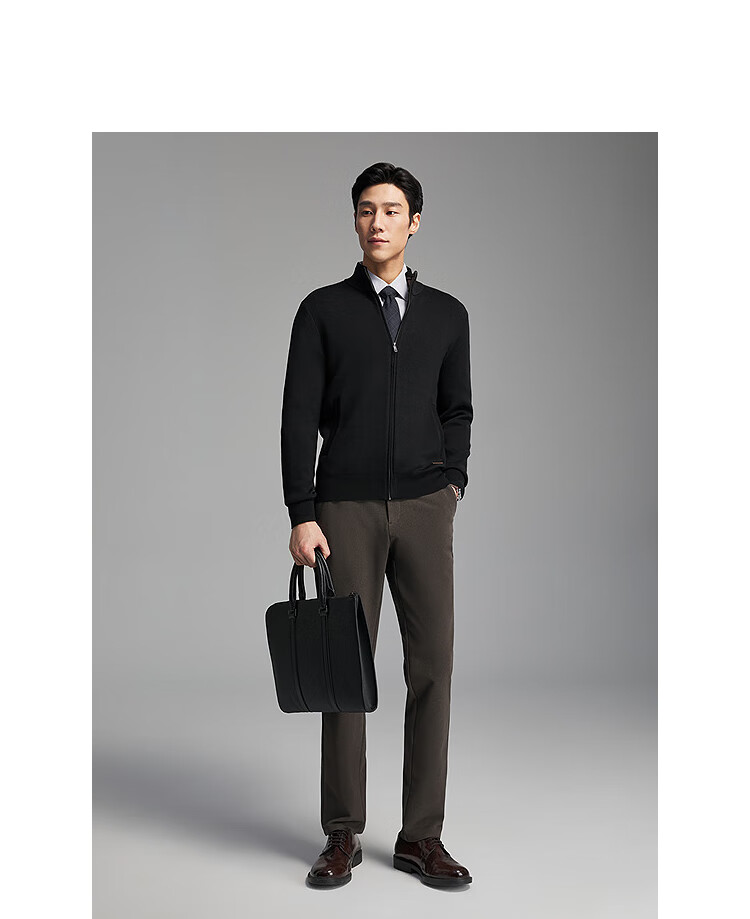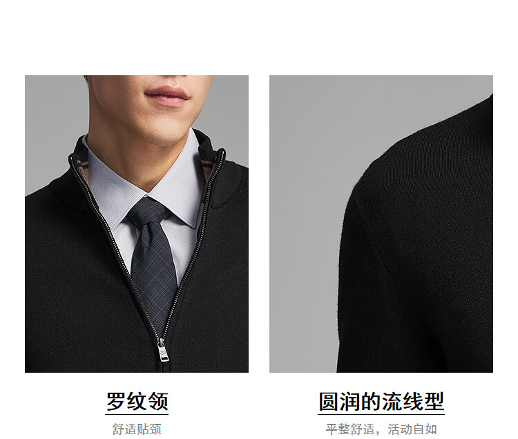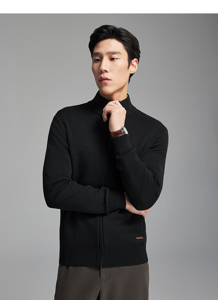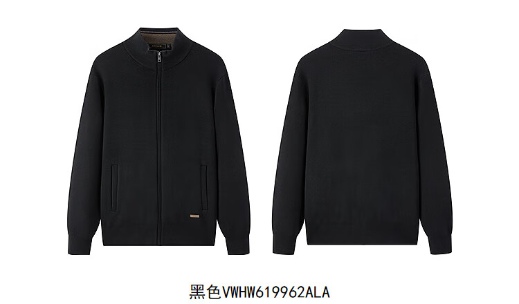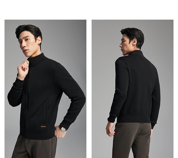 Youngor Sweater Men's Wool Blended Stand Collar Sweater Jacket Cardigan Suede Full Warm Comfort 2025 New Arrival Style Black VWHW619962ALA XL 110cm (Recommended 165-180Jin Jin equals 0.5kg)