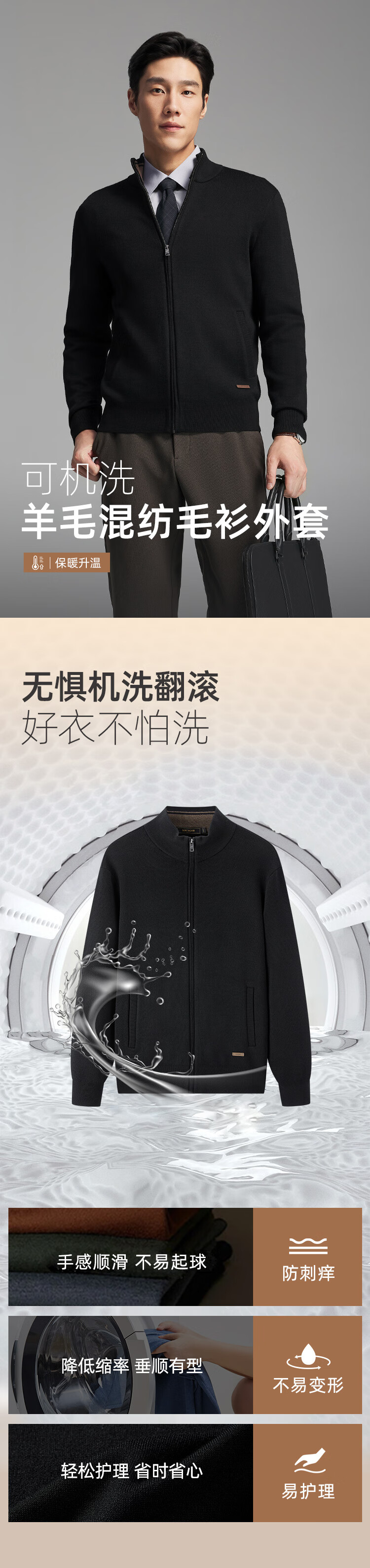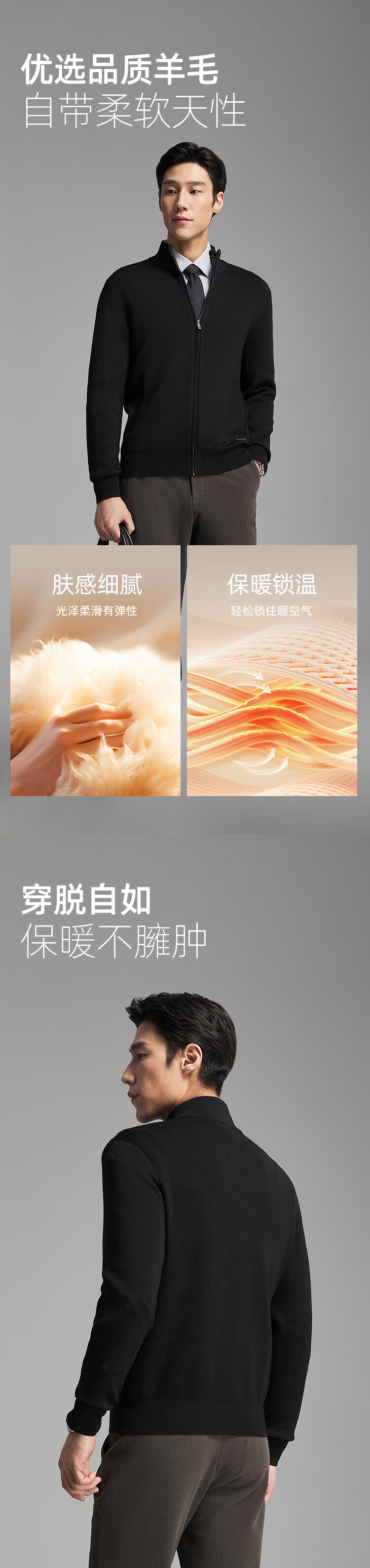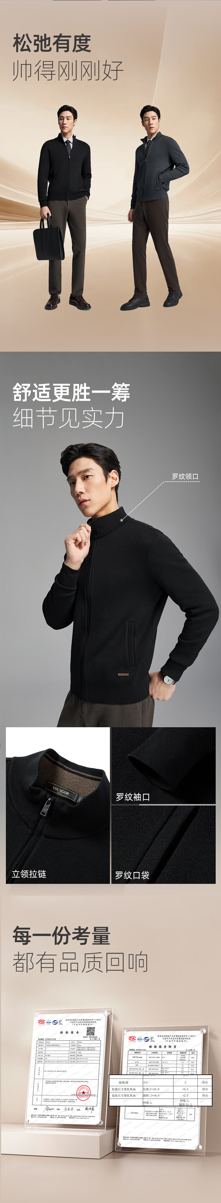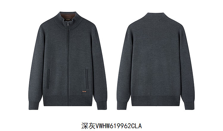 Youngor Sweater Men's Wool Blended Stand Collar Sweater Jacket Cardigan Suede Full Warm Comfort 2025 New Arrival Style Black VWHW619962ALA XL 110cm (Recommended 165-180Jin Jin equals 0.5kg)