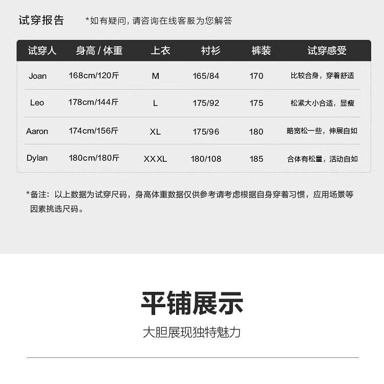 China (cm) 160-165/84-86 165-170 / 88-90 167-172 / 92-96 168-173 / 98-102 170-176 / 106-110