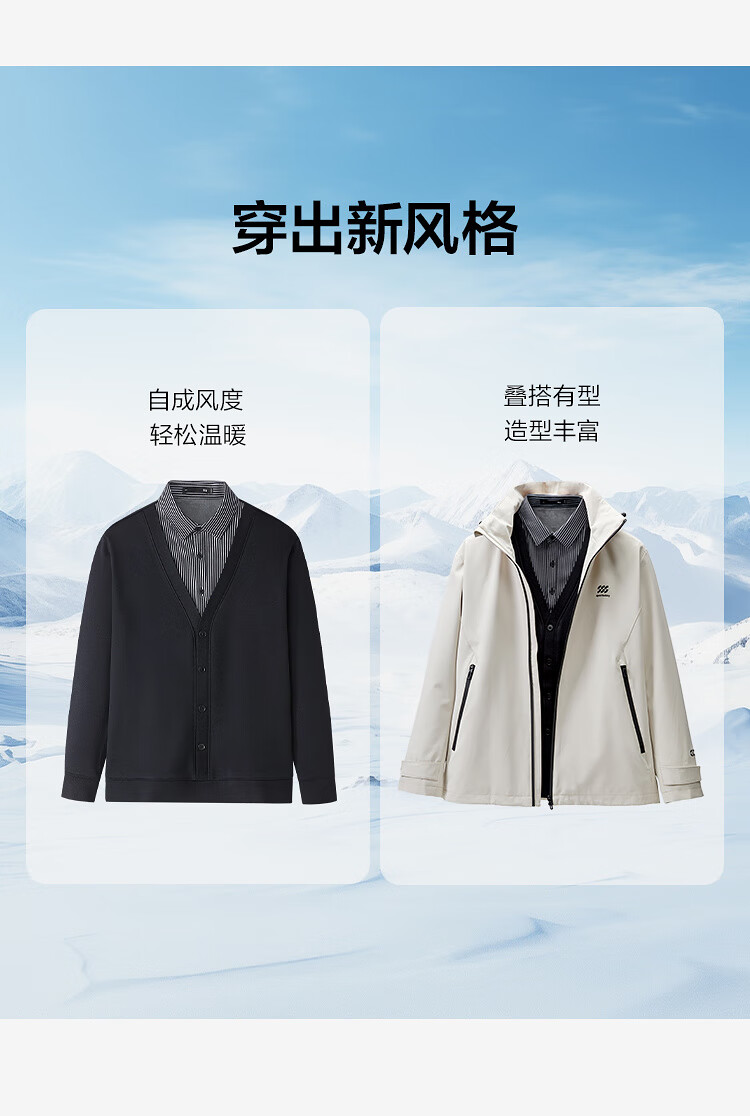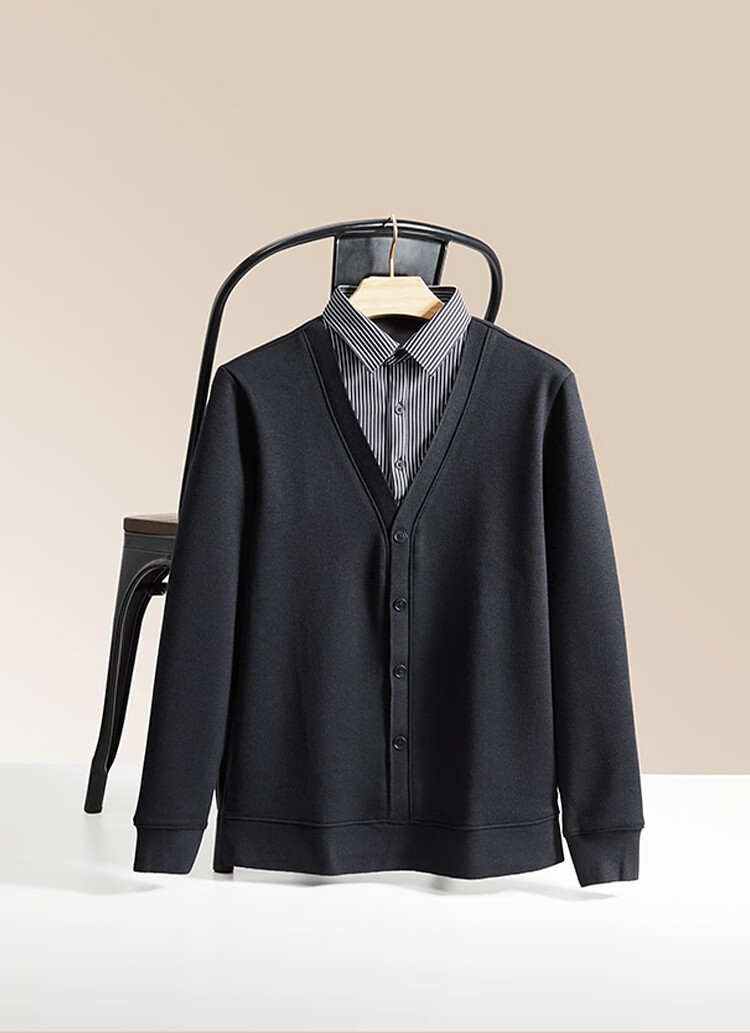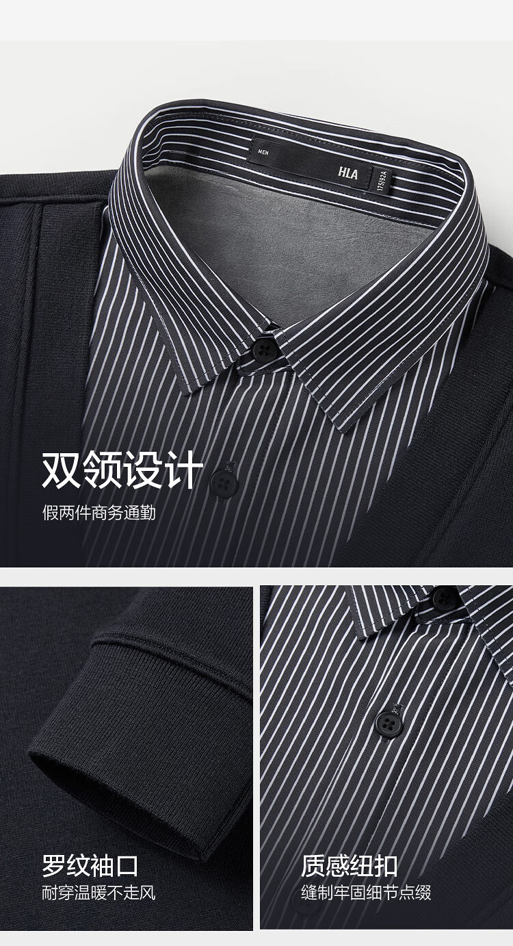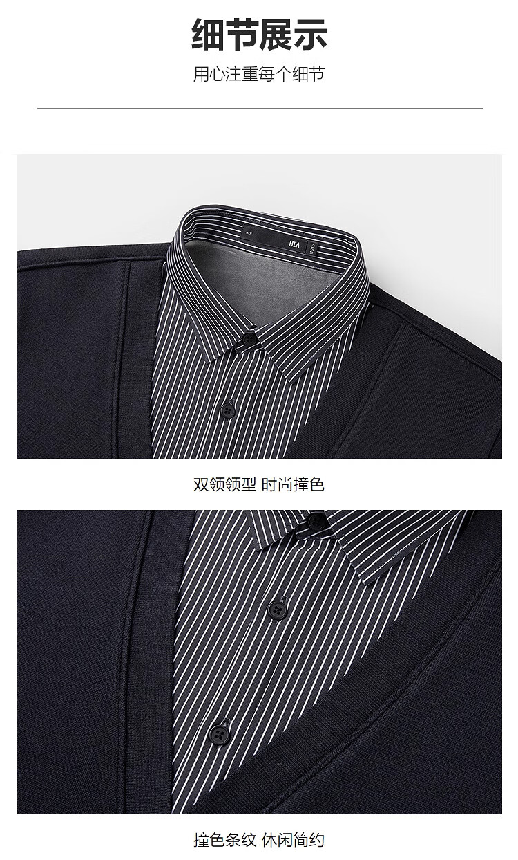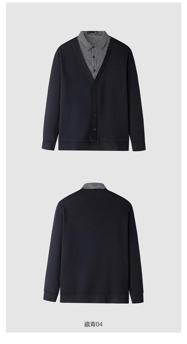 Heilan House Knitted Sweater Winter 25 New Light Business Light Heat Storage Plus Velvet Thickened Fake Two-Piece Sweater for Men Navy 04