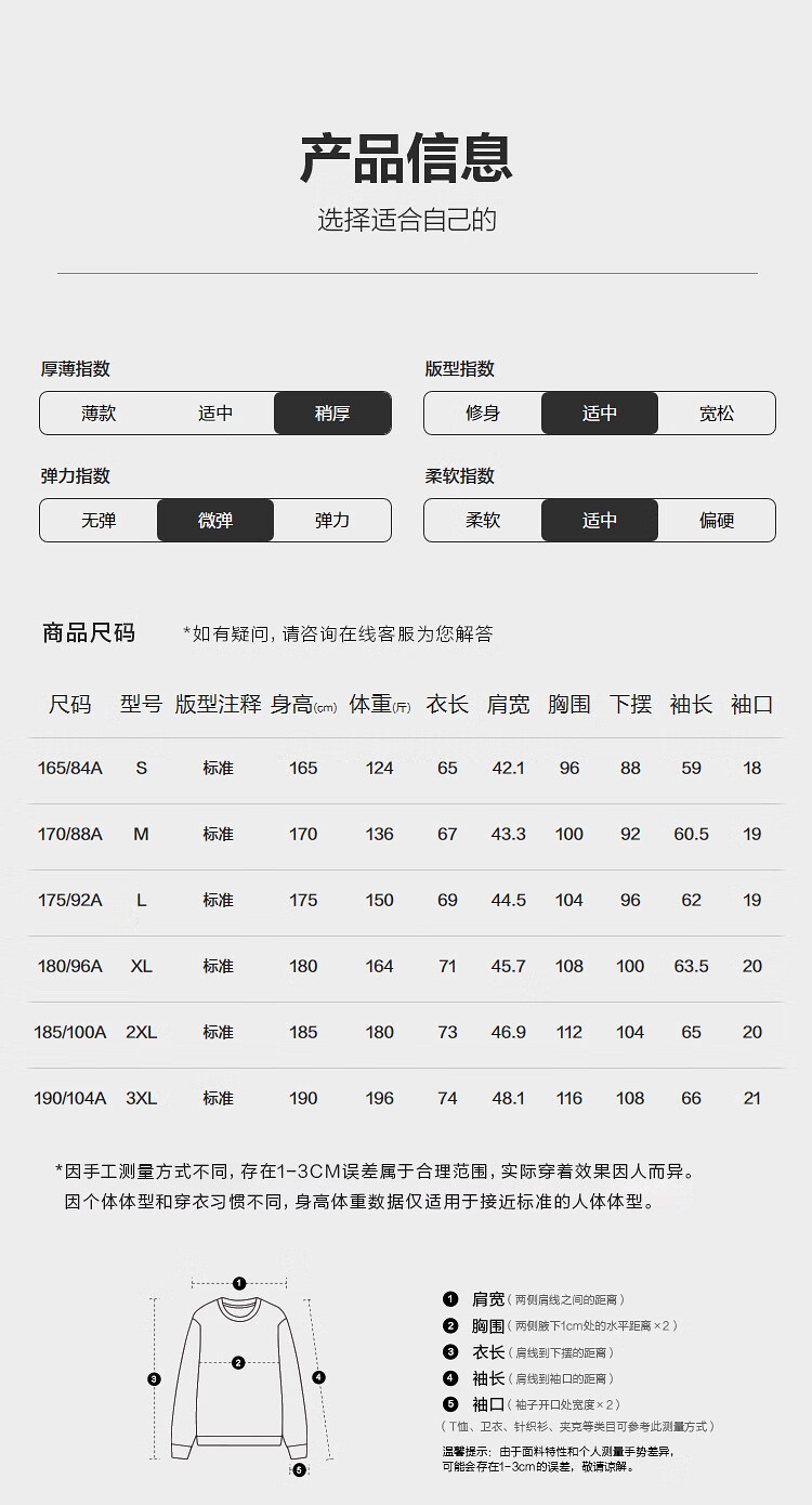 China (cm) 165 / 88-90 170 / 96-98 175 / 108-110 180 / 118-122 185 / 126-130