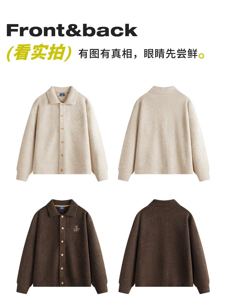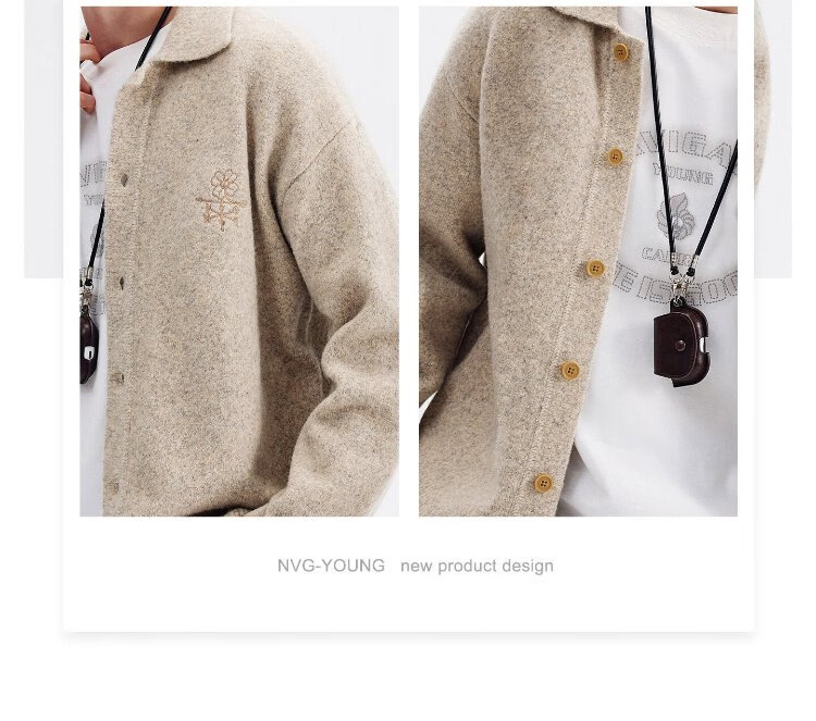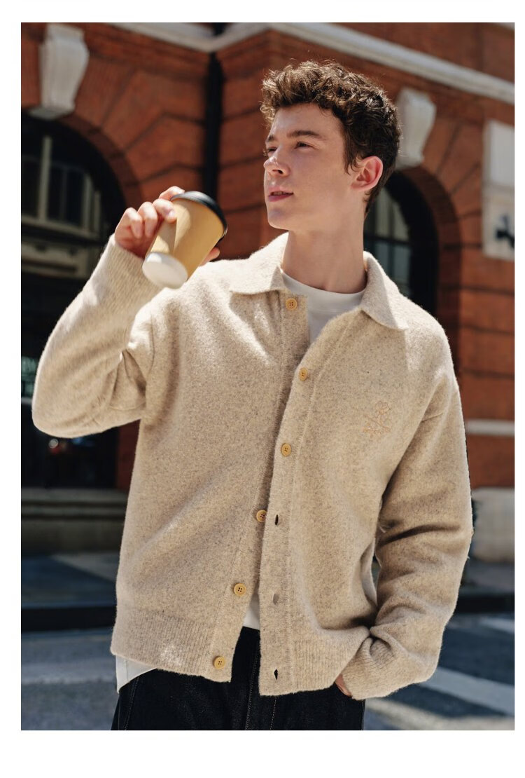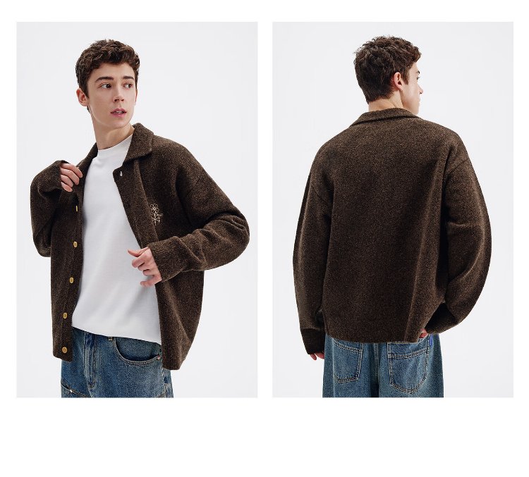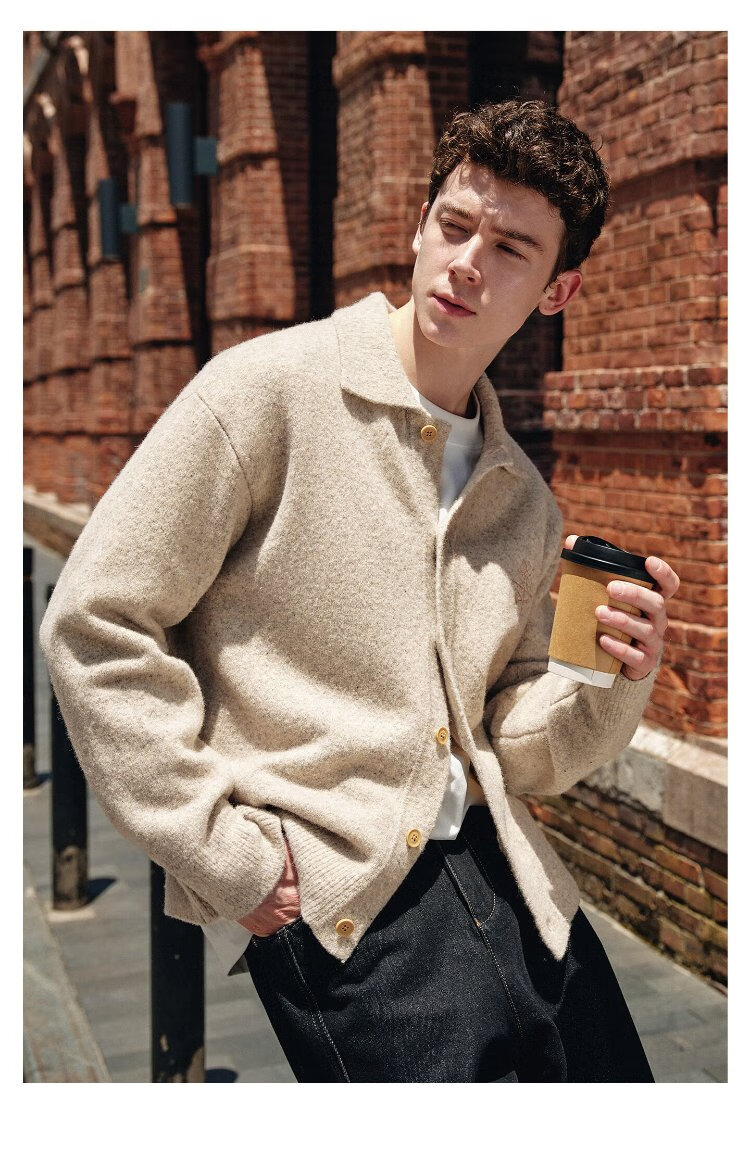 Navigare Italian small sailing boat slightly dropped shoulder cardigan men's knitted cardigan comfortable skin-friendly sweater jacket casual top olive green coffee M
