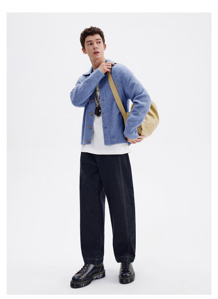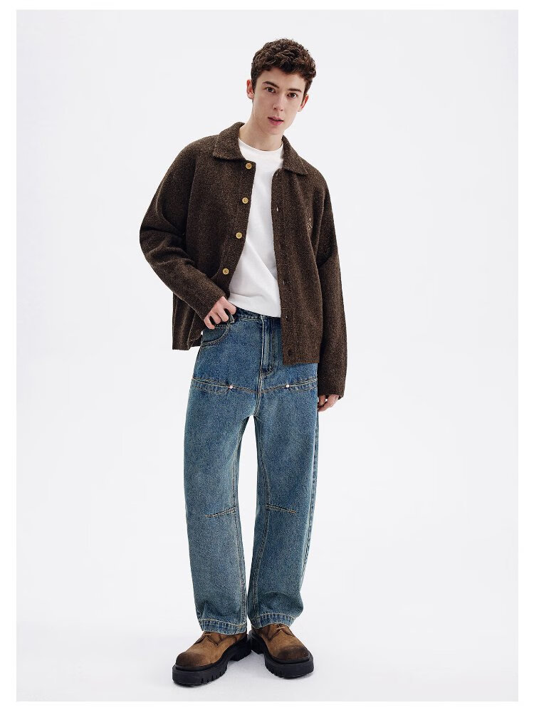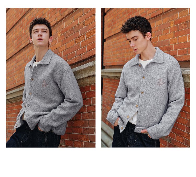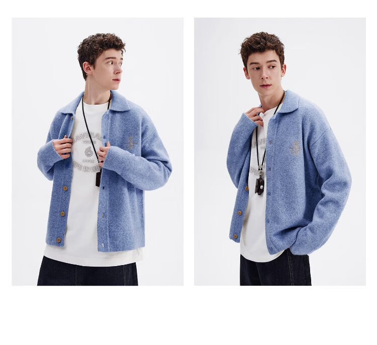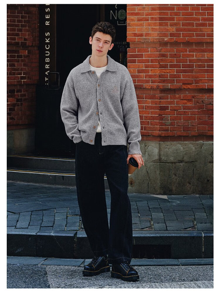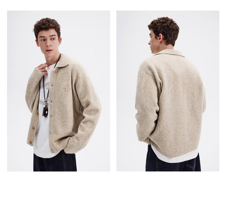 Navigare Italian small sailing boat slightly dropped shoulder cardigan men's knitted cardigan comfortable skin-friendly sweater jacket casual top olive green coffee M