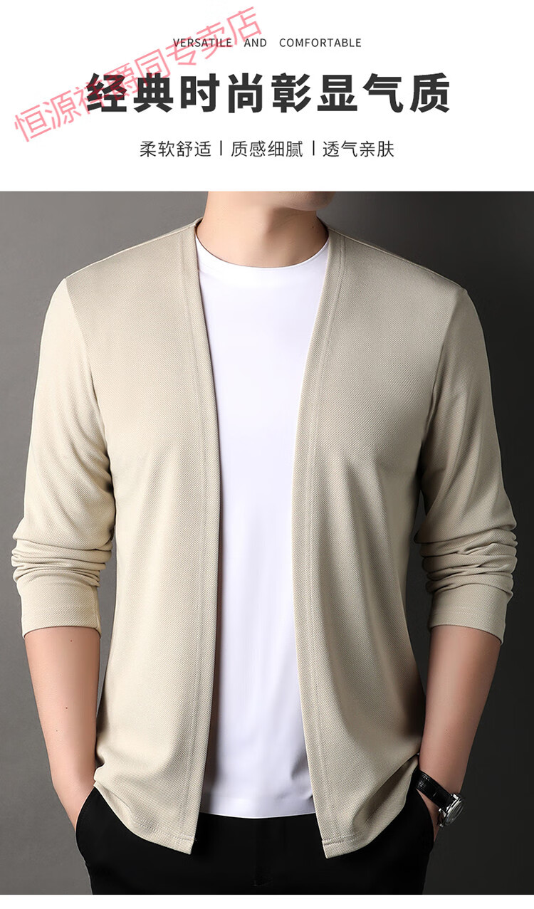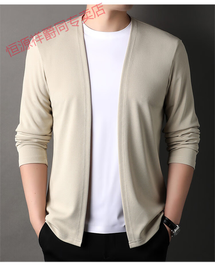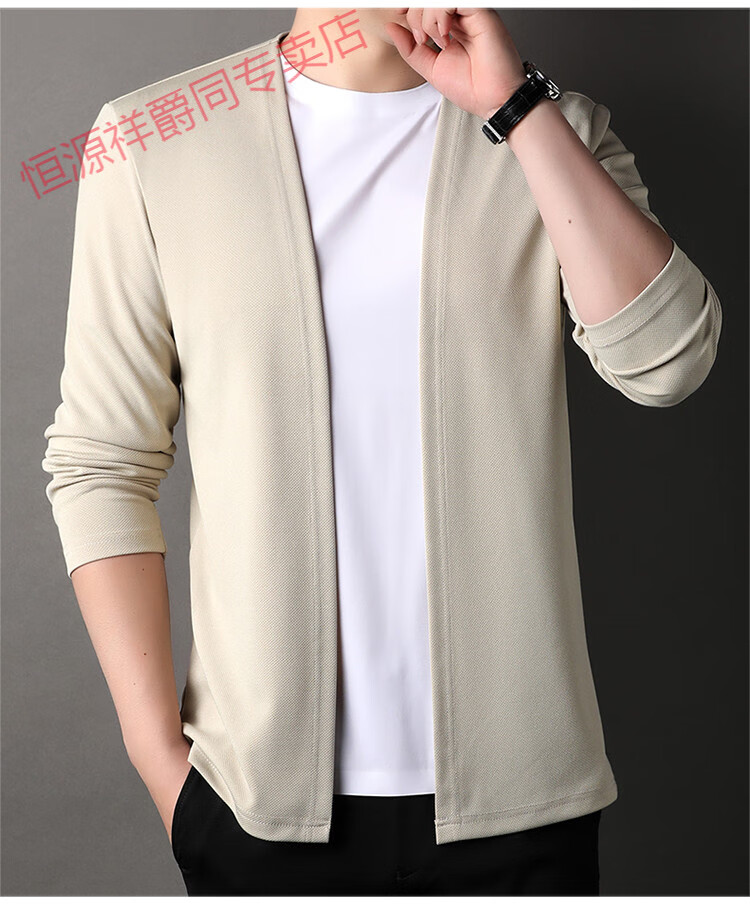 Hengyuanxiang Autumn New Knitted Wool Cardigan Men's Solid Color Wool Sweater Small Jacket Trendy Sweater Thin Top 7686 Apricot L Recommended 120-135 Jin Jin equals 0.5 kg
