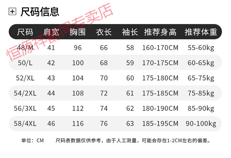 China (cm) 165 / 88-90 170 / 96-98 175 / 108-110 180 / 118-122 185 / 126-130