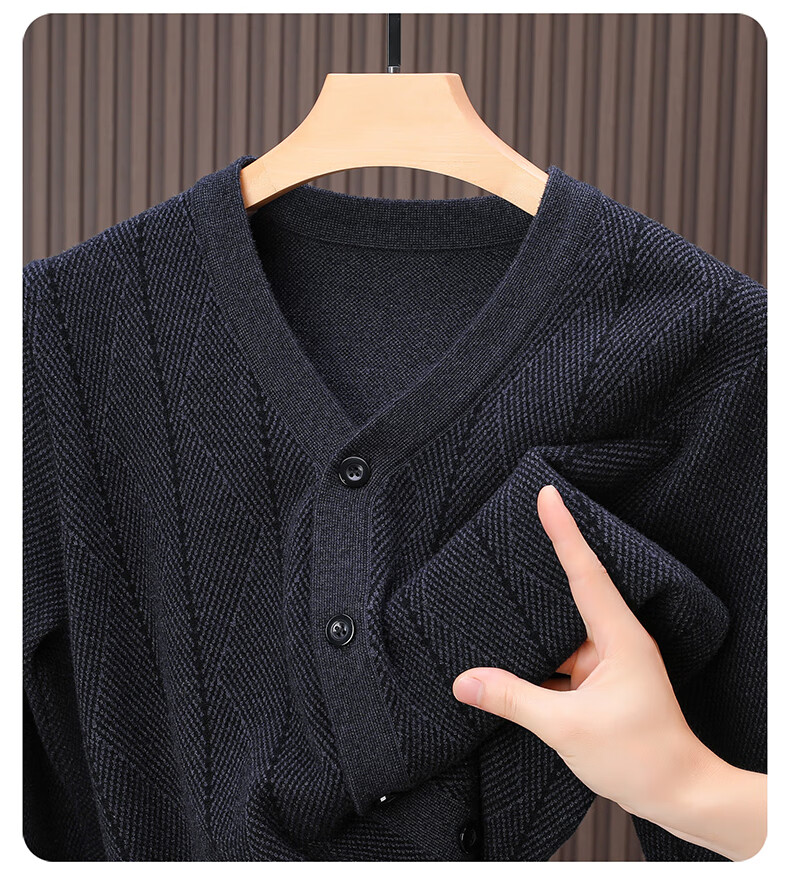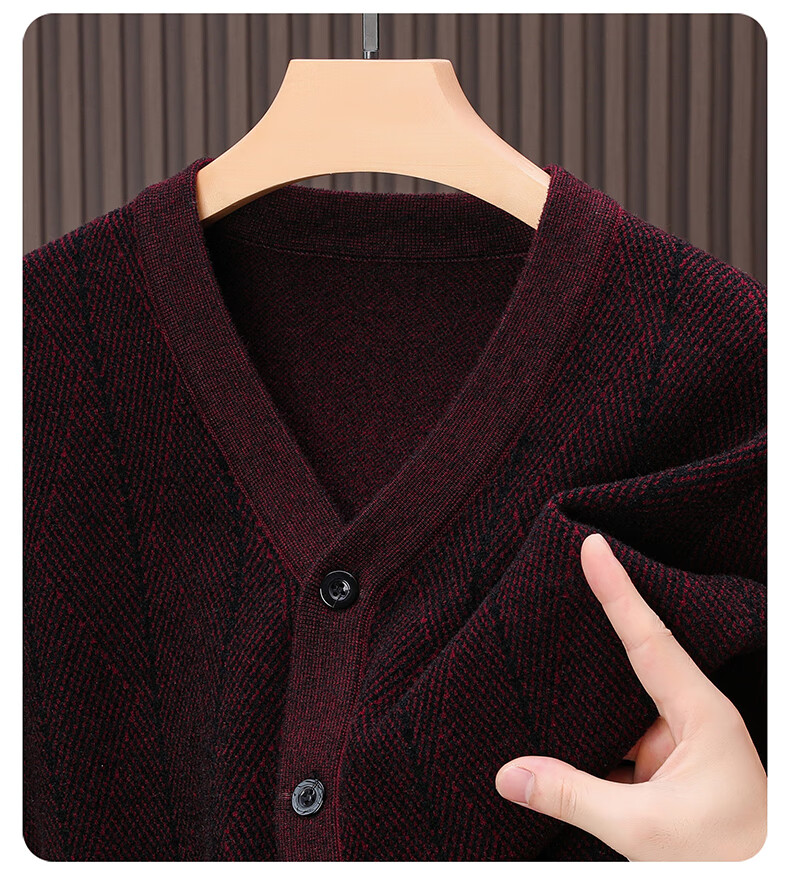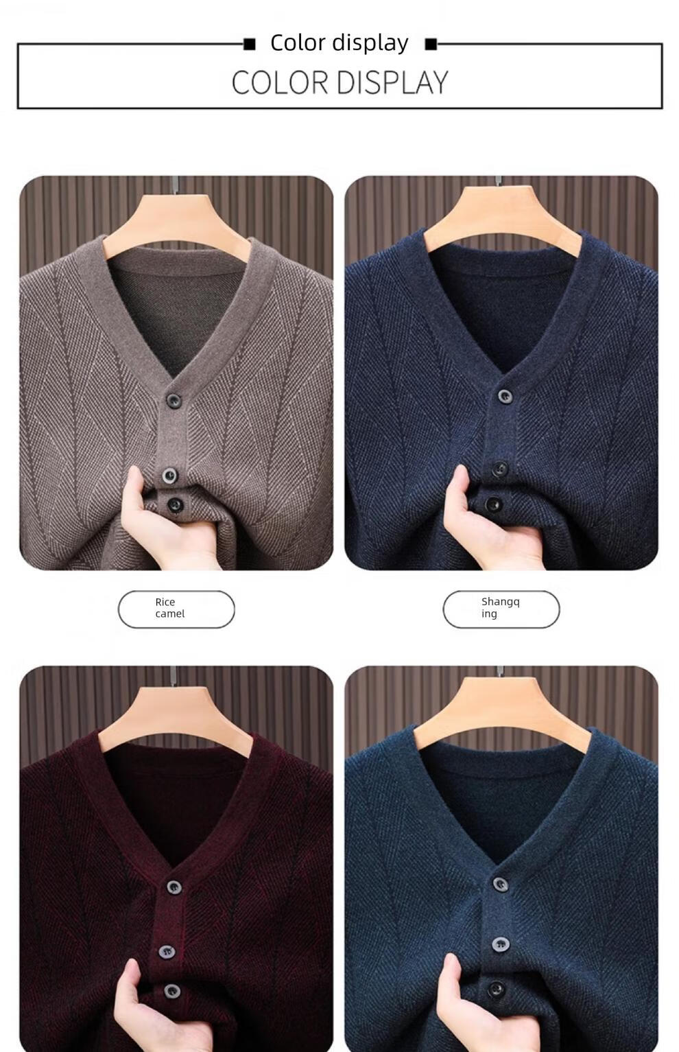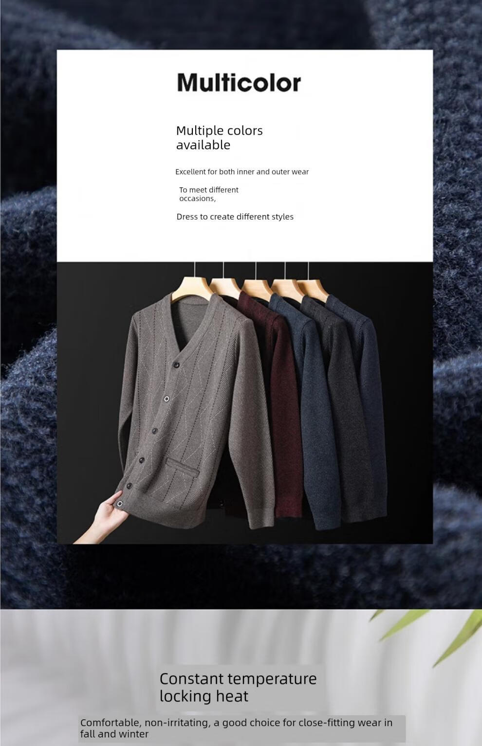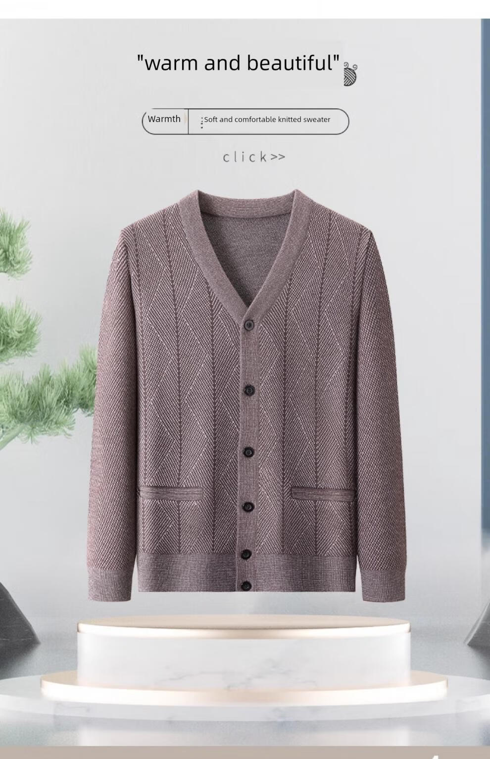 Hengyuanxiang Pure Wool Knitted Cardigan Men's 2025 Autumn and Winter New Thickened Middle-aged and Elderly Clothes Dad's Jacket 6888 Meter XL 180/96A150-165Jin Jin is equal to 0.5 kg