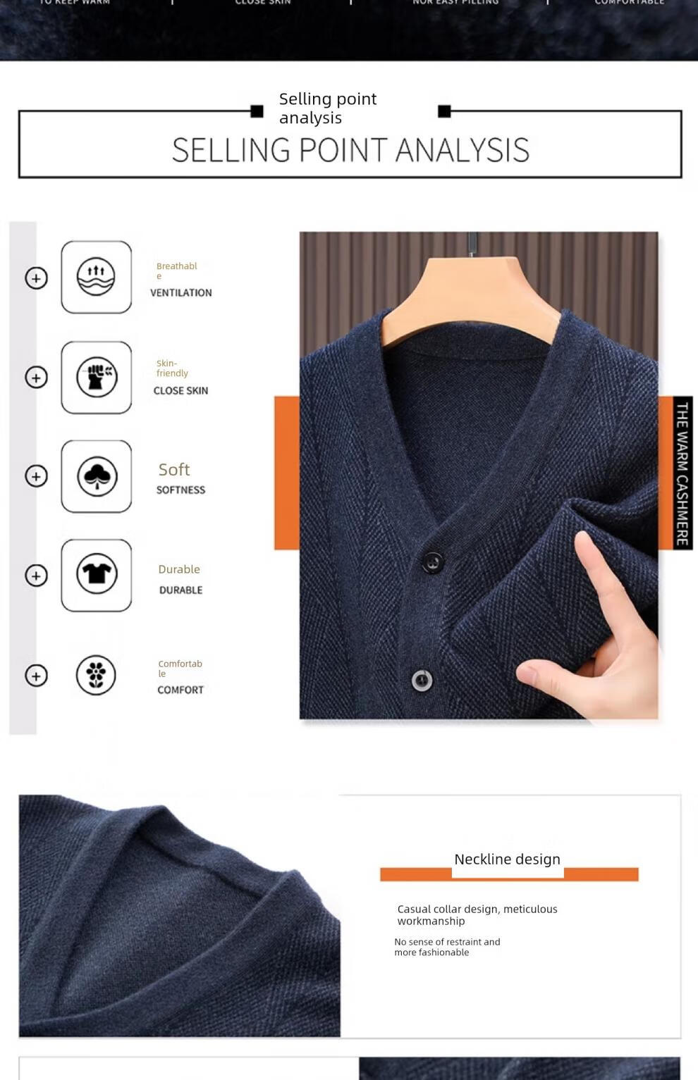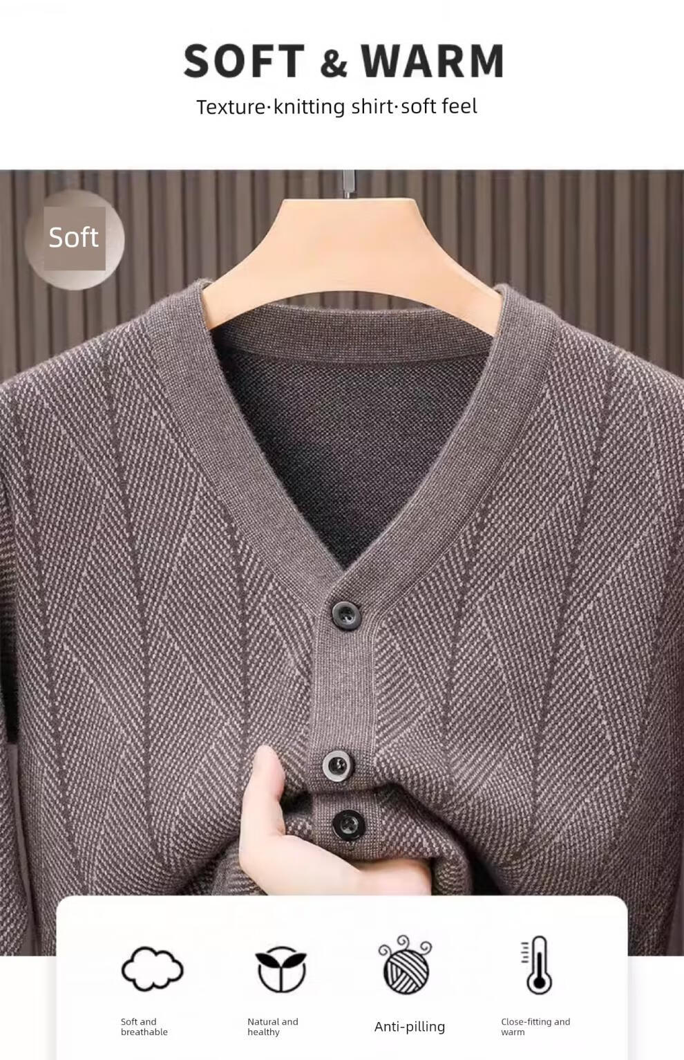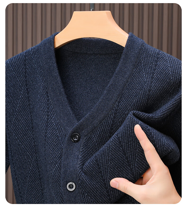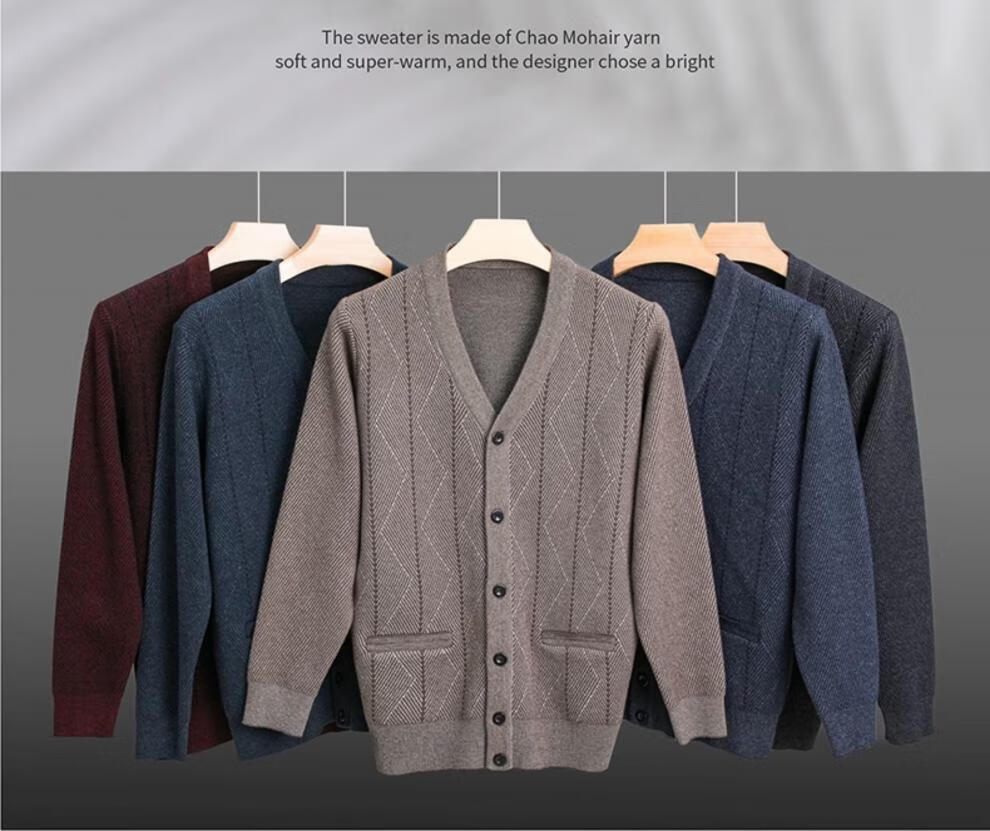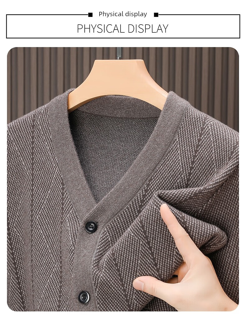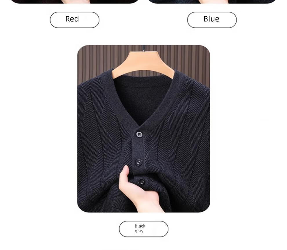 Hengyuanxiang Pure Wool Knitted Cardigan Men's 2025 Autumn and Winter New Thickened Middle-aged and Elderly Clothes Dad's Jacket 6888 Meter XL 180/96A150-165Jin Jin is equal to 0.5 kg