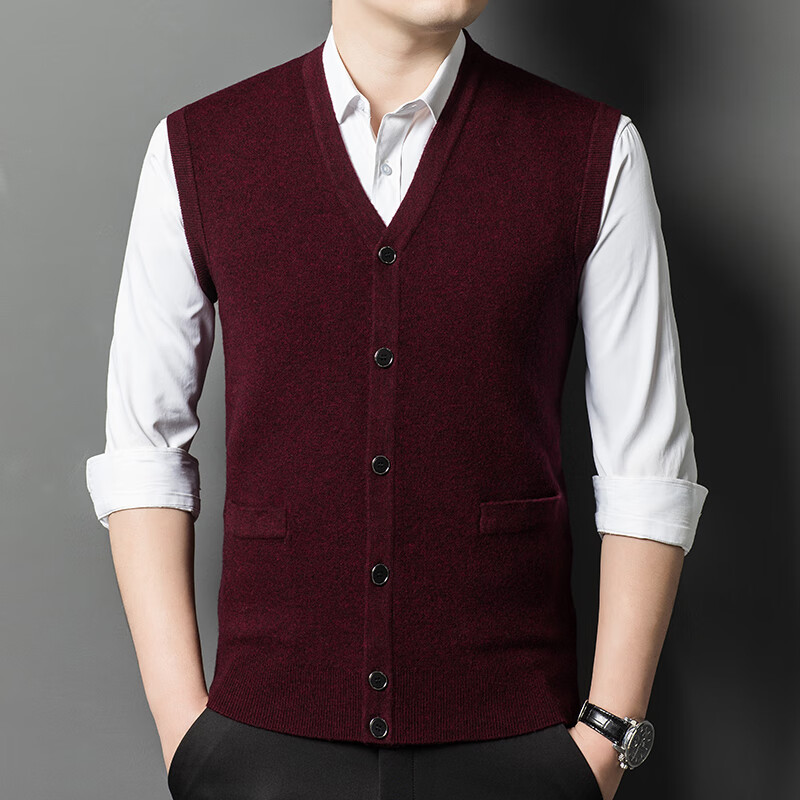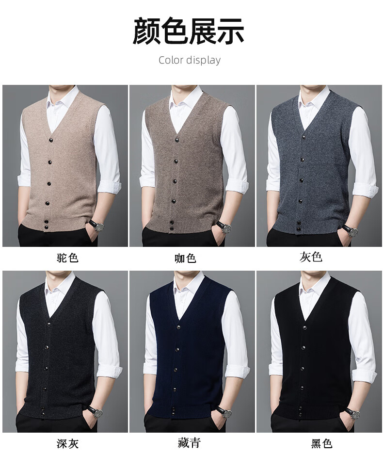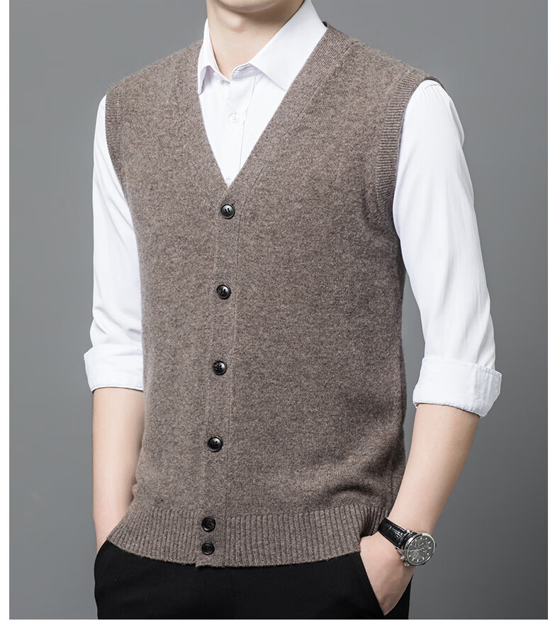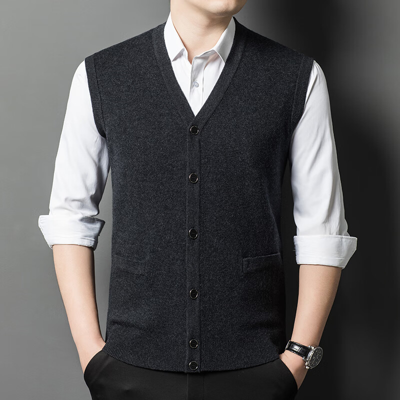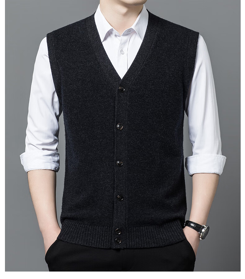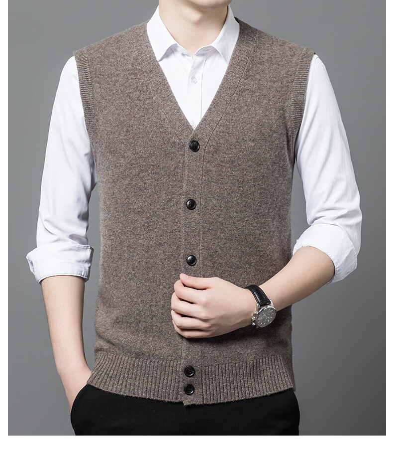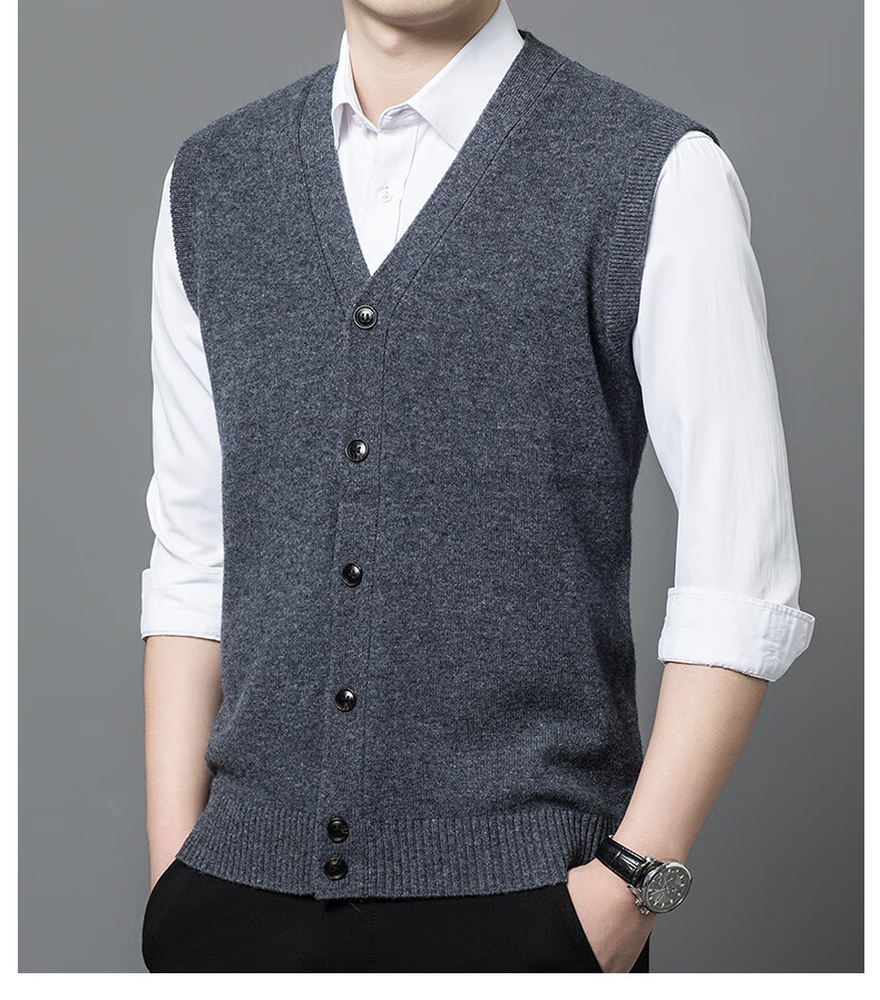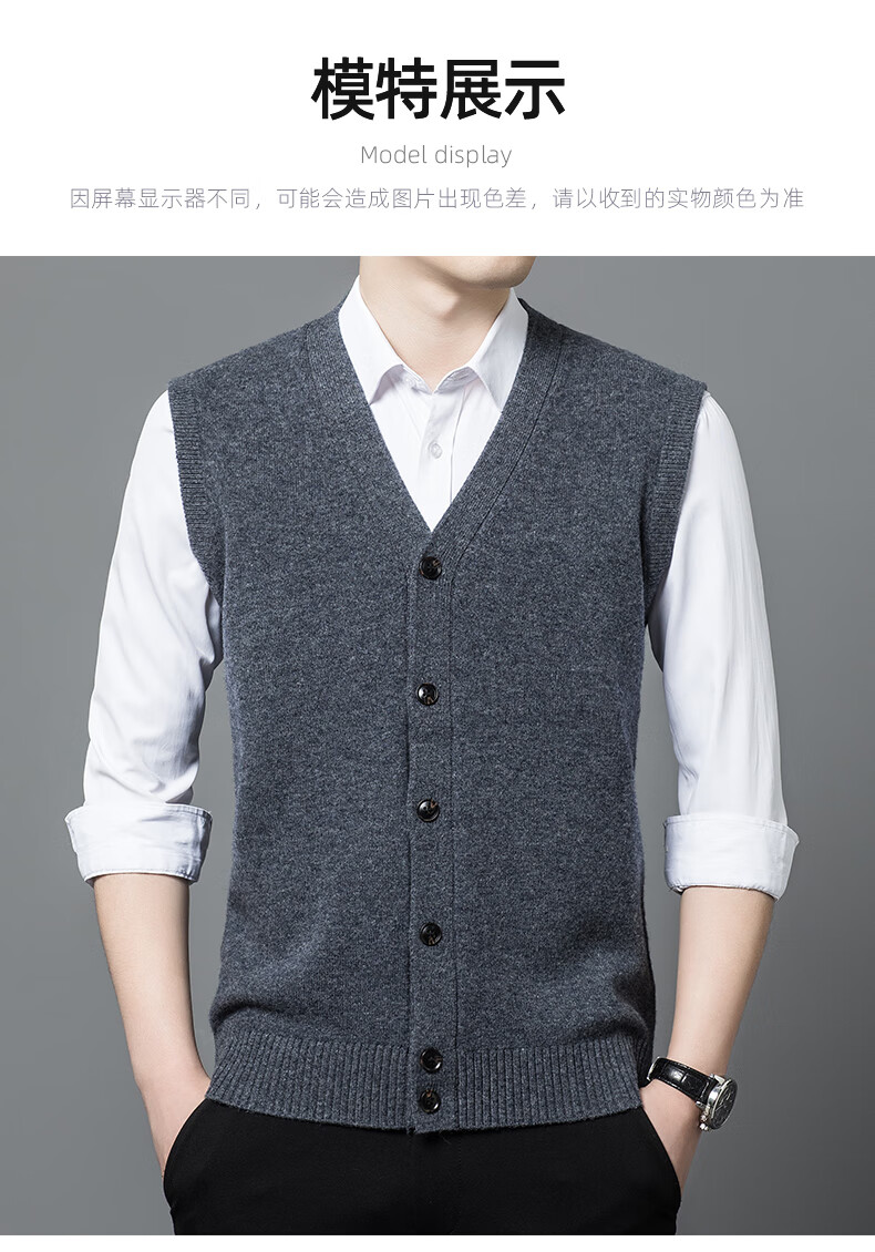 TOME BORNEK high-end 100 pure wool vest men's middle-aged and elderly dad wear sleeveless vest v-neck plush sweater vest cardigan gray XL 175-140-155Jin Jin equals 0.5 kg