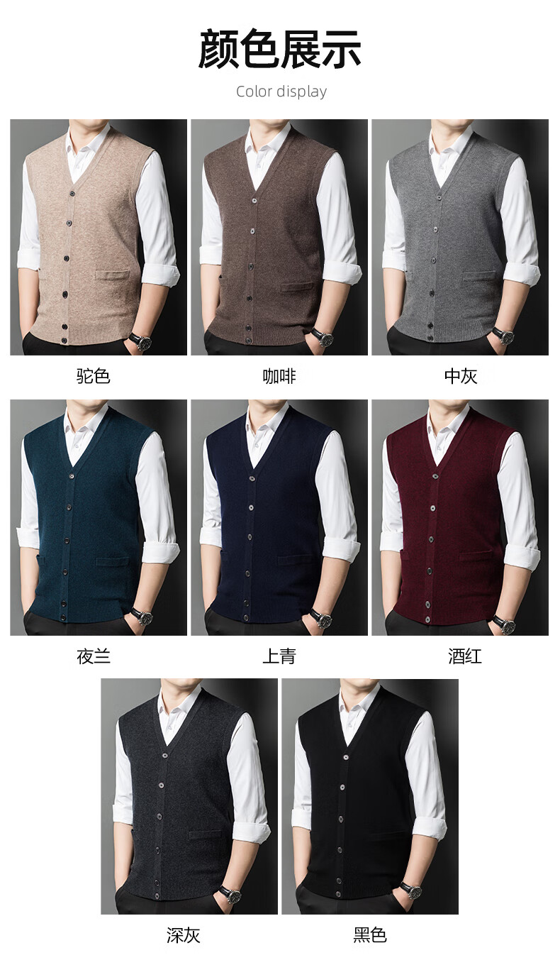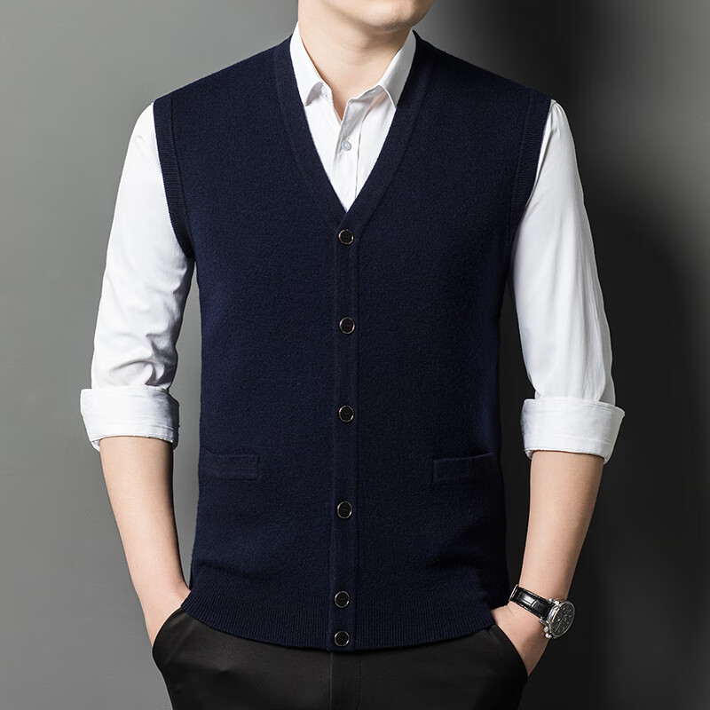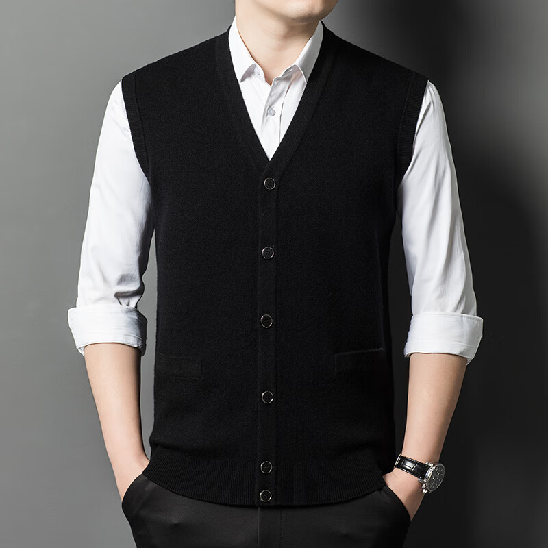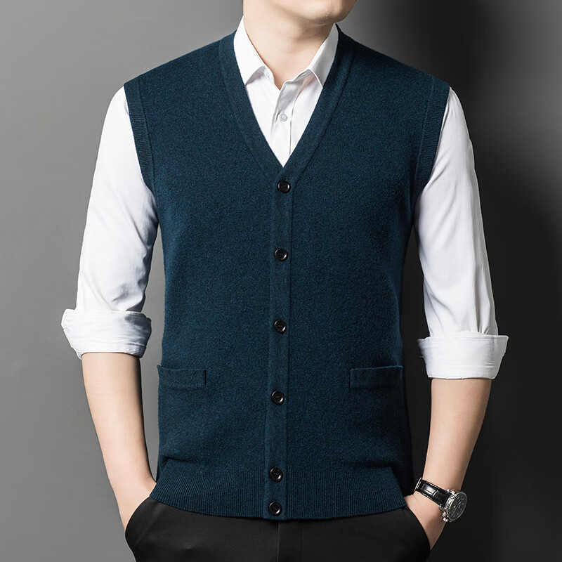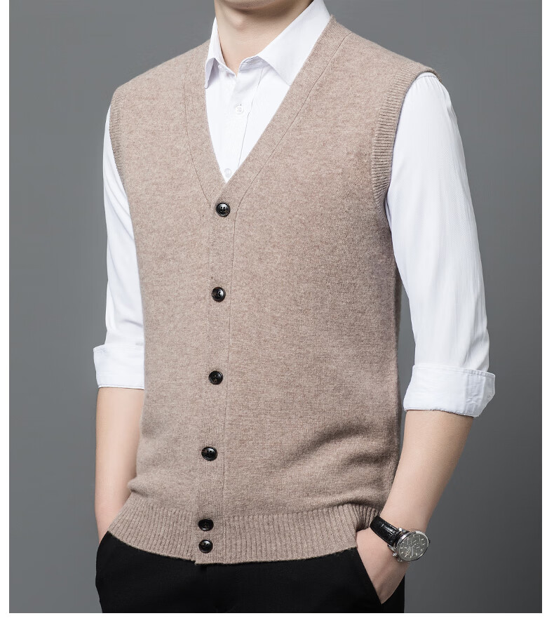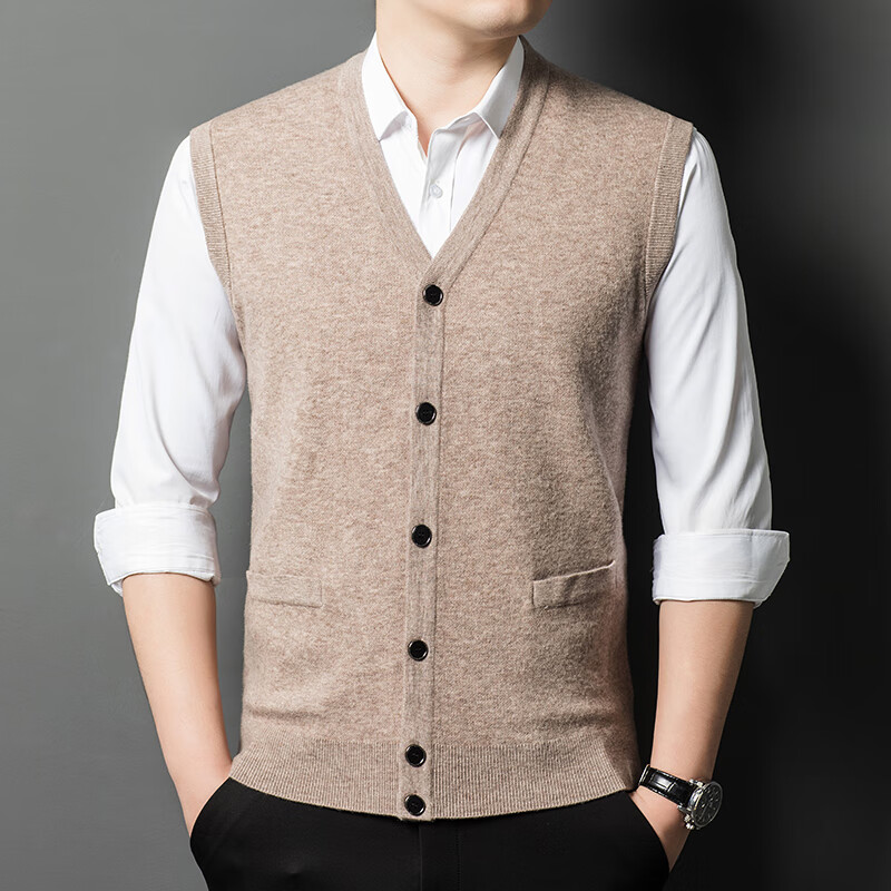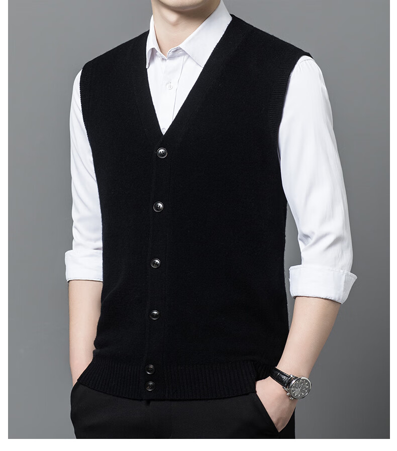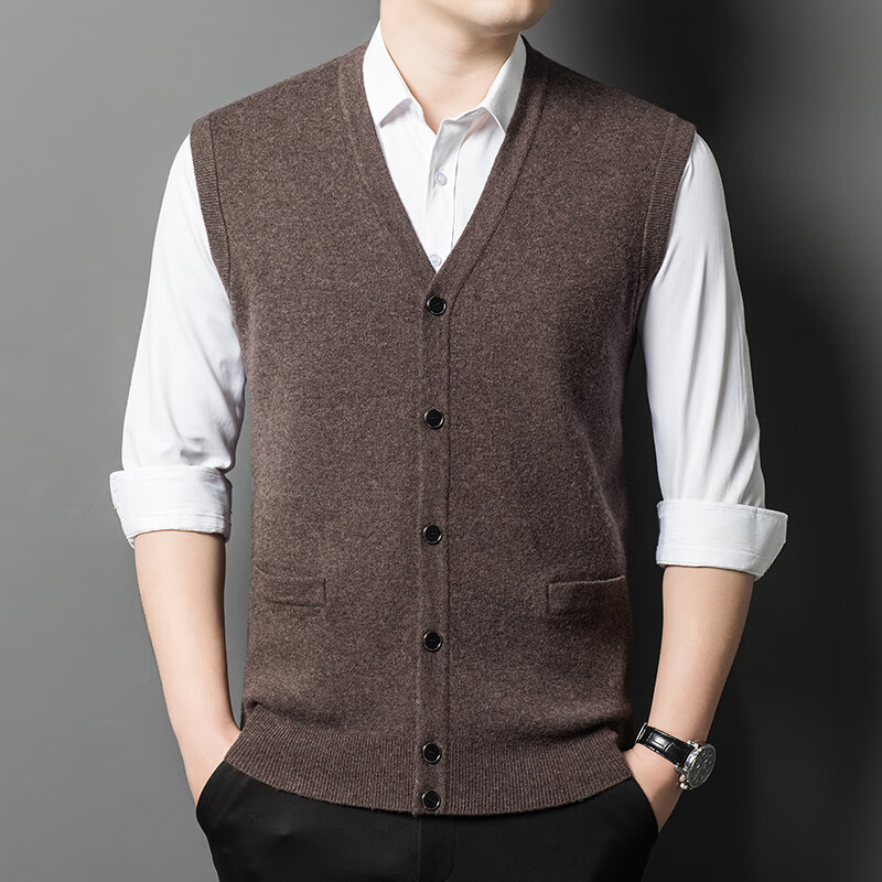 TOME BORNEK high-end 100 pure wool vest men's middle-aged and elderly dad wear sleeveless vest v-neck plush sweater vest cardigan gray XL 175-140-155Jin Jin equals 0.5 kg