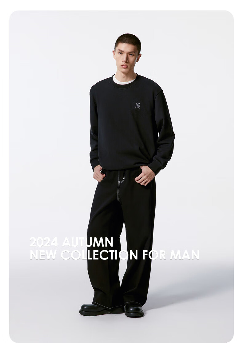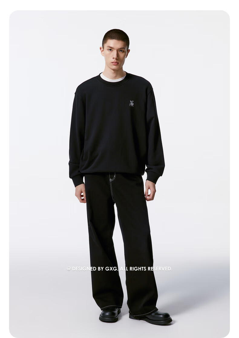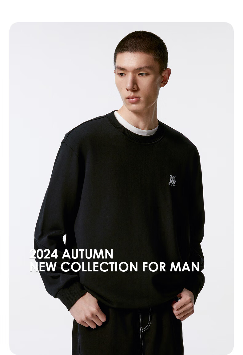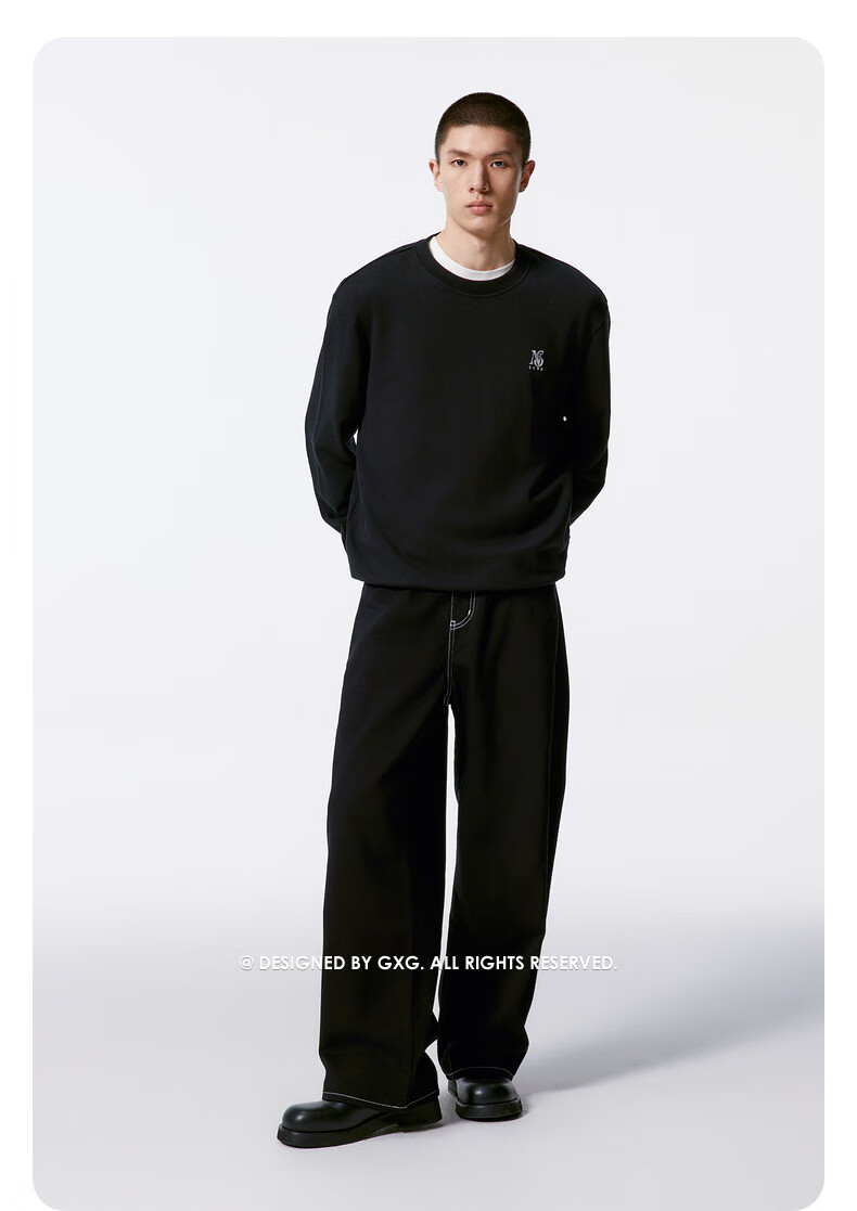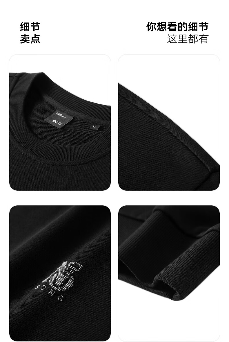 GXG men's black letter pattern round neck sweatshirt men's 24th autumn new arrival black 175/L
