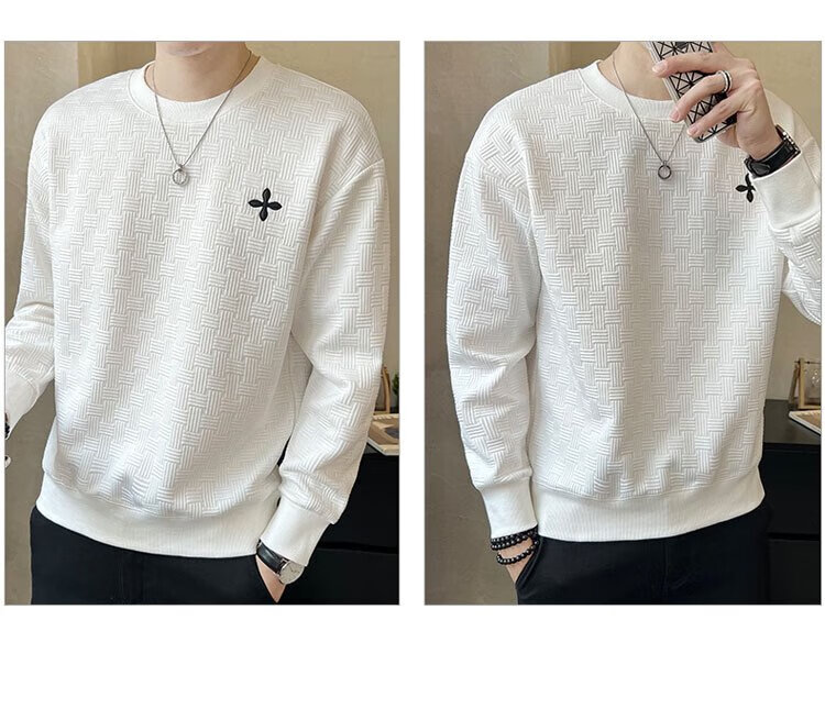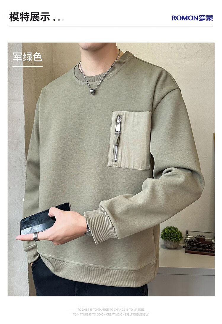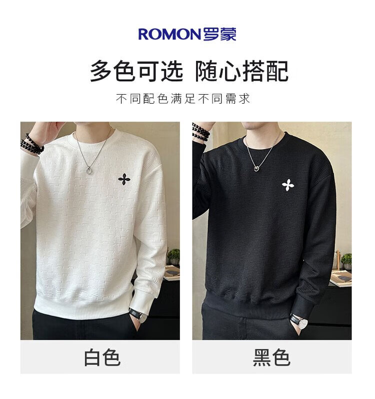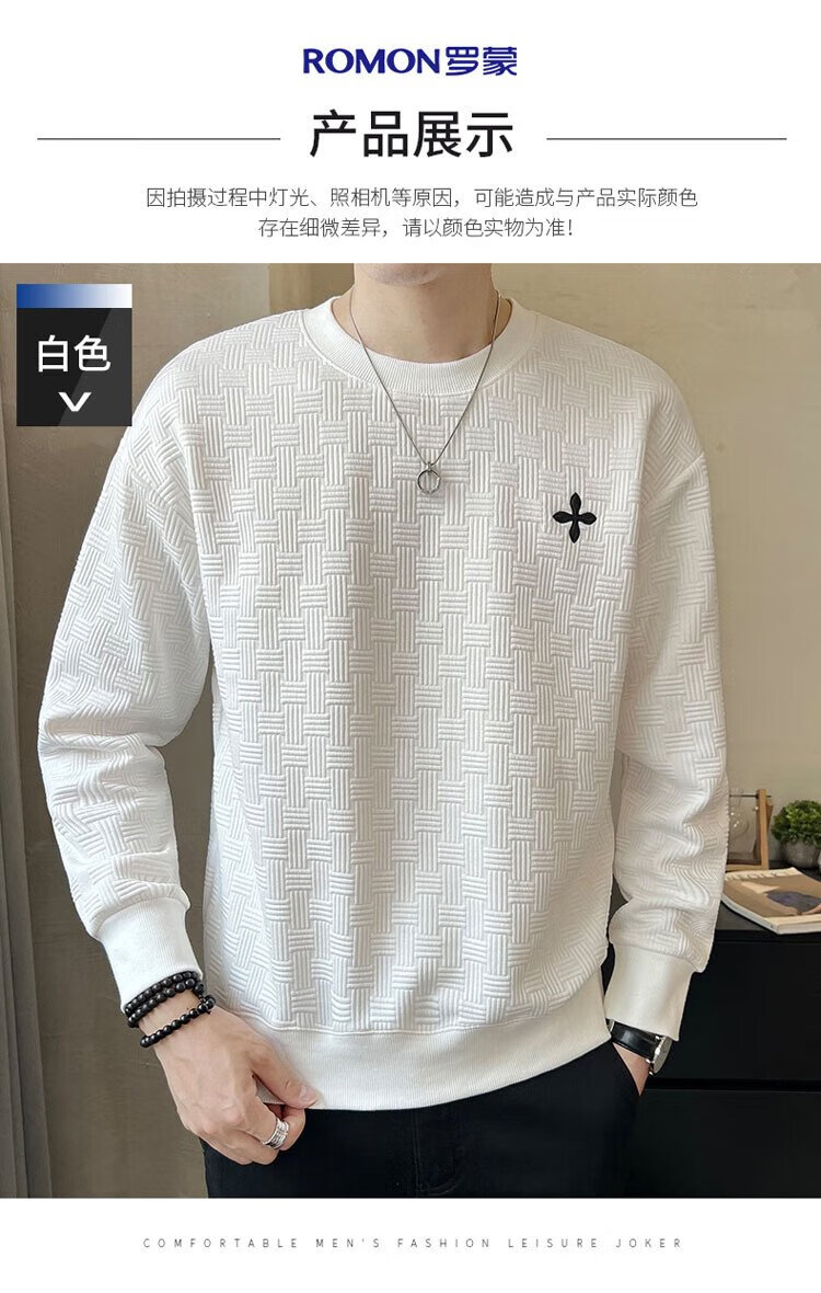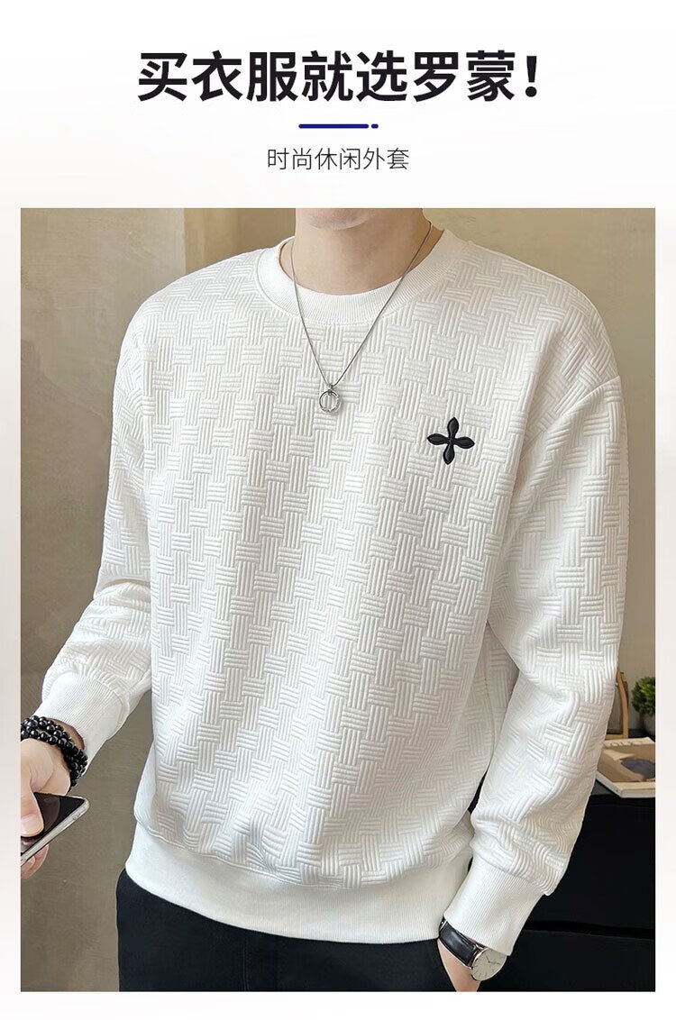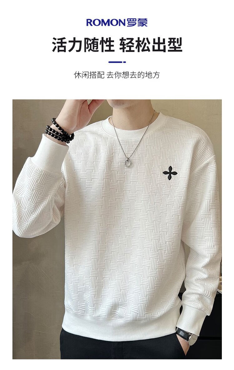 ROMON sweatshirt men's autumn and winter casual long-sleeved T-shirt men's bottoming shirt versatile top men's clothing white XL