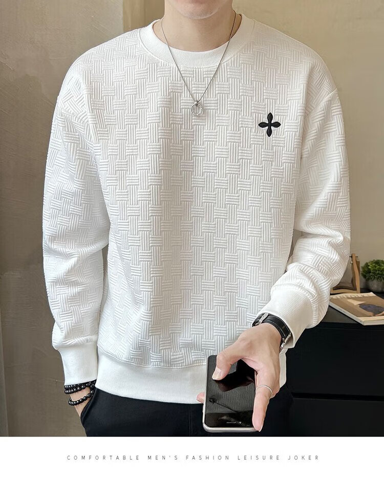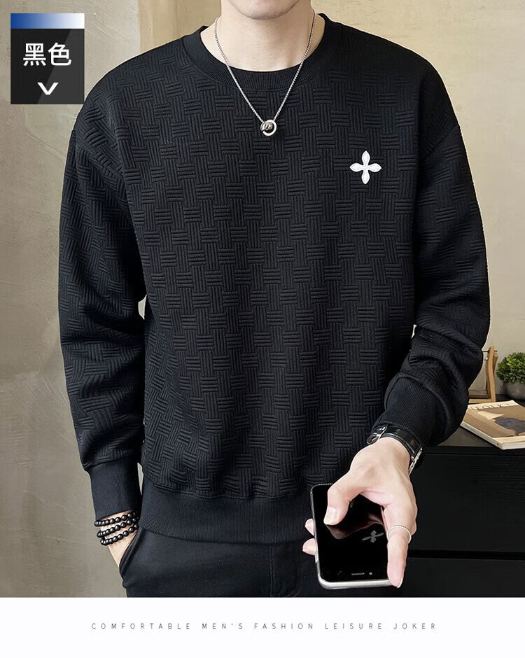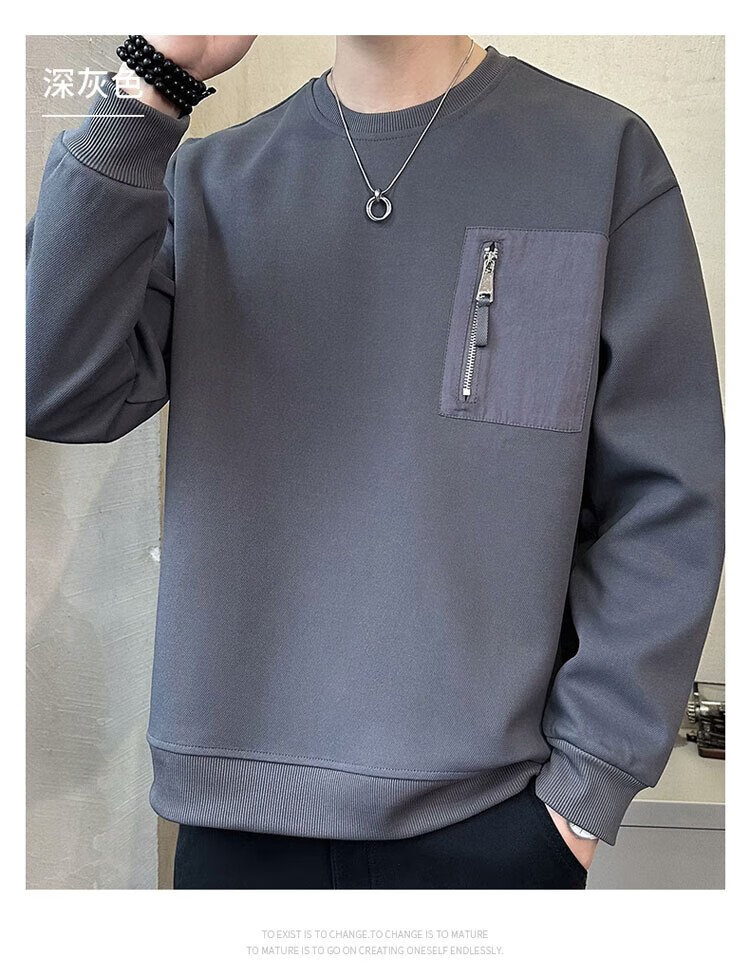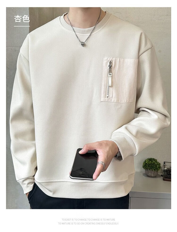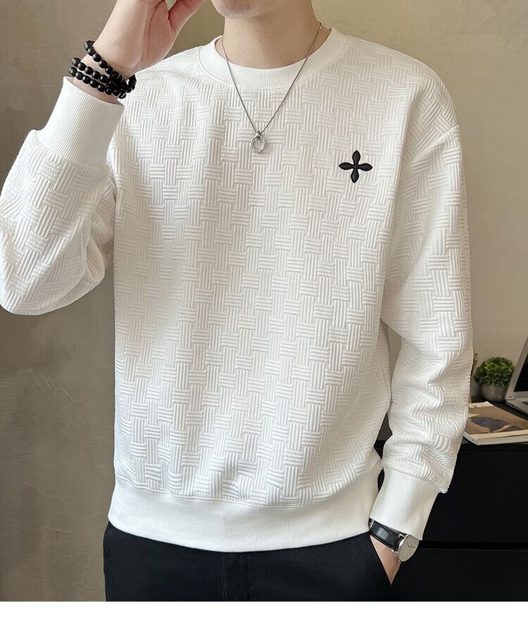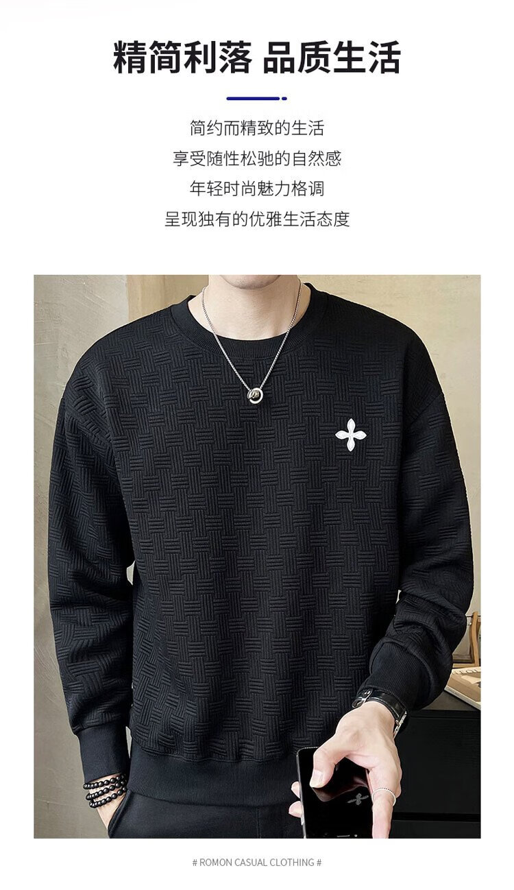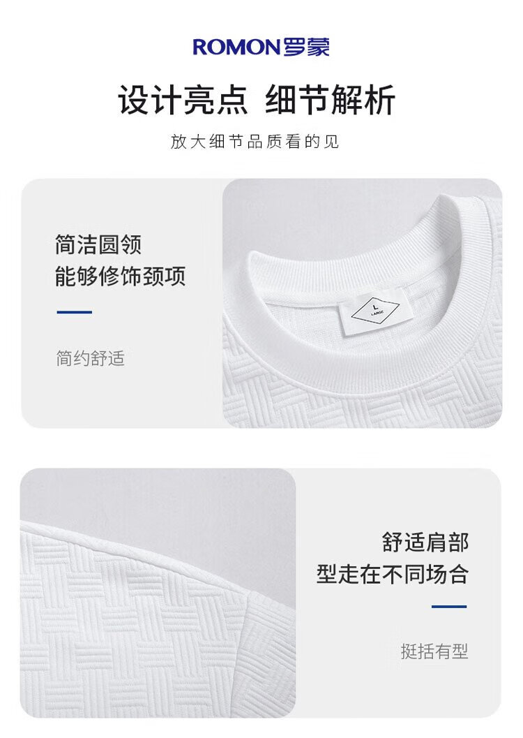 ROMON sweatshirt men's autumn and winter casual long-sleeved T-shirt men's bottoming shirt versatile top men's clothing white XL