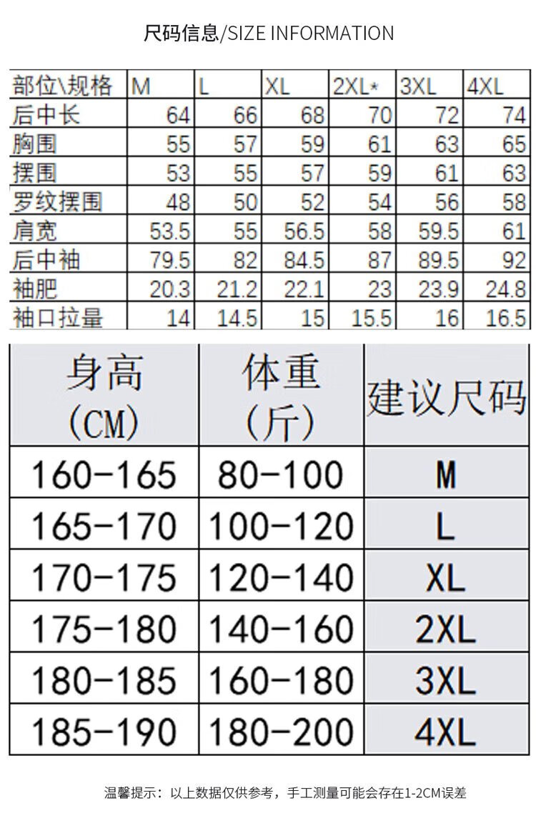 China (cm) 165 / 88-90 170 / 96-98 175 / 108-110 180 / 118-122 185 / 126-130