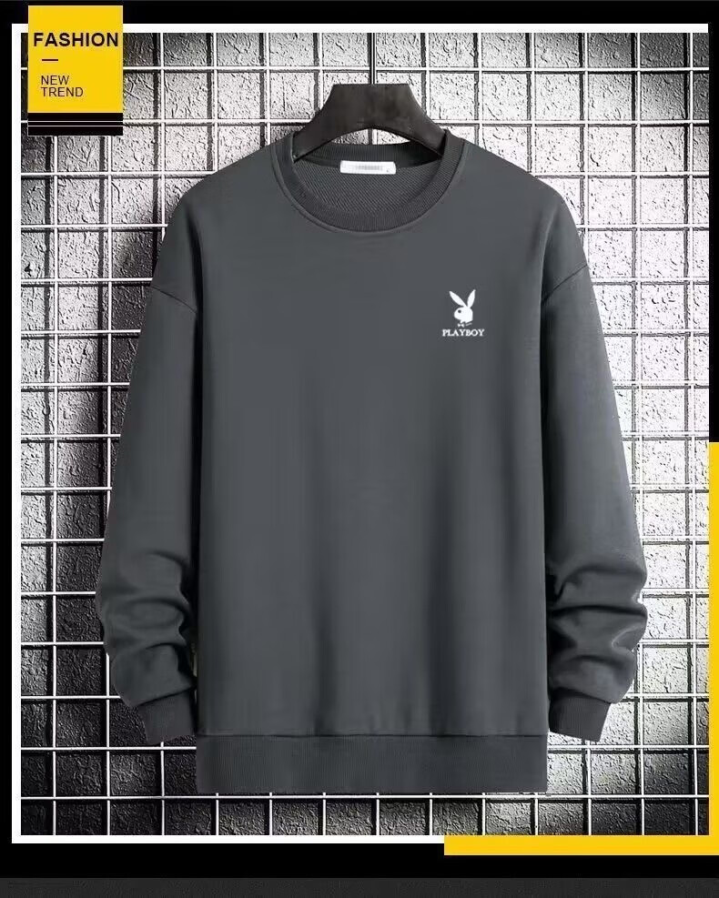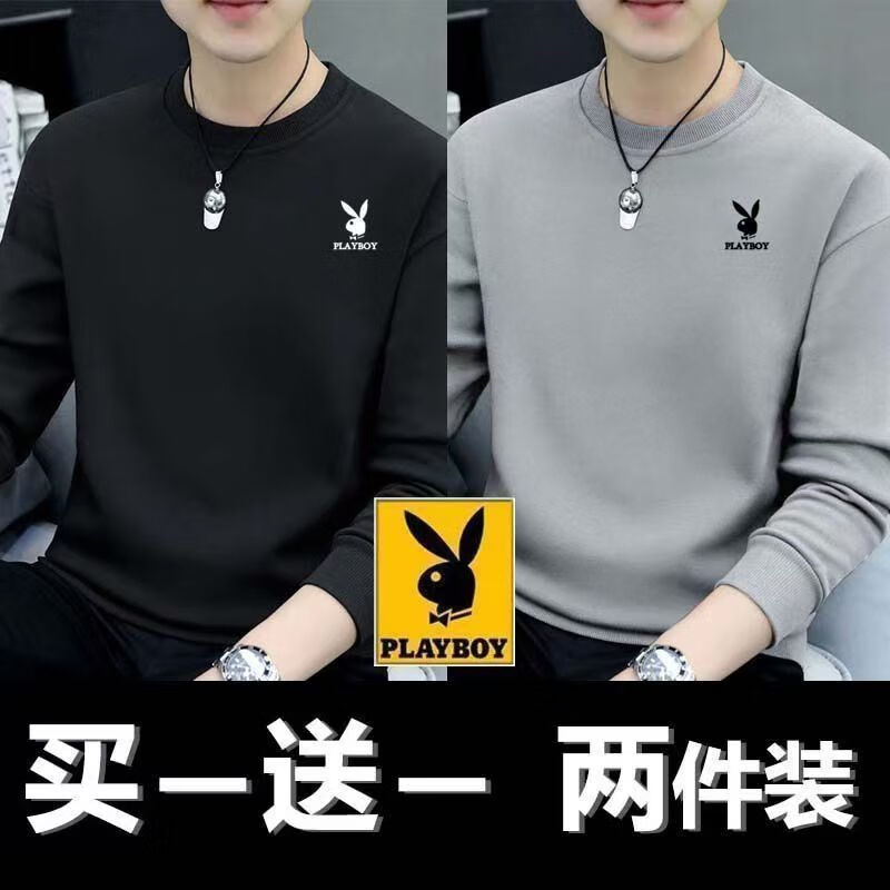 Playboy (PLAYBOY) sweatshirt men's velvet round neck bottoming shirt solid color cotton heavyweight long-sleeved T-shirt men's autumn and winter clothes men's casual dark gray + light gray spring and autumn style XL size recommended 120-140Jin Jin equals 0.5 kg