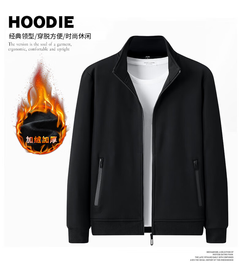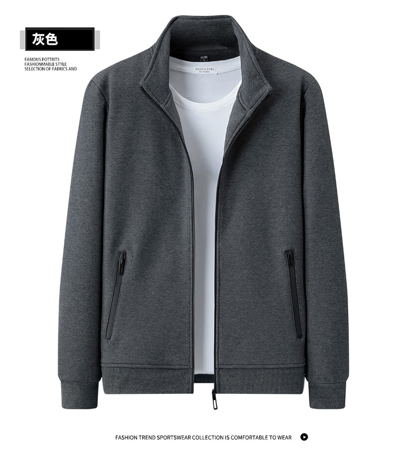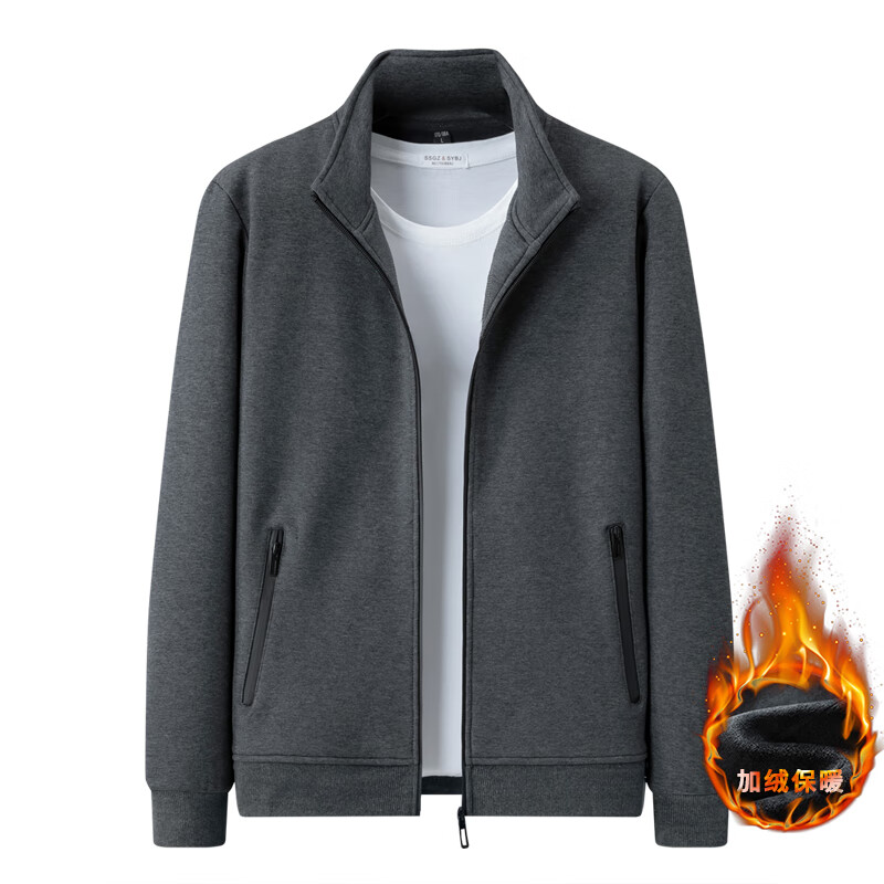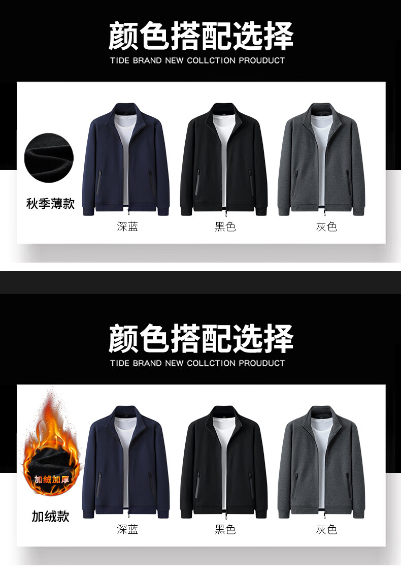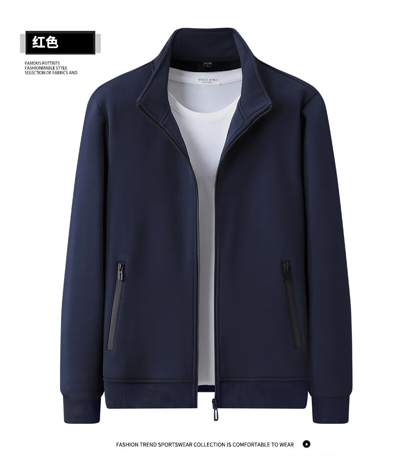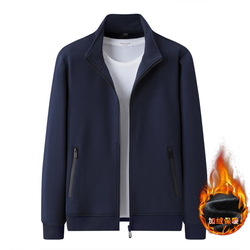 High quality men's new casual sports stand collar jacket, trendy, versatile, handsome, loose, large size top, dark blue, velvet style, 3XL, recommended 160-180 Jin Jin equals 0.5 kg