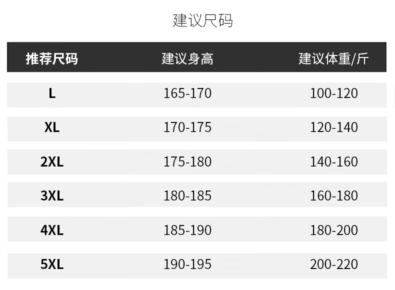 China (cm) 165 / 88-90 170 / 96-98 175 / 108-110 180 / 118-122 185 / 126-130
